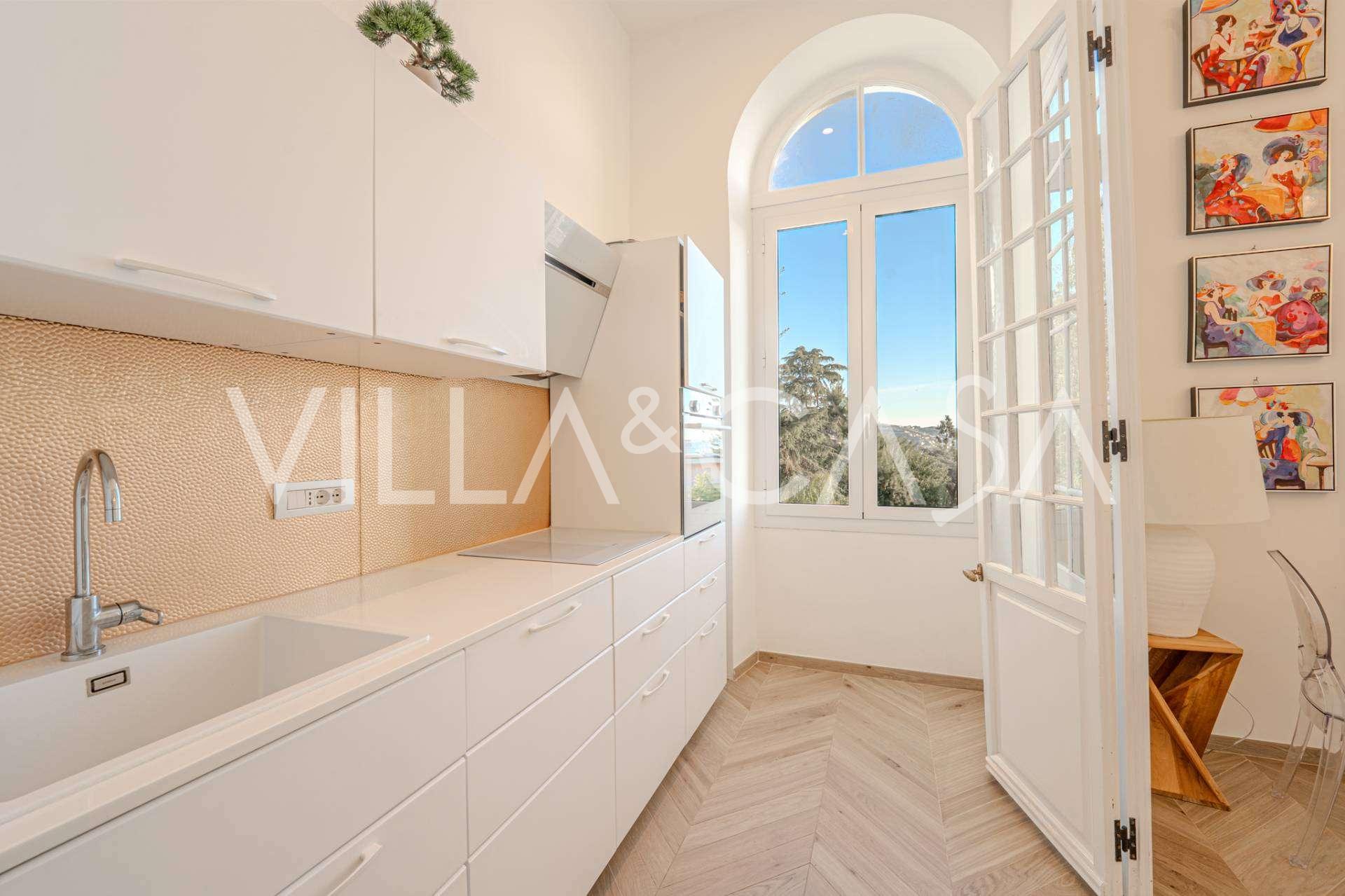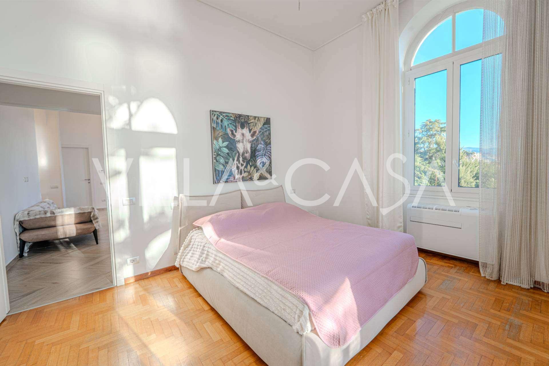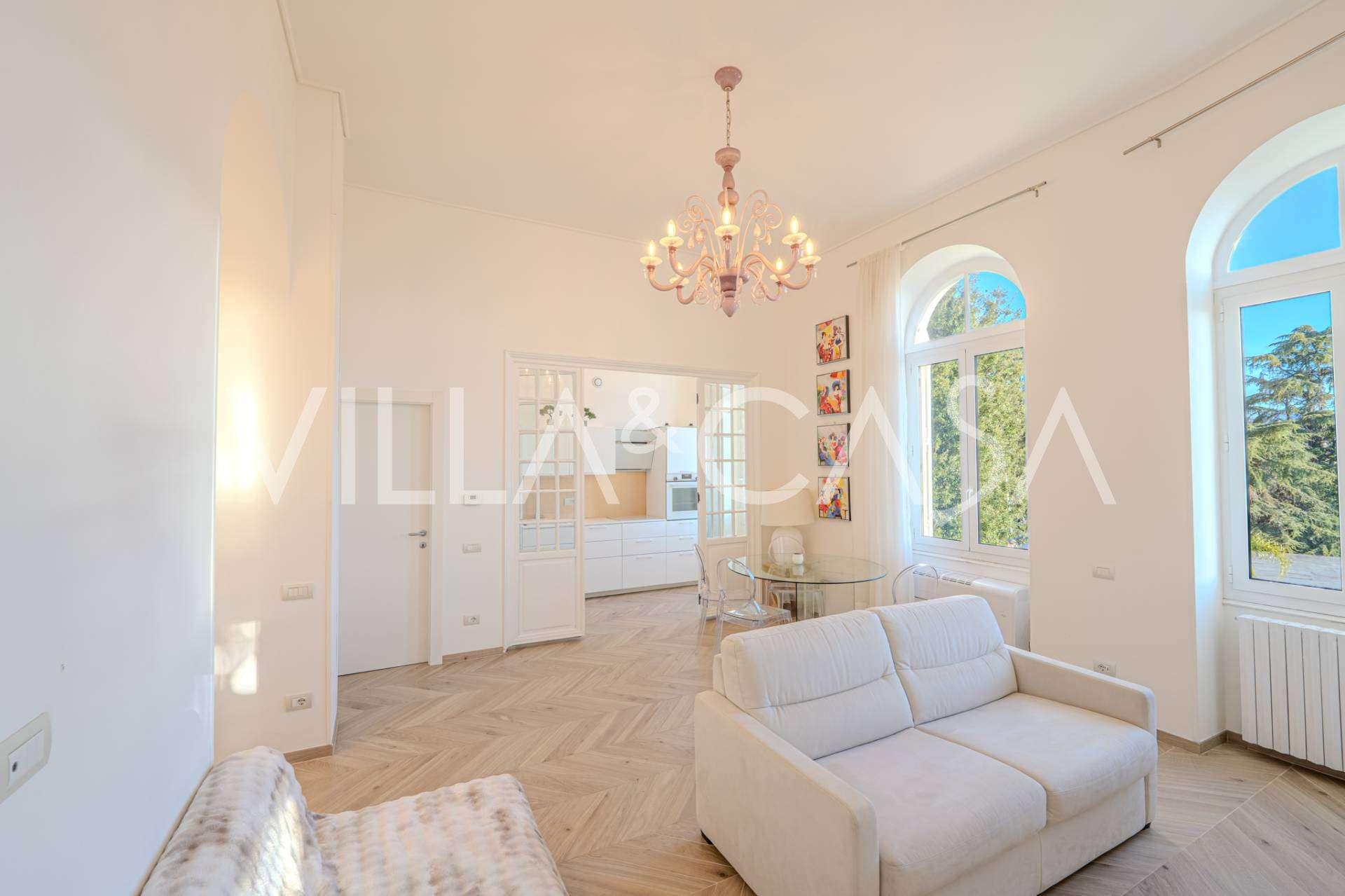 Se ofrece en alquiler un apartamento de 2 habitaciones en San Remo con una superficie de 73 m2 y vista al mar. Está ubicado en el segundo piso con ascensor e incluye sala de estar, dormitorio con balcón, cocina y baño. El apartamento está en perfecto estado: ventanas nuevas, aire acondicionado, parquet y calefacción autónoma. Totalmente amueblado. El precio incluye una plaza de aparcamiento en el garaje. El complejo es cerrado y tranquilo, con piscina, jardín, zona de descanso y barbacoa. A solo 7 minutos a pie del centro de la ciudad y del mar.