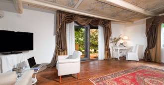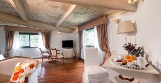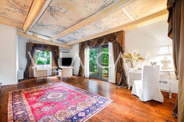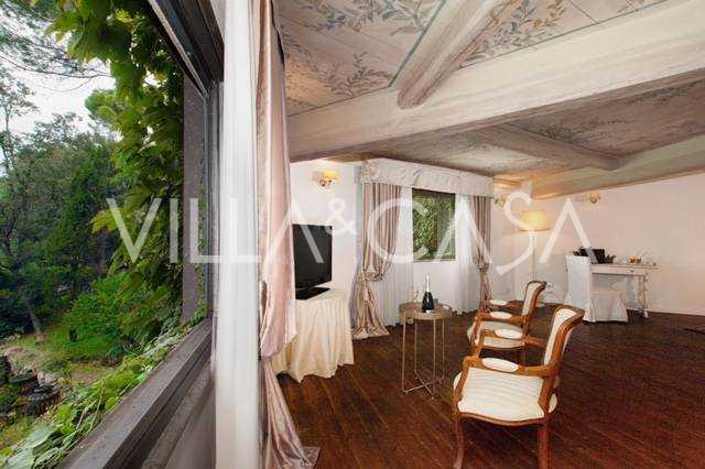 Entre el verdor del parque privado del castillo Tor Crescenza se encuentra una elegante villa, rodeada de un conjunto histórico y paisajístico único en su tipo. Fuentes artísticas, esculturas, terrazas panorámicas, cascadas y pintorescas alamedas crean una atmósfera de una residencia verdaderamente aristocrática.