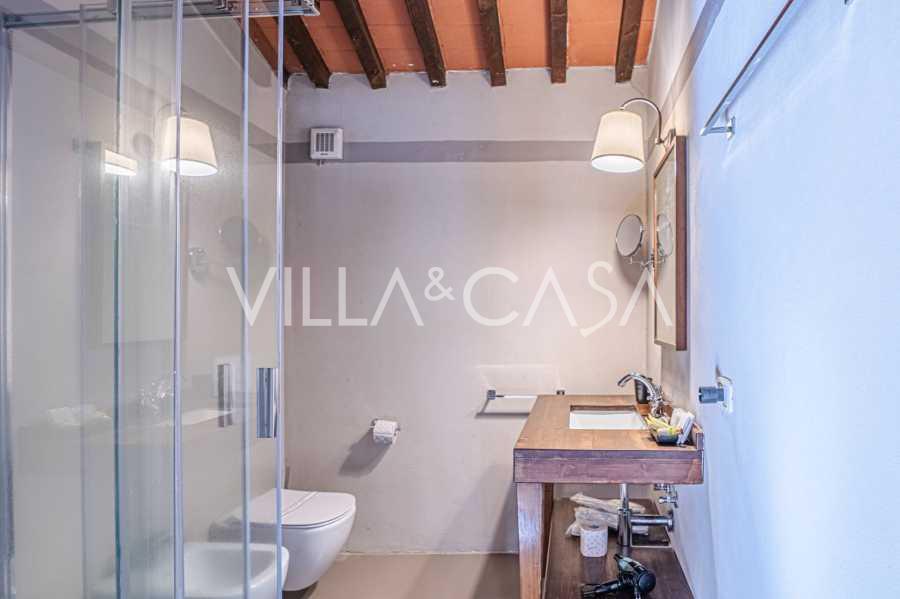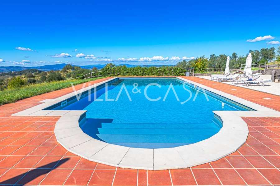El magnífico parque que rodea la villa está diseñado para disfrutar plenamente de la naturaleza: terrazas, setos floridos, aromas de lavanda y romero, y vistas impresionantes de las colinas toscanas. La piscina panorámica de 14x7 metros con solárium de terracota y área pavimentada es perfecta tanto para recepciones formales como para relajarse en un ambiente de completa tranquilidad.