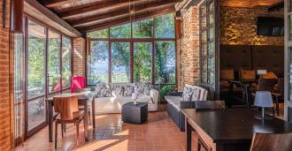 En el segundo hay un acogedor estudio y un elegante apartamento de dos habitaciones. Ambos anexos están unidos por un amplio pórtico, que en verano se convierte en una sala abierta bajo arcos, ideal para desayunos al amanecer o aperitivos al atardecer.