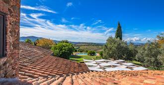 El edificio principal, una majestuosa villa de piedra del siglo XVII, conserva el encanto de su época: suelos de terracota, arcos de ladrillo, vigas de techo macizas y elementos decorativos refinados. Cada detalle es testimonio de autenticidad y buen gusto. Los sistemas modernos, como la calefacción con bomba de calor, baños renovados y materiales de acabado de alta calidad, garantizan un confort absoluto en cualquier época del año.