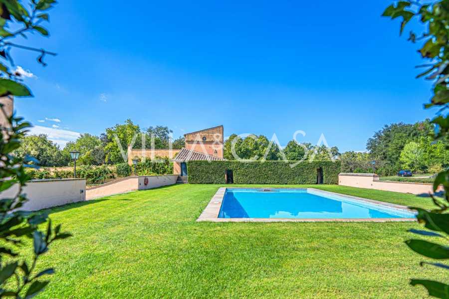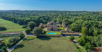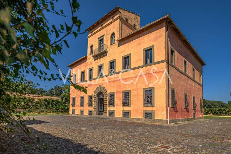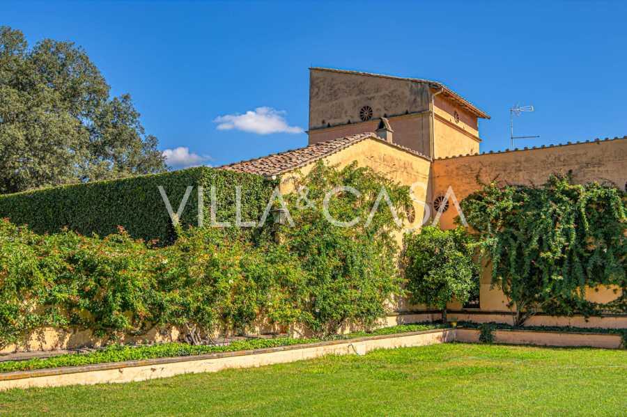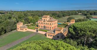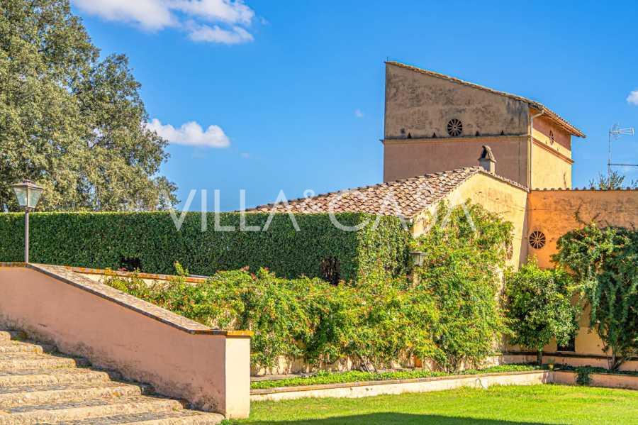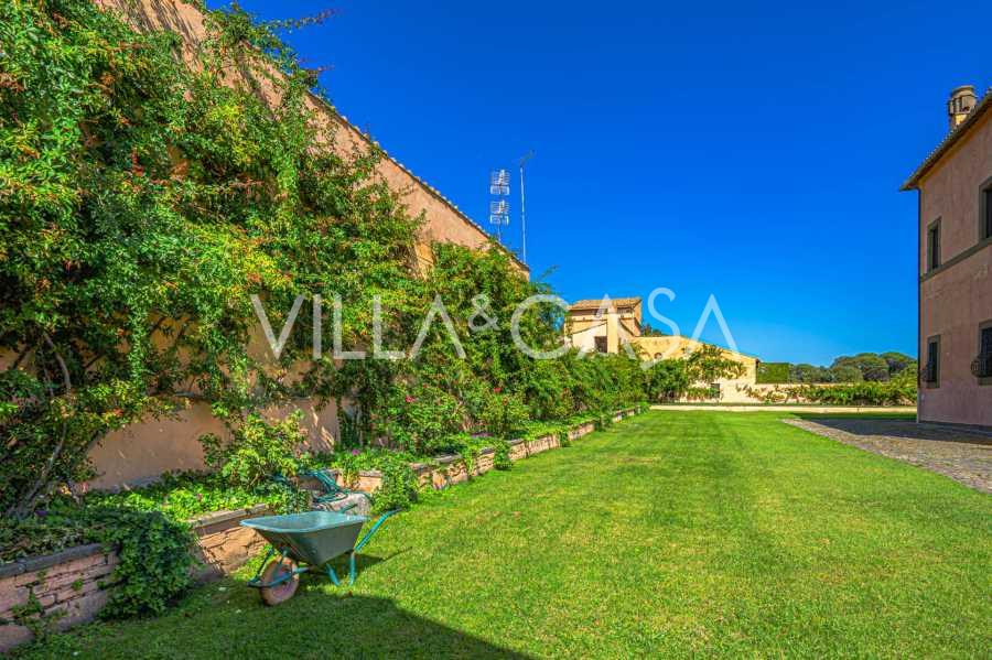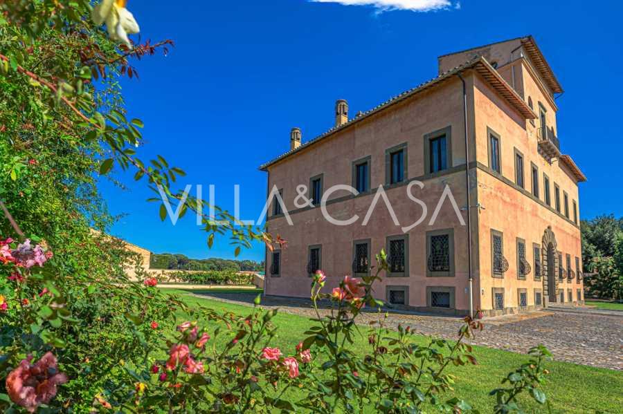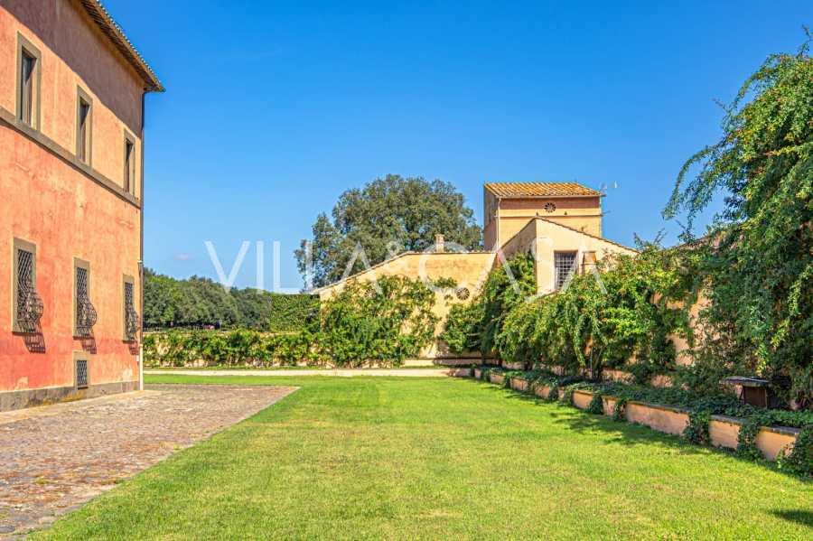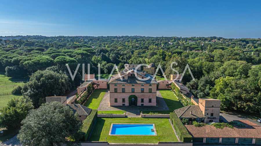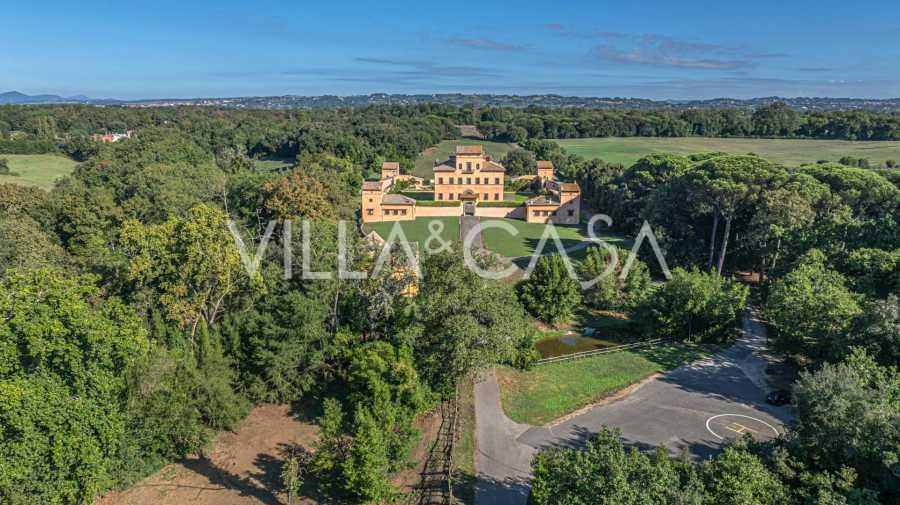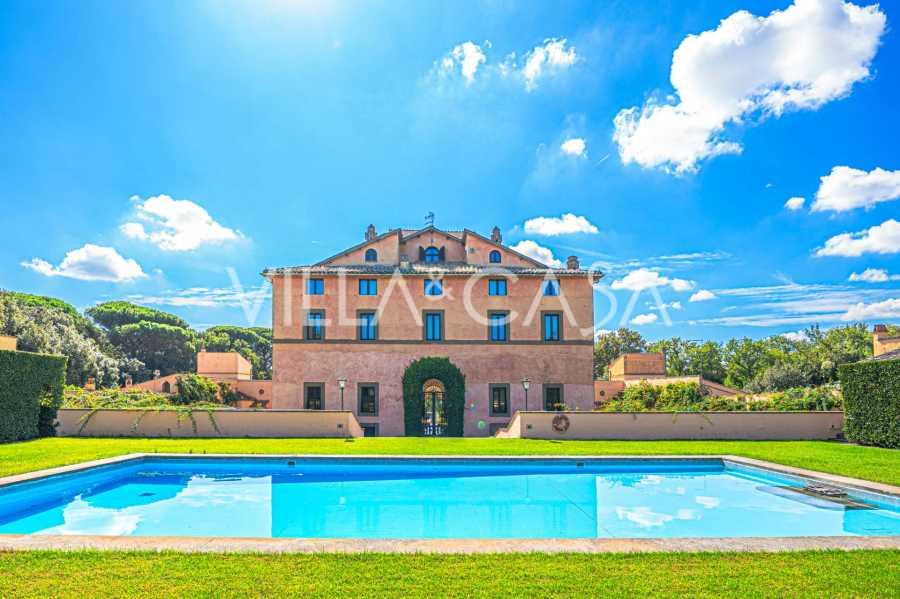 Ubicado a solo veinte kilómetros al norte de Roma, el castillo está rodeado por treinta hectáreas de prados cuidados y bosques antiguos, creando una atmósfera de completa privacidad y armonía con la naturaleza. Aquí nació el legendario caballo de carreras Ribot. Las instalaciones ecuestres están equipadas con los mejores estándares internacionales: dos establos con veintitrés y veinticinco boxes, equipados con salas de montura, áreas de cuidado para los caballos y apartamentos cómodos para el personal. El complejo cuenta con un picadero cubierto para equitación, un carrusel cubierto, un picadero cubierto y extensos pastizales para la cría de caballos, ideales para entrenamientos y competiciones. El castillo colinda con uno de los clubes de golf más prestigiosos de Europa y tiene su propio helipuerto. Las antiguas cuevas etruscas ubicadas en la finca añaden un encanto especial y valor histórico al lugar.