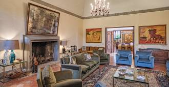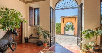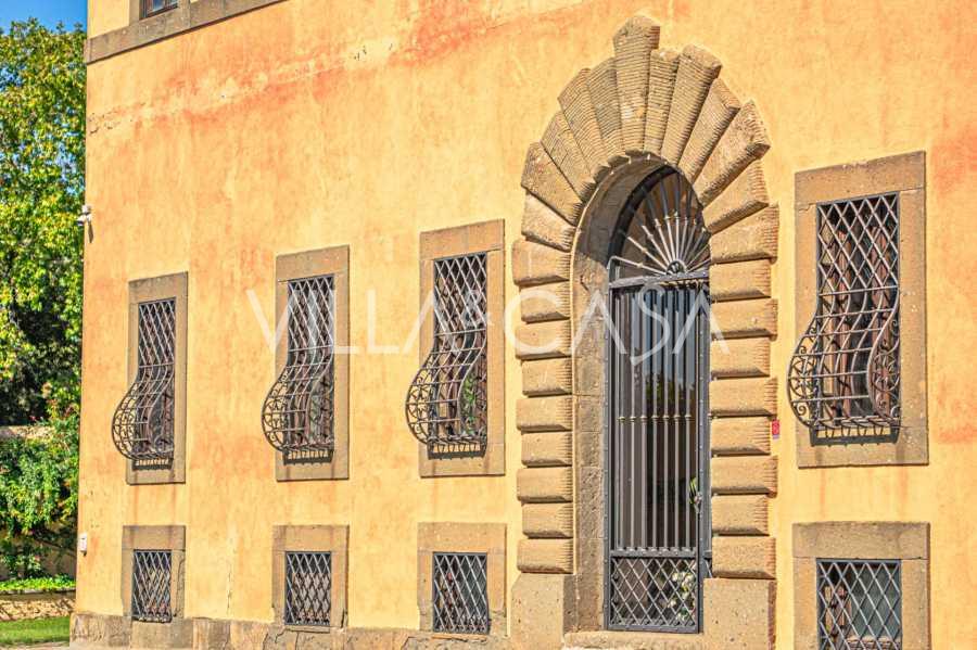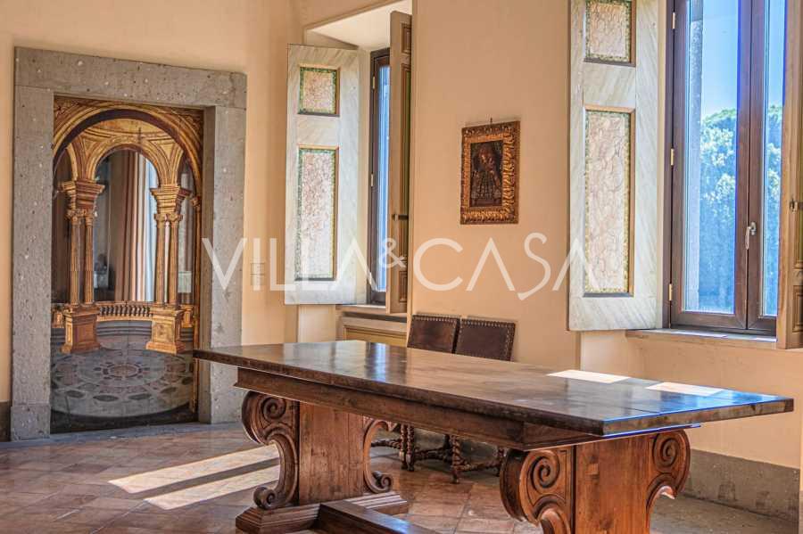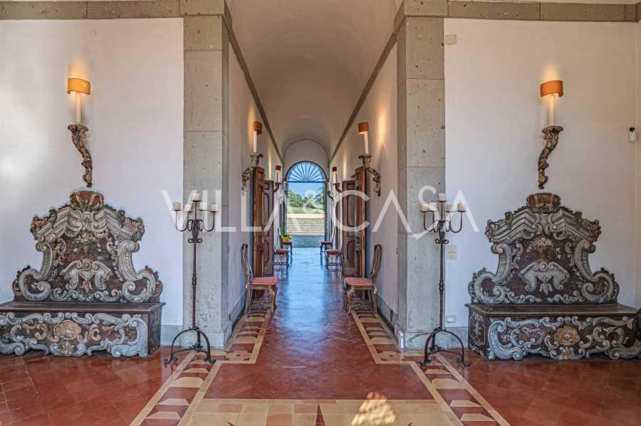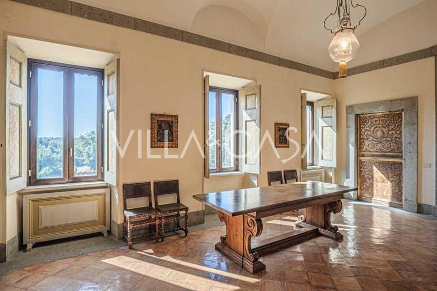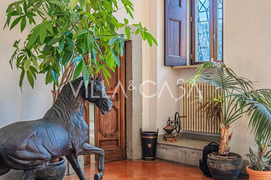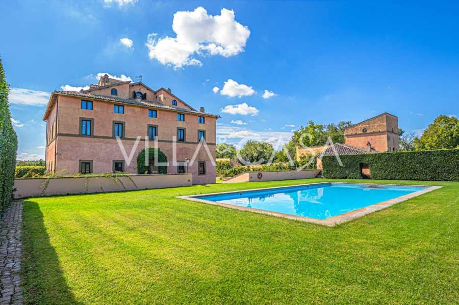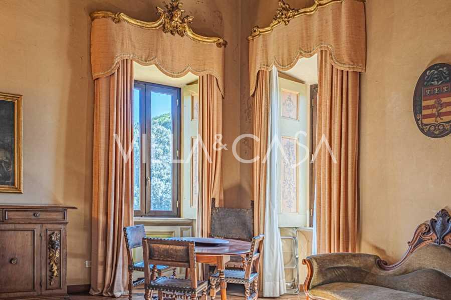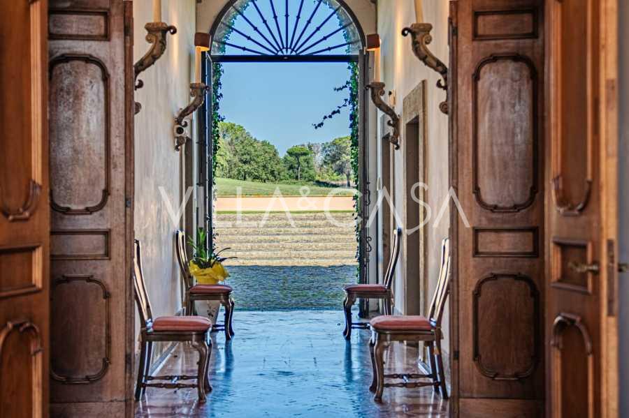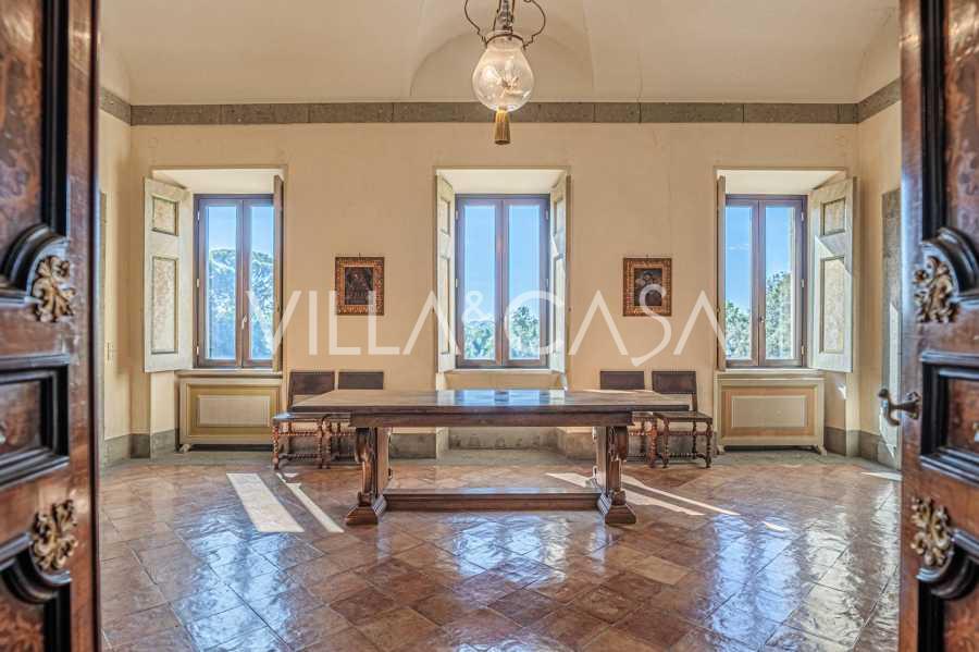 Ubicado a solo veinte kilómetros al norte de Roma, el castillo está rodeado por treinta hectáreas de prados cuidados y bosques antiguos, creando una atmósfera de completa privacidad y armonía con la naturaleza. Aquí nació el legendario caballo de carreras Ribot. Las instalaciones ecuestres están equipadas con los mejores estándares internacionales: dos establos con veintitrés y veinticinco boxes, equipados con salas de montura, áreas de cuidado para los caballos y apartamentos cómodos para el personal. El complejo cuenta con un picadero cubierto para equitación, un carrusel cubierto, un picadero cubierto y extensos pastizales para la cría de caballos, ideales para entrenamientos y competiciones. El castillo colinda con uno de los clubes de golf más prestigiosos de Europa y tiene su propio helipuerto. Las antiguas cuevas etruscas ubicadas en la finca añaden un encanto especial y valor histórico al lugar.