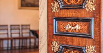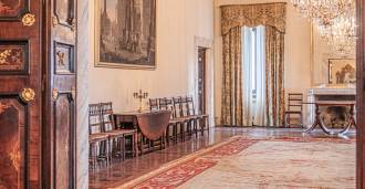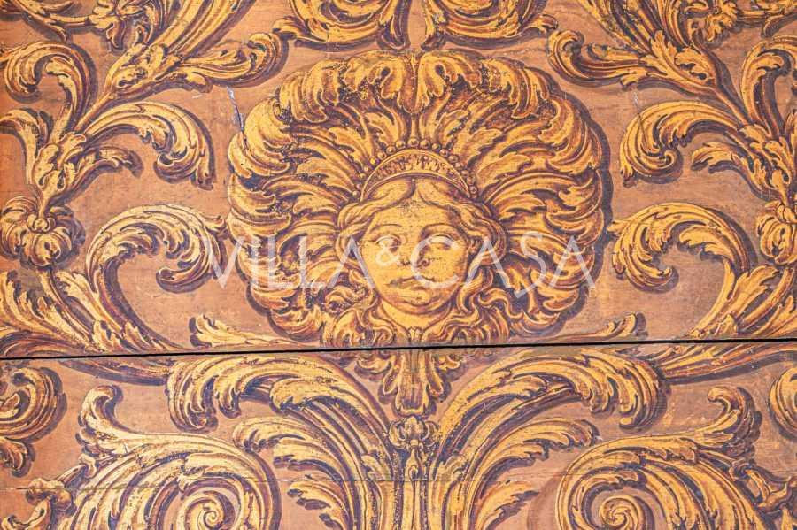En el segundo piso hay dos salones de gala con techos pintados, dos dormitorios y dos baños.