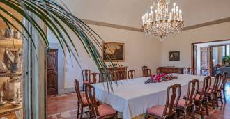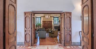 En la planta baja se encuentran salones espaciosos para recepciones, un despacho, un dormitorio, tres baños, un comedor exquisito y una gran cocina que se extiende hasta el nivel inferior, donde se encuentra un salón de banquetes, ideal para eventos ceremoniales.