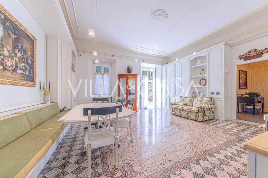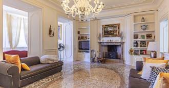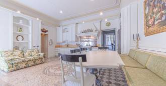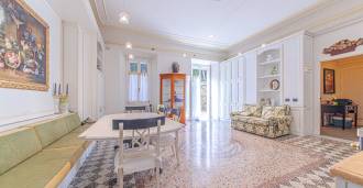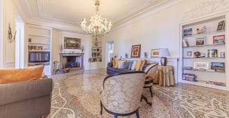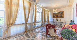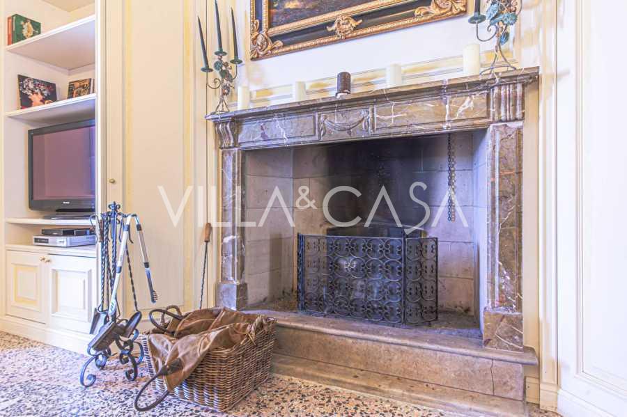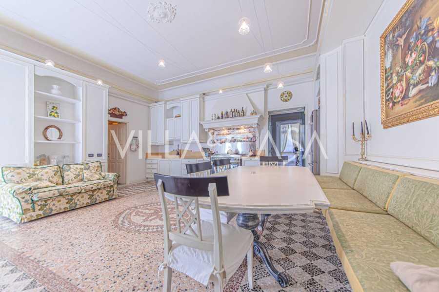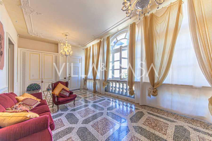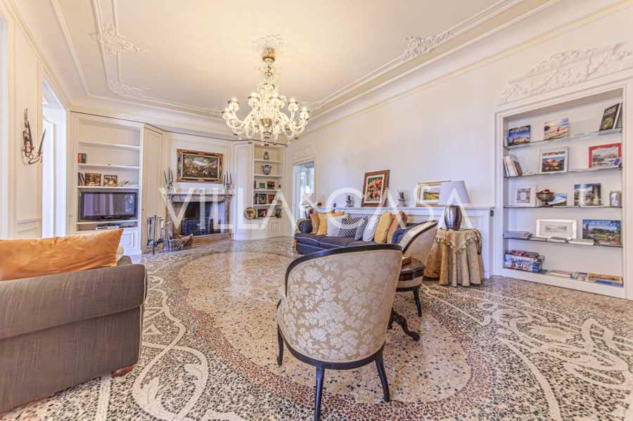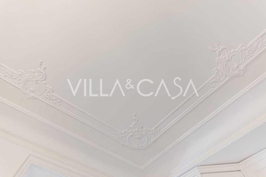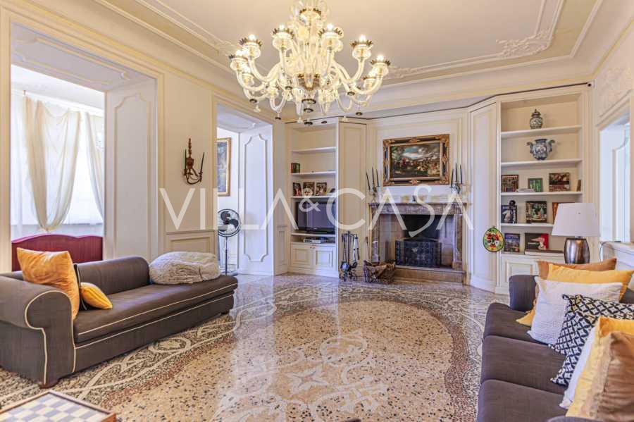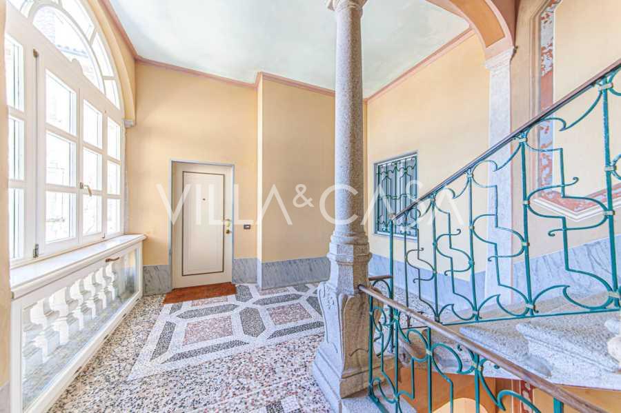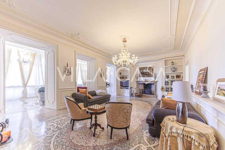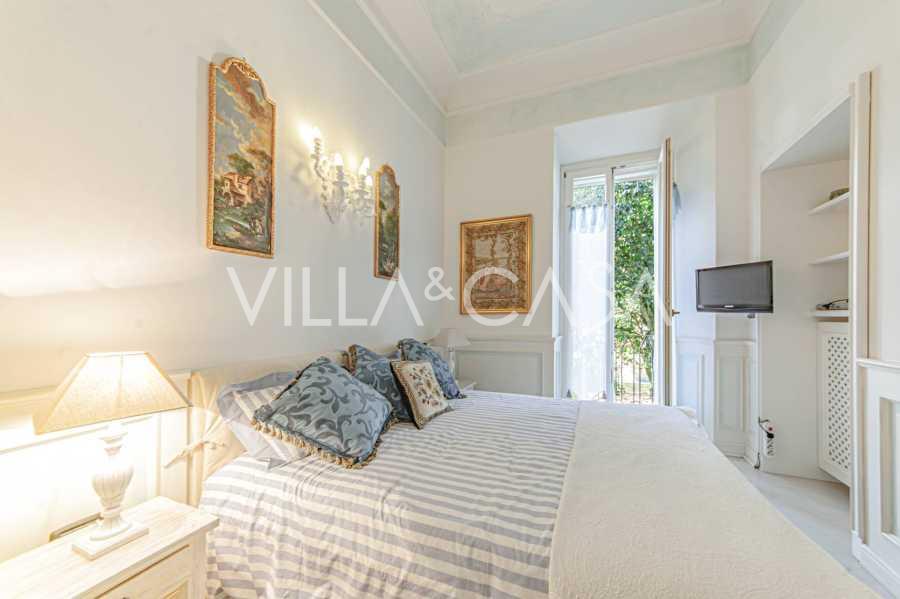 Los apartamentos, con una superficie de más de 270 m², se encuentran en la planta baja y son accesibles a través de una histórica escalera principal con frescos y columnas de granito rosa de Baveno. El amplio diseño incluye un majestuoso recibidor de mármol con vistas panorámicas al lago, un lujoso salón con chimenea y molduras, una cocina con zona de comedor, un aseo de invitados, un elegante baño, un dormitorio de invitados, una habitación infantil con vestidor, así como un dormitorio principal con baño privado.