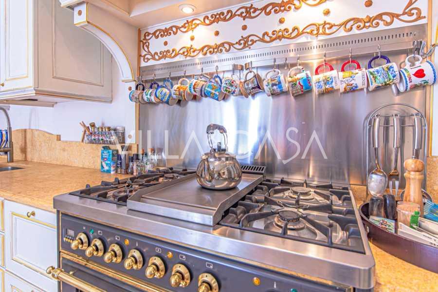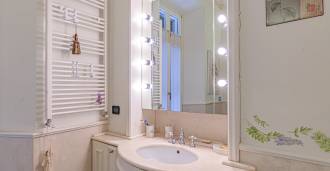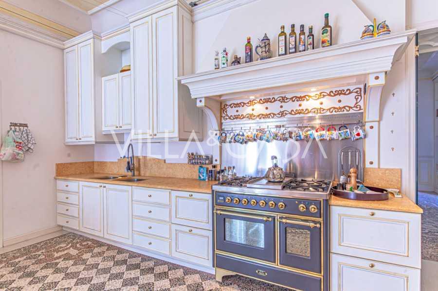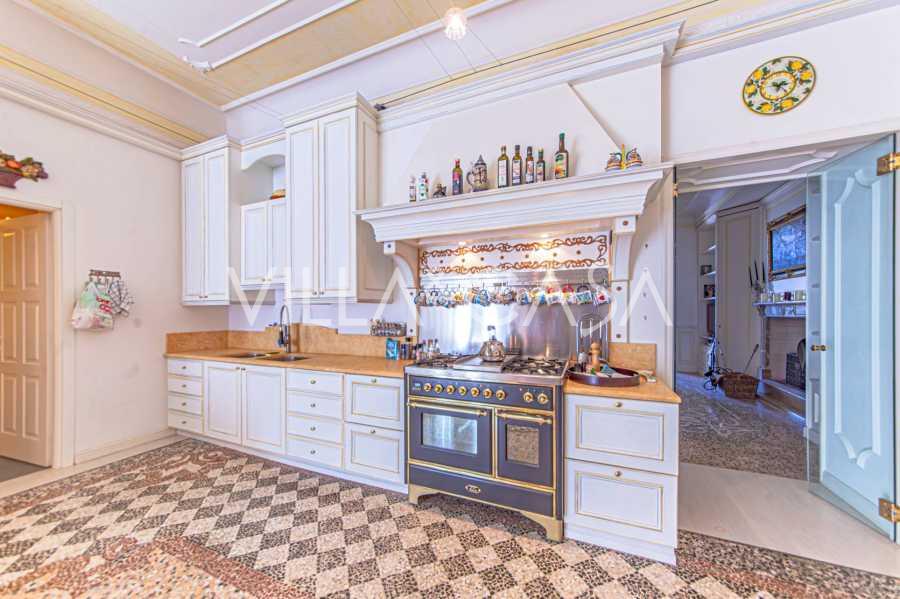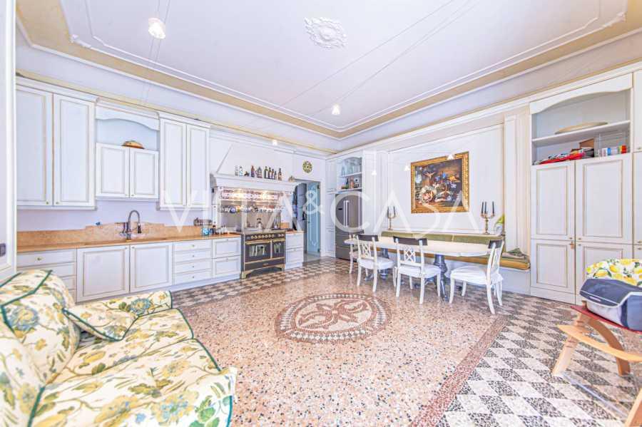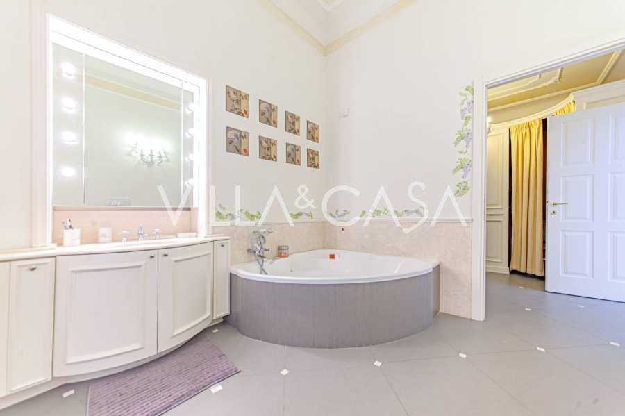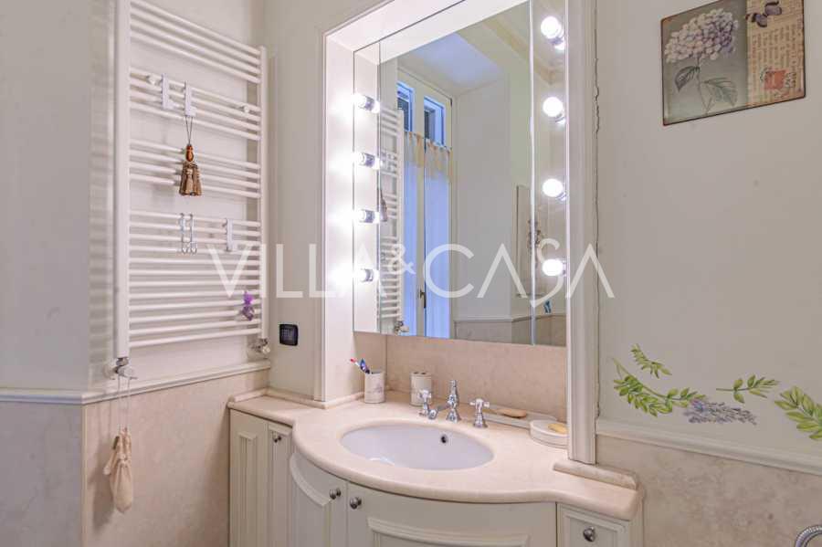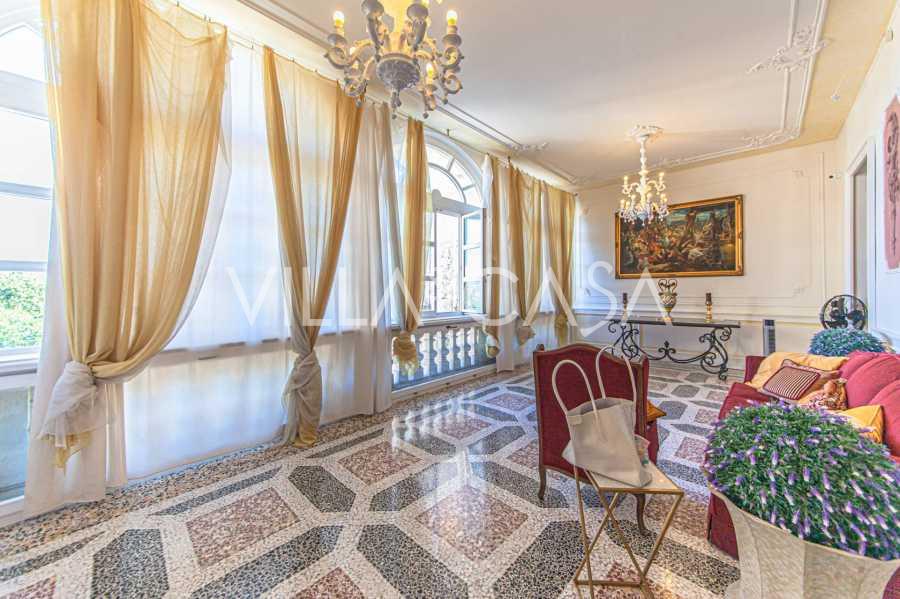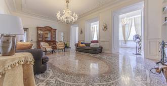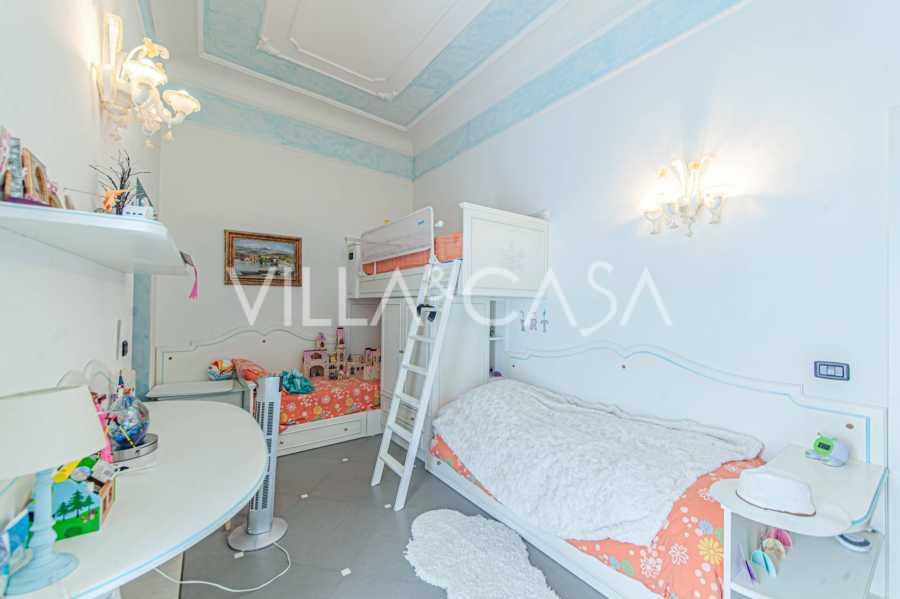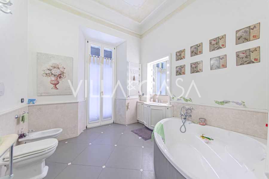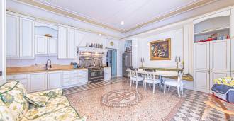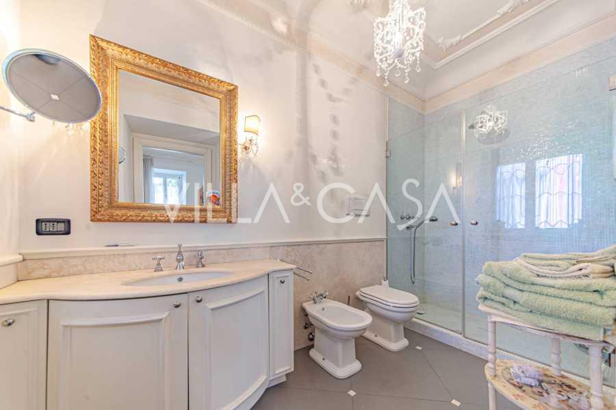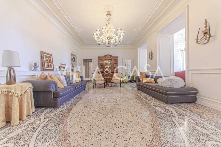 Los apartamentos, con una superficie de más de 270 m², se encuentran en la planta baja y son accesibles a través de una histórica escalera principal con frescos y columnas de granito rosa de Baveno. El amplio diseño incluye un majestuoso recibidor de mármol con vistas panorámicas al lago, un lujoso salón con chimenea y molduras, una cocina con zona de comedor, un aseo de invitados, un elegante baño, un dormitorio de invitados, una habitación infantil con vestidor, así como un dormitorio principal con baño privado.