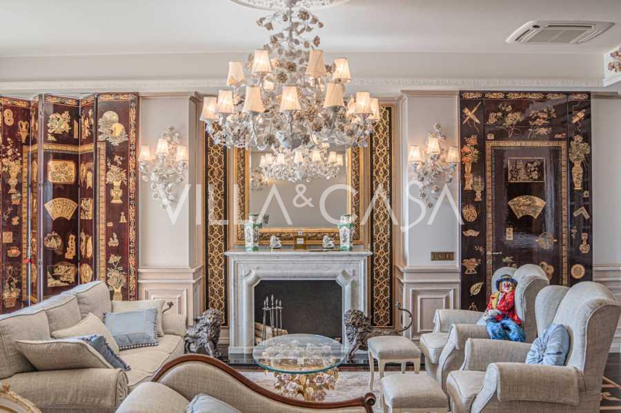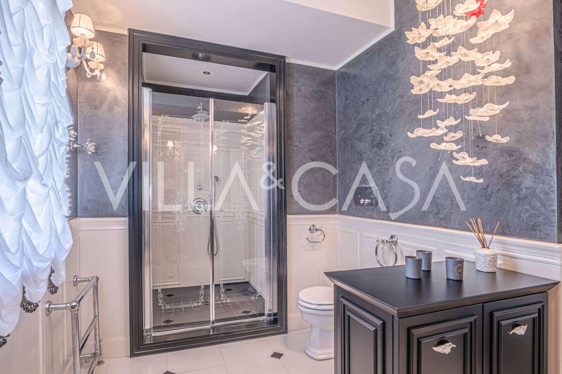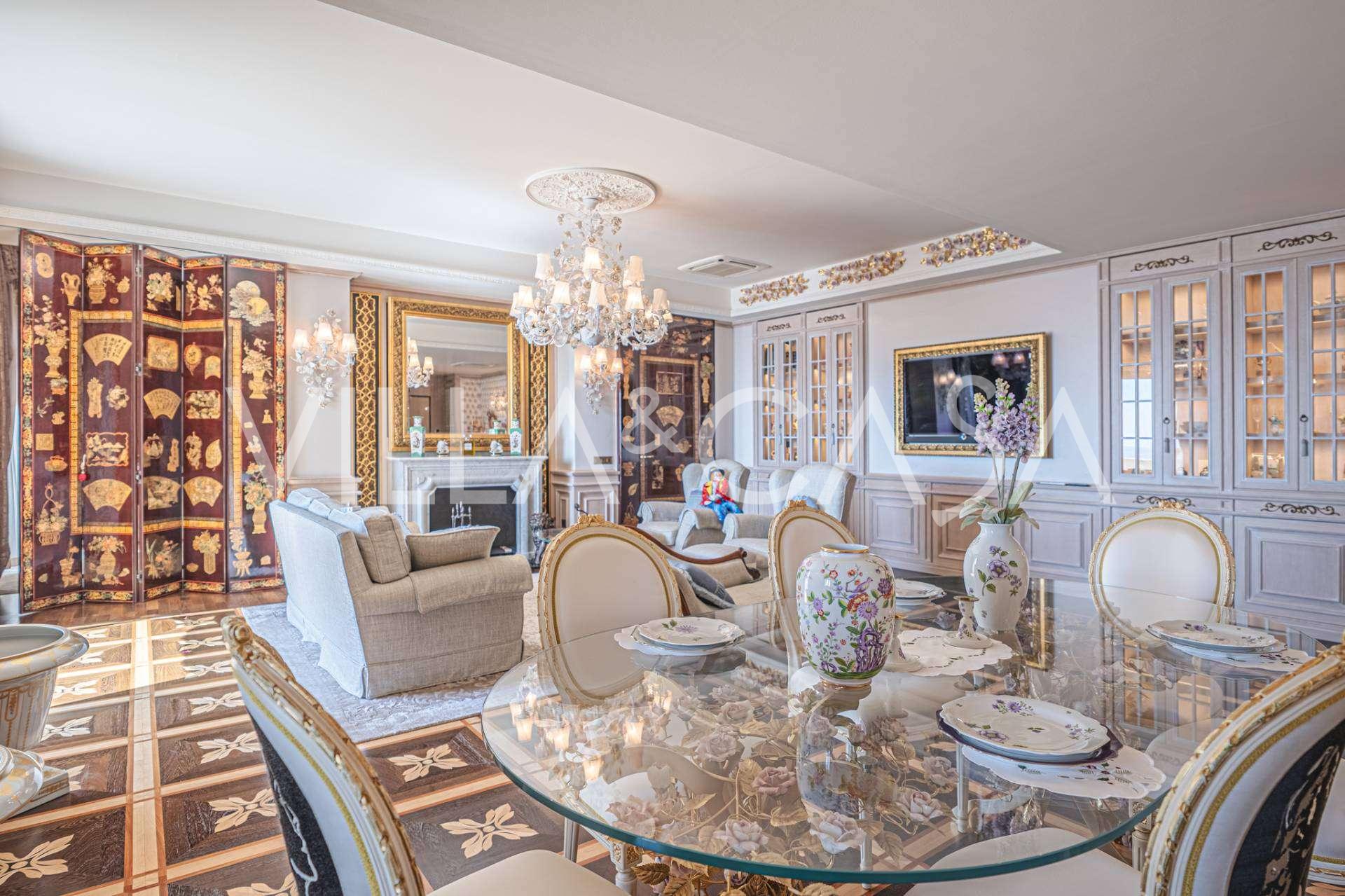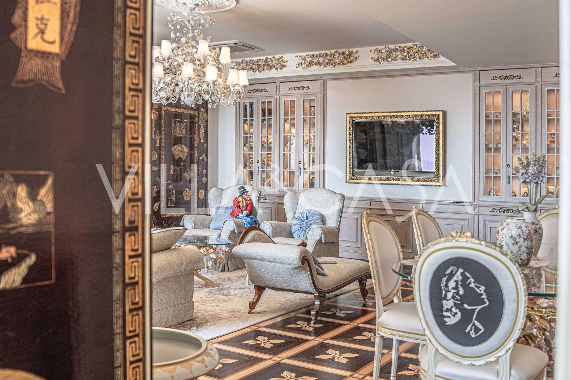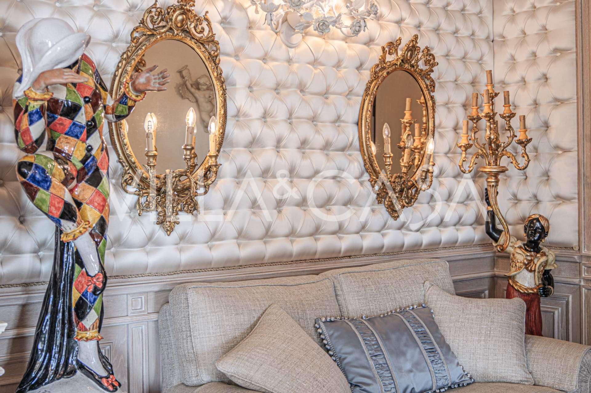 La decoración se realiza con una atención excepcional a los detalles: parquet en la sala de estar, cálido suelo de parquet en los dormitorios, cerámica de prestigio en los baños, persianas de madera lacadas y ventanas de doble acristalamiento, candelabros y lámparas de la marca Villari, vestidores de la marca Franco Martinello, puertas de un taller artístico en París, papel tapiz de seda, alfombras de seda en el salón y el dormitorio que aseguran silencio y confort. Los sistemas modernos de calefacción y aire acondicionado garantizan comodidad en cualquier época del año.
