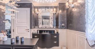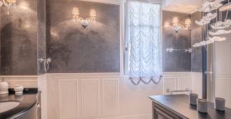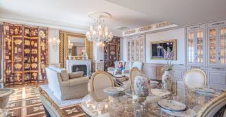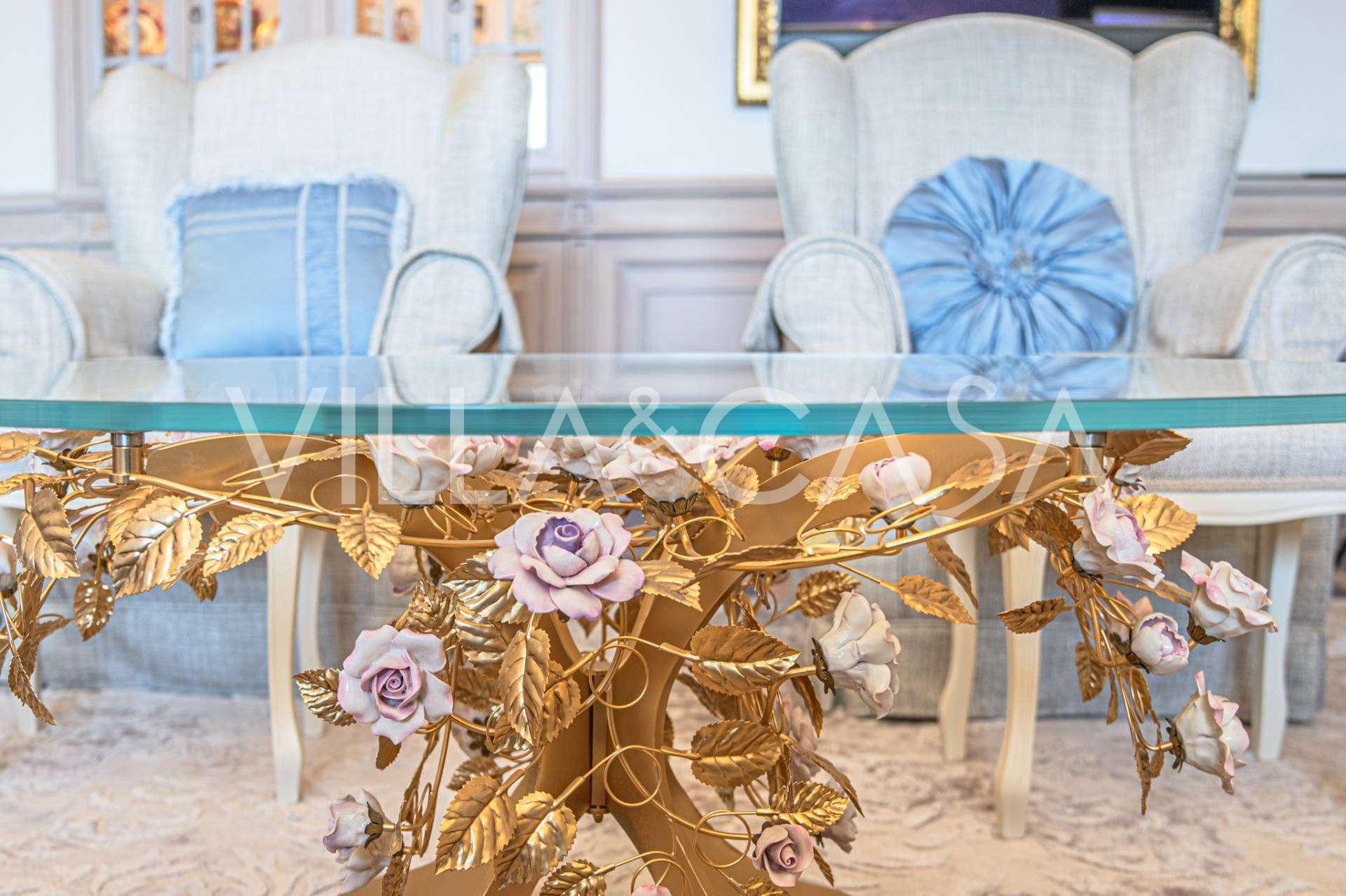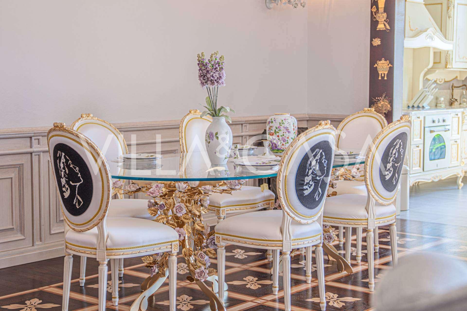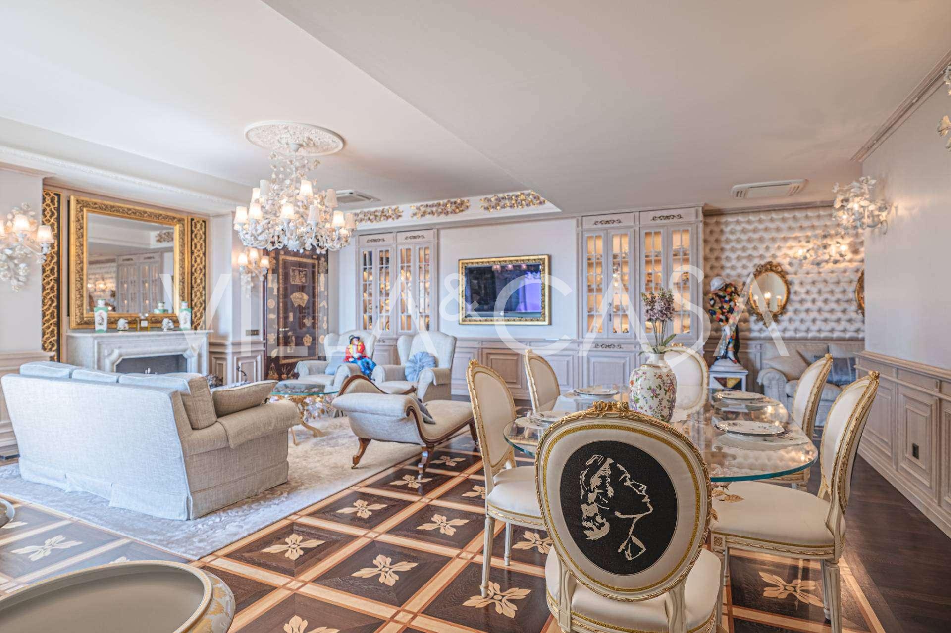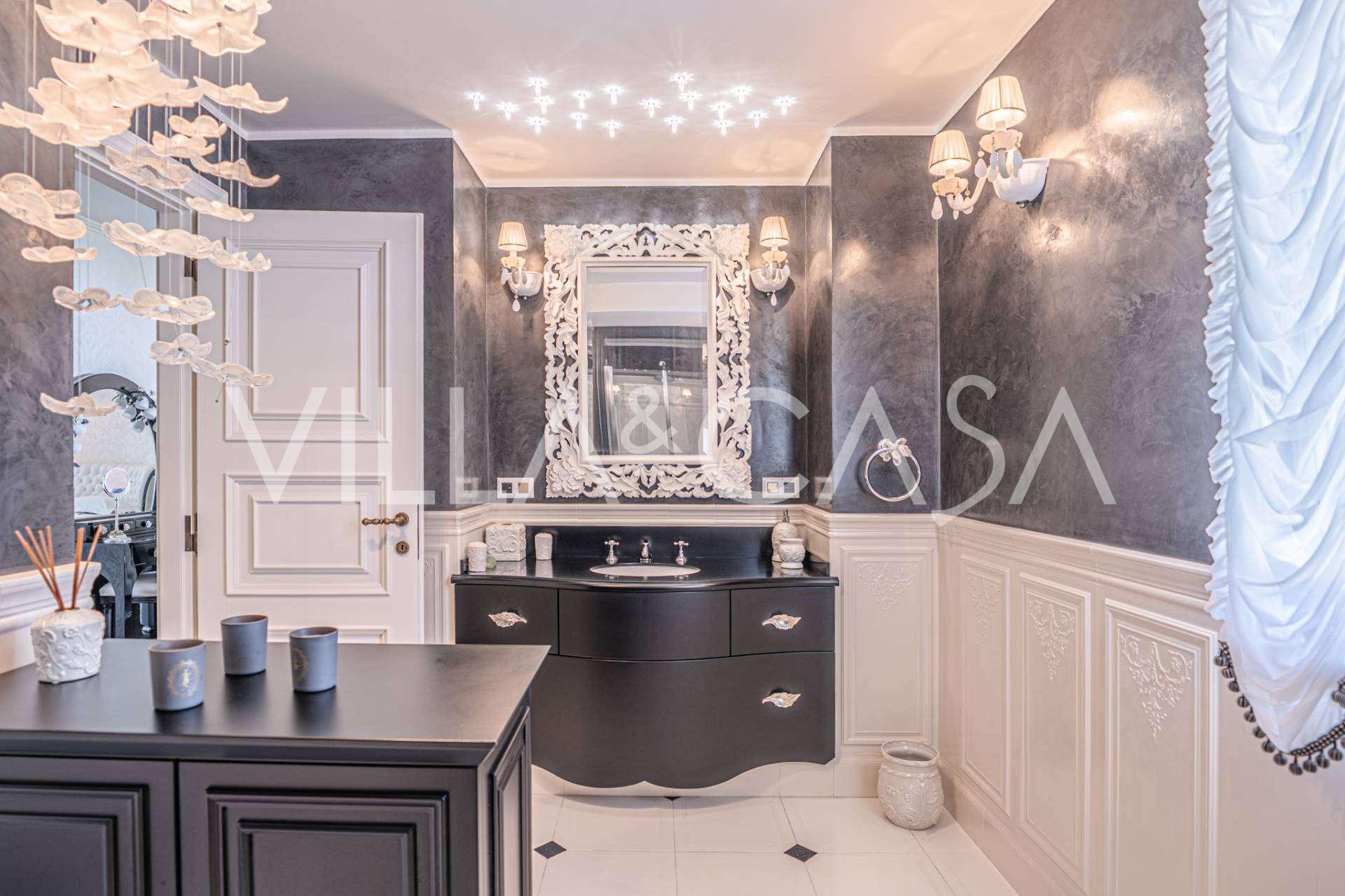 La decoración se realiza con una atención excepcional a los detalles: parquet en la sala de estar, cálido suelo de parquet en los dormitorios, cerámica de prestigio en los baños, persianas de madera lacadas y ventanas de doble acristalamiento, candelabros y lámparas de la marca Villari, vestidores de la marca Franco Martinello, puertas de un taller artístico en París, papel tapiz de seda, alfombras de seda en el salón y el dormitorio que aseguran silencio y confort. Los sistemas modernos de calefacción y aire acondicionado garantizan comodidad en cualquier época del año.