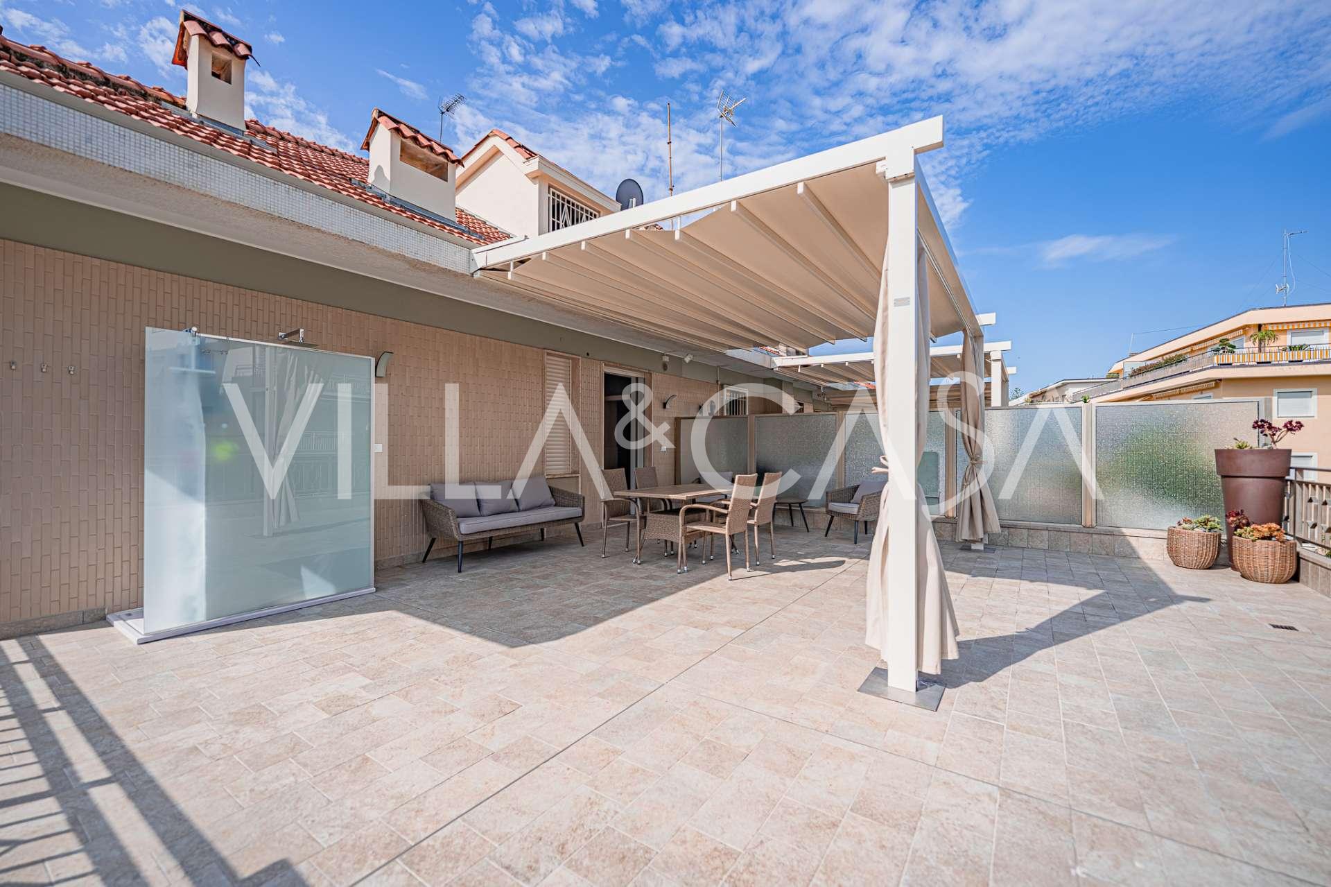 La joya del apartamento es una impresionante terraza de 80 m², equipada con una zona de descanso y una ducha privada, ideal para disfrutar al aire libre. Una segunda terraza de aproximadamente 15 m² ofrece una vista espectacular al mar y a la majestuosa Iglesia Ortodoxa Rusa.