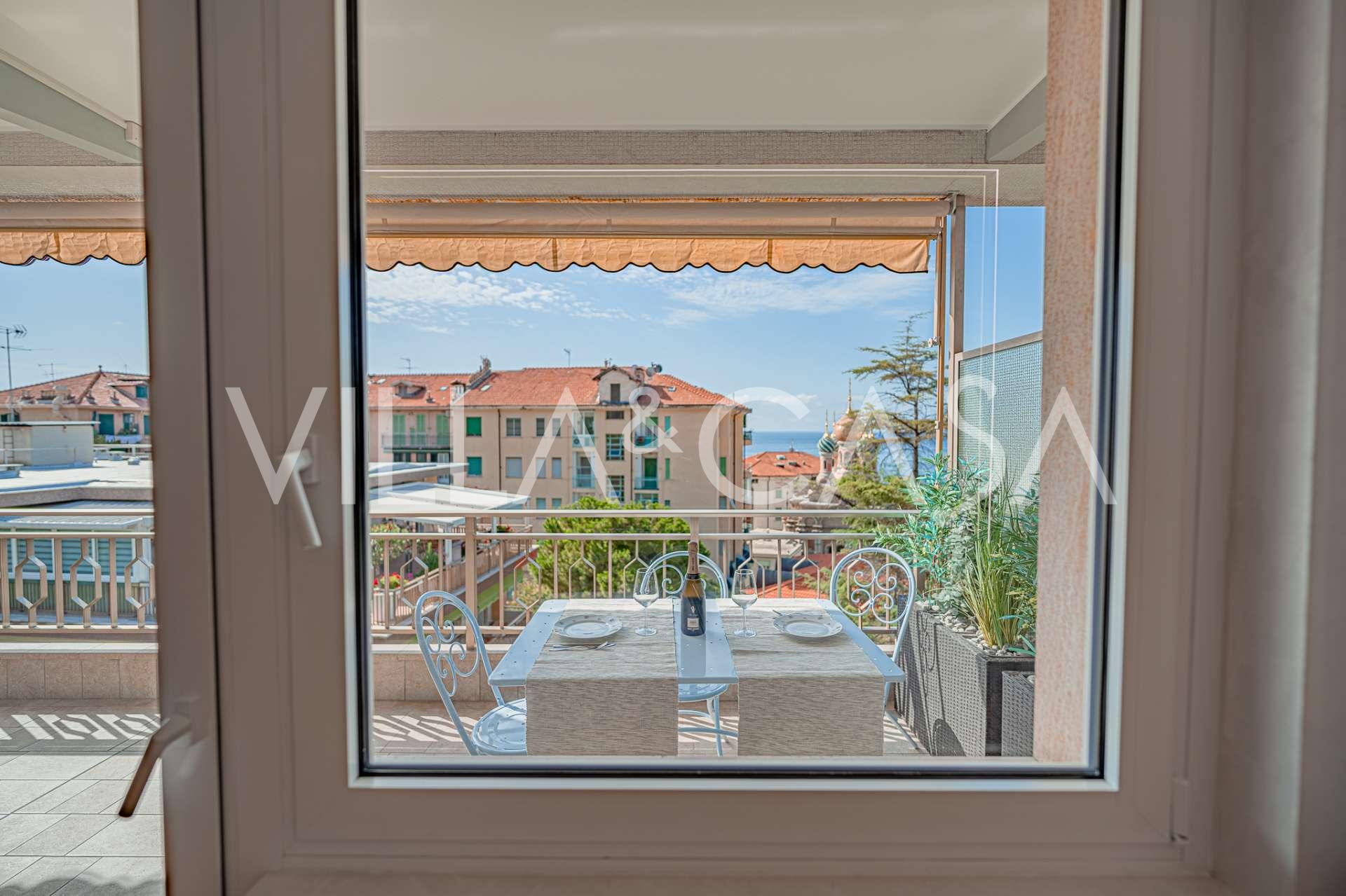 En el corazón de San Remo, cerca de la famosa Iglesia Ortodoxa Rusa y del exclusivo Casino, se ofrece un apartamento exclusivo de cuatro habitaciones con una superficie de 104 m² y una vista impresionante al mar.