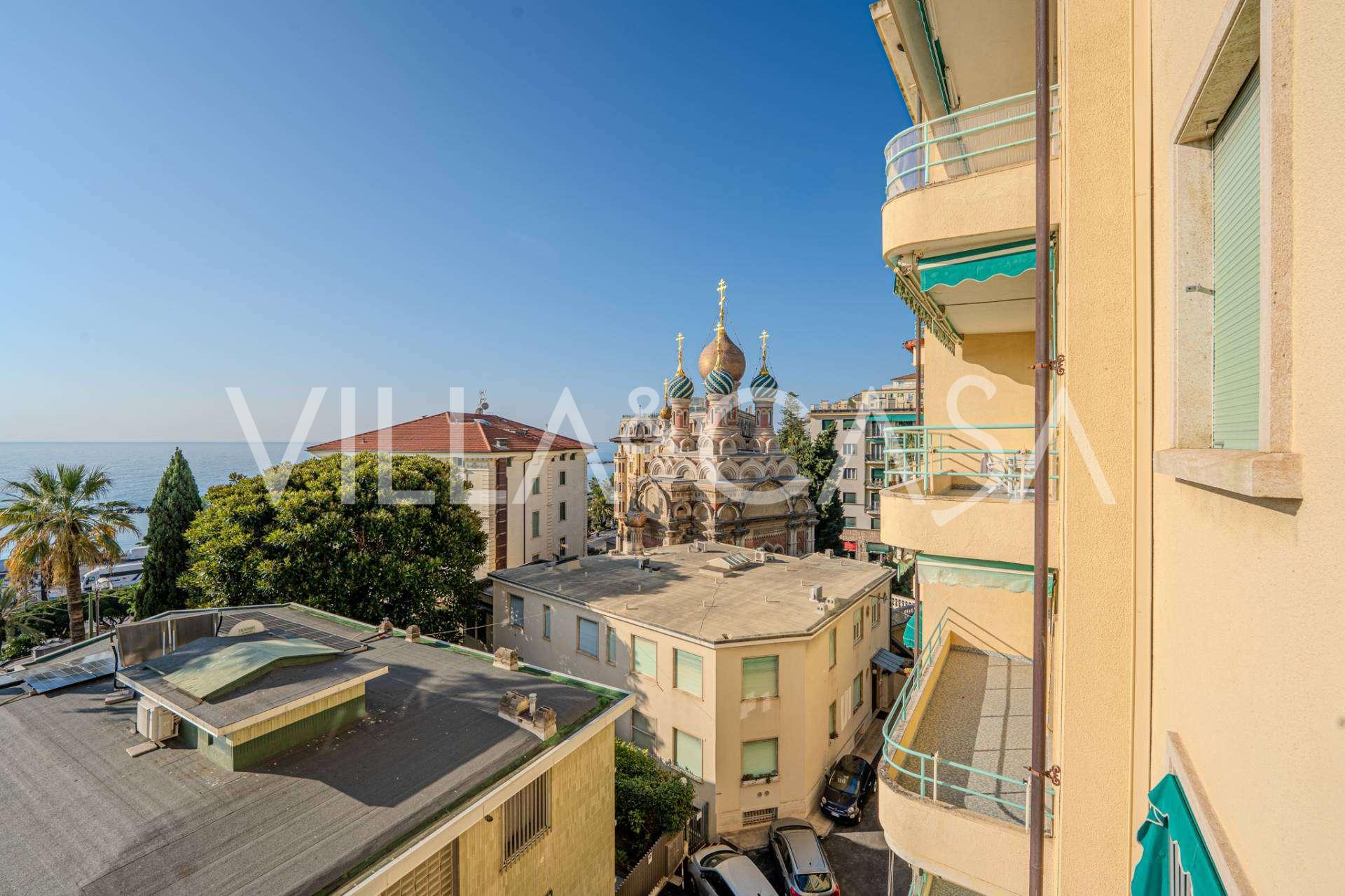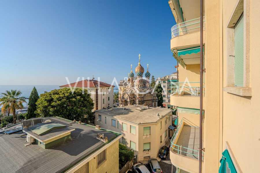 Espacioso apartamento de cuatro habitaciones ubicado en el centro de San Remo, frente a la hermosa Iglesia Rusa, en un prestigioso complejo residencial con áreas embellecidas. El apartamento ocupa 104 m2 y se encuentra en el cuarto piso, desde donde se puede disfrutar de vistas al mar y a la arquitectura única de la Iglesia Rusa.
