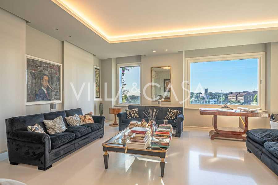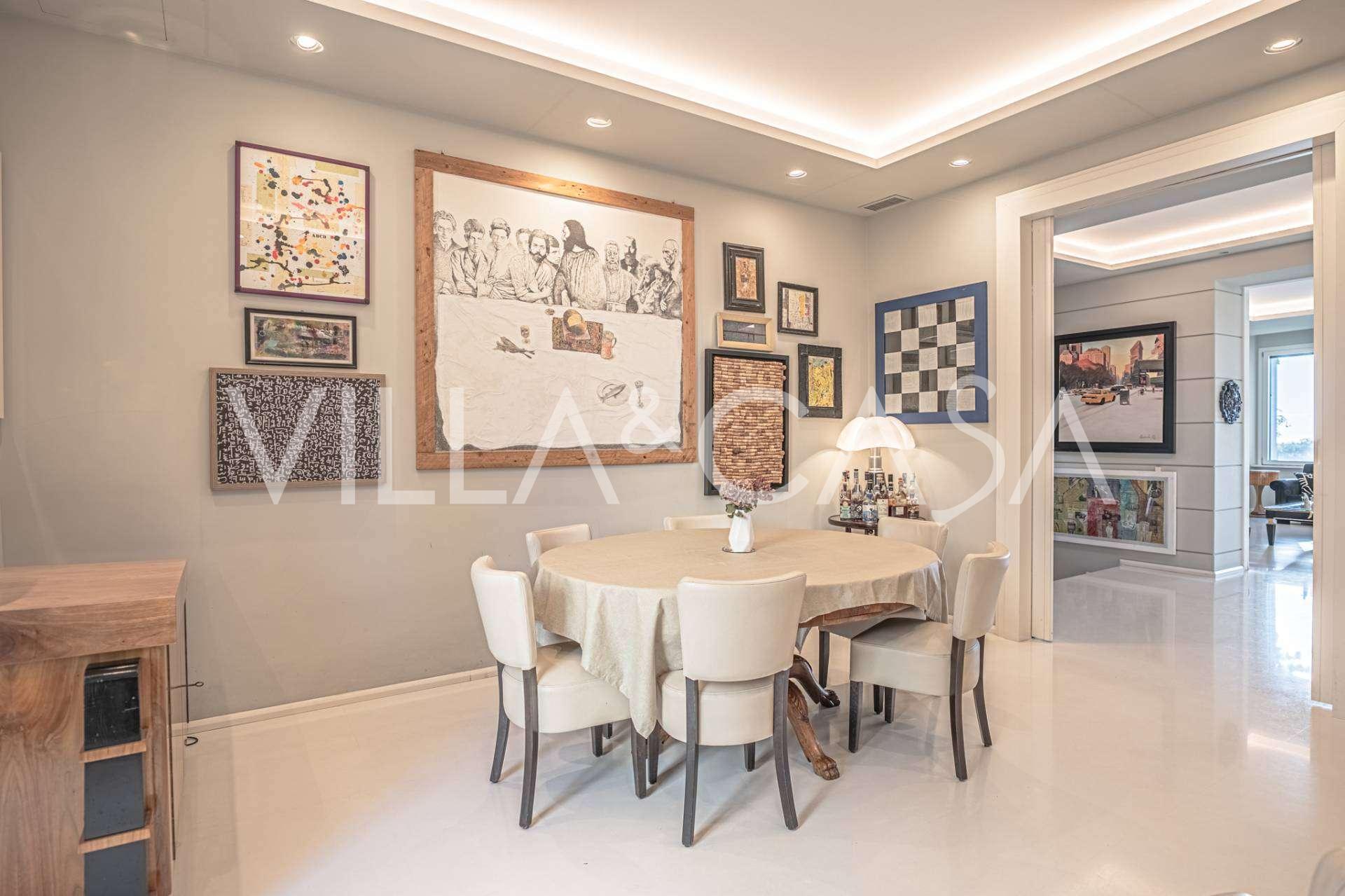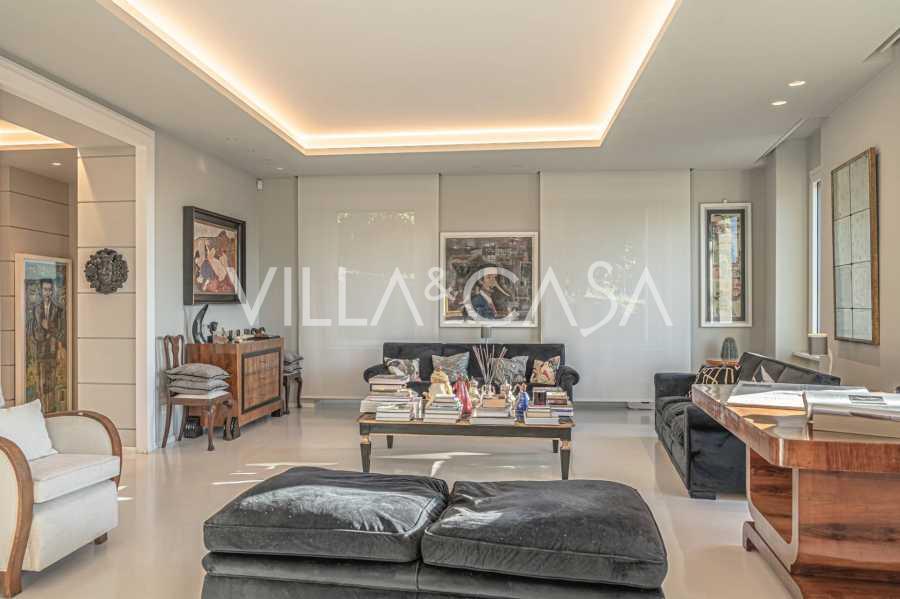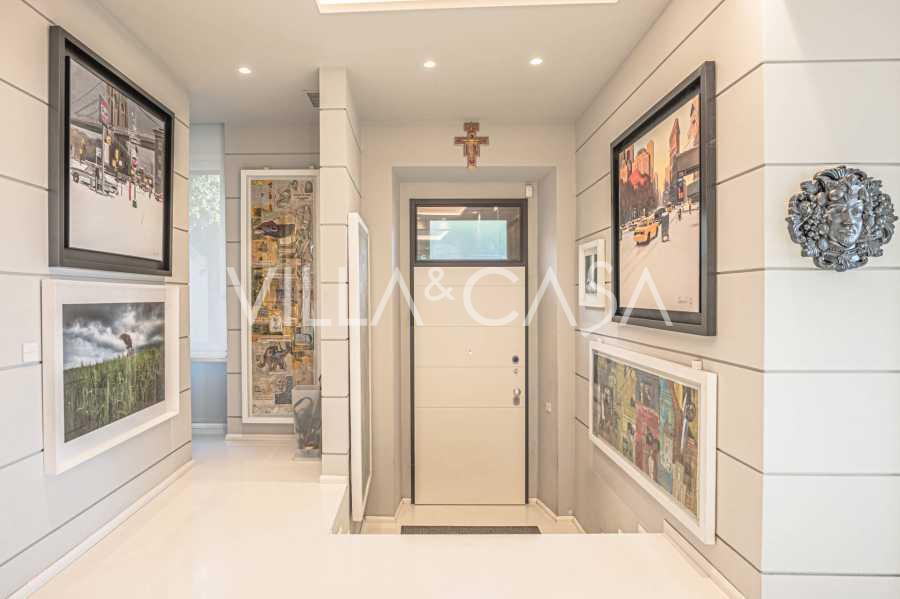 La villa tiene una superficie de 597 metros cuadrados y está distribuida en cuatro pisos, armoniosamente conectados por un ascensor interior moderno, que garantiza privacidad y un alto nivel de comodidad.