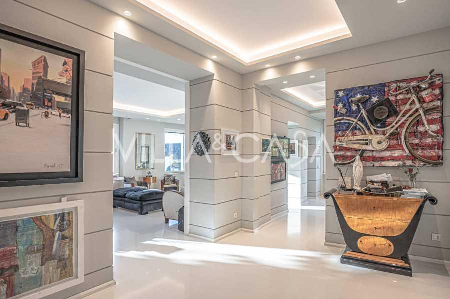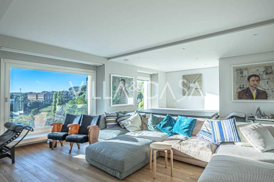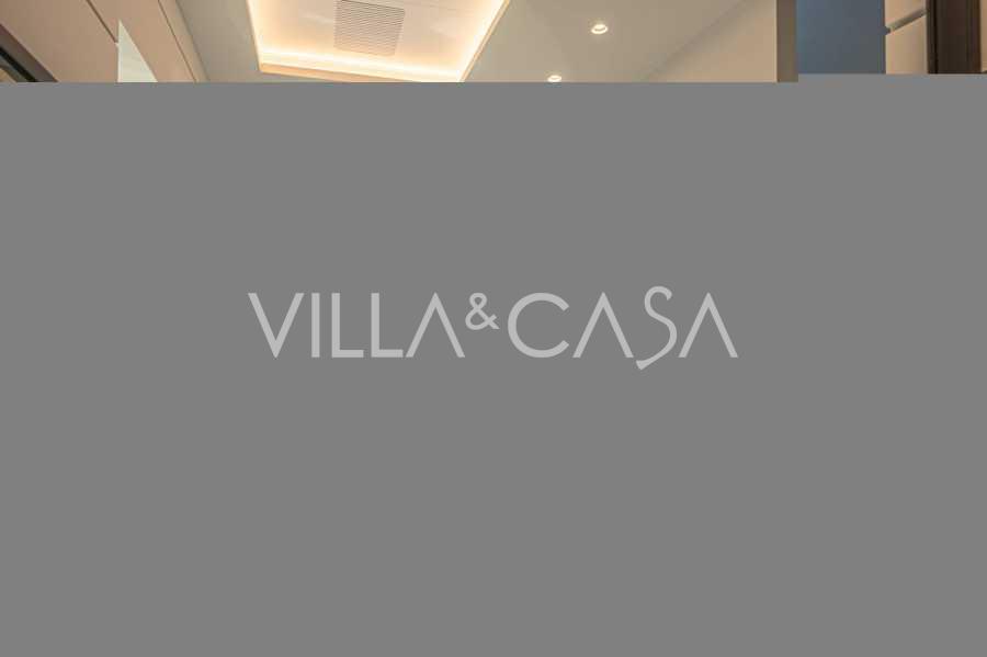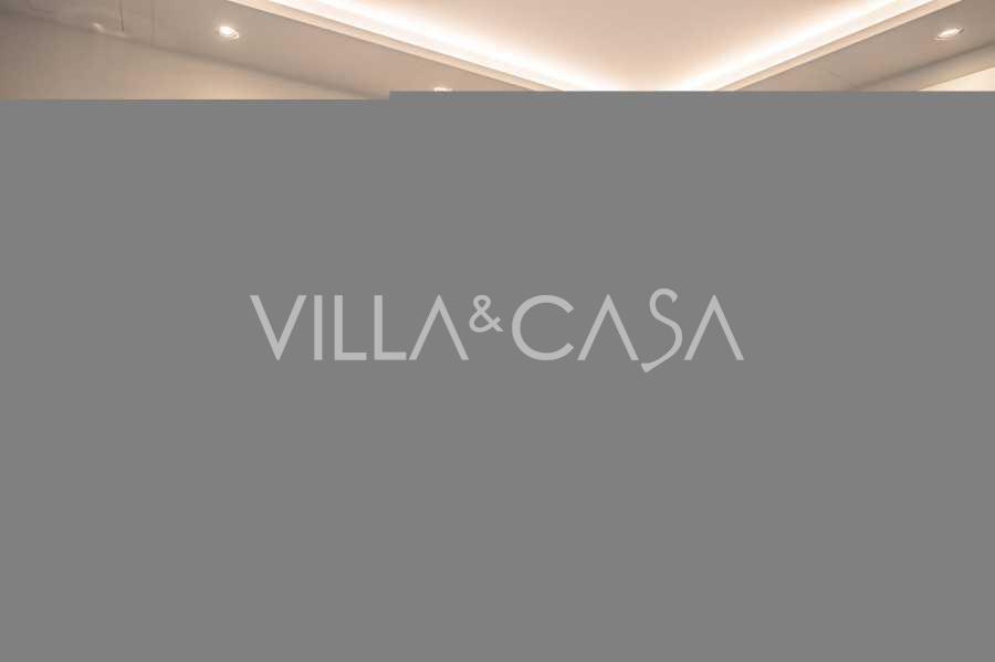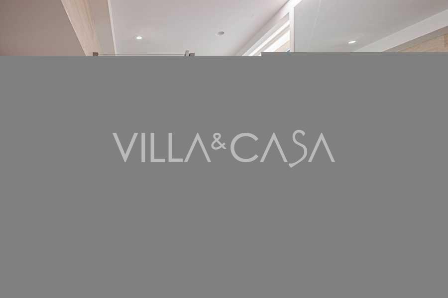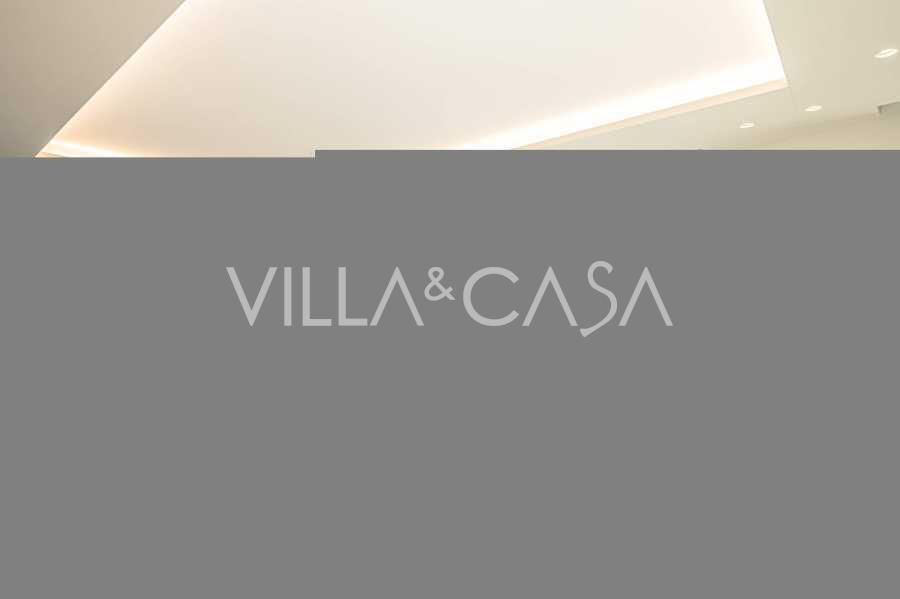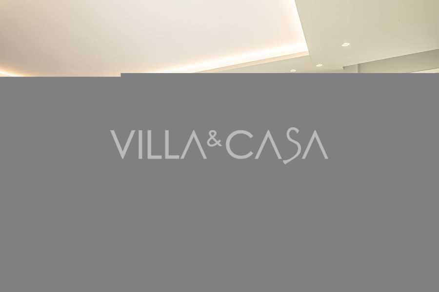 El interior se caracteriza por espacios amplios y luminosos, acabados con materiales de la más alta calidad y equipados con un sistema de gestión del hogar integrado moderno, que permite controlar inteligentemente la iluminación, la calefacción y refrigeración del suelo, el aire acondicionado y la seguridad mediante un sofisticado sistema de alarma.