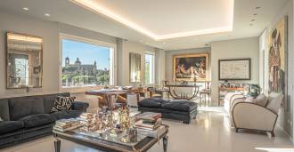 En el primer piso, una puerta blindada digital conduce a un elegante salón de planta abierta, ideal para recibir invitados. La cocina moderna, totalmente equipada, está conectada con el comedor formal, que da a un encantador jardín privado: un oasis de tranquilidad y privacidad, ideal para relajarse o celebrar eventos exclusivos. Un elegante baño de visitas completa este piso.