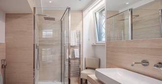 En el piso superior se encuentra la zona de dormitorios, que incluye cuatro amplios dormitorios, cada uno con su propio baño, hechos con materiales de diseño. El dormitorio principal está además equipado con un vestidor independiente, diseñado para máxima comodidad y funcionalidad.