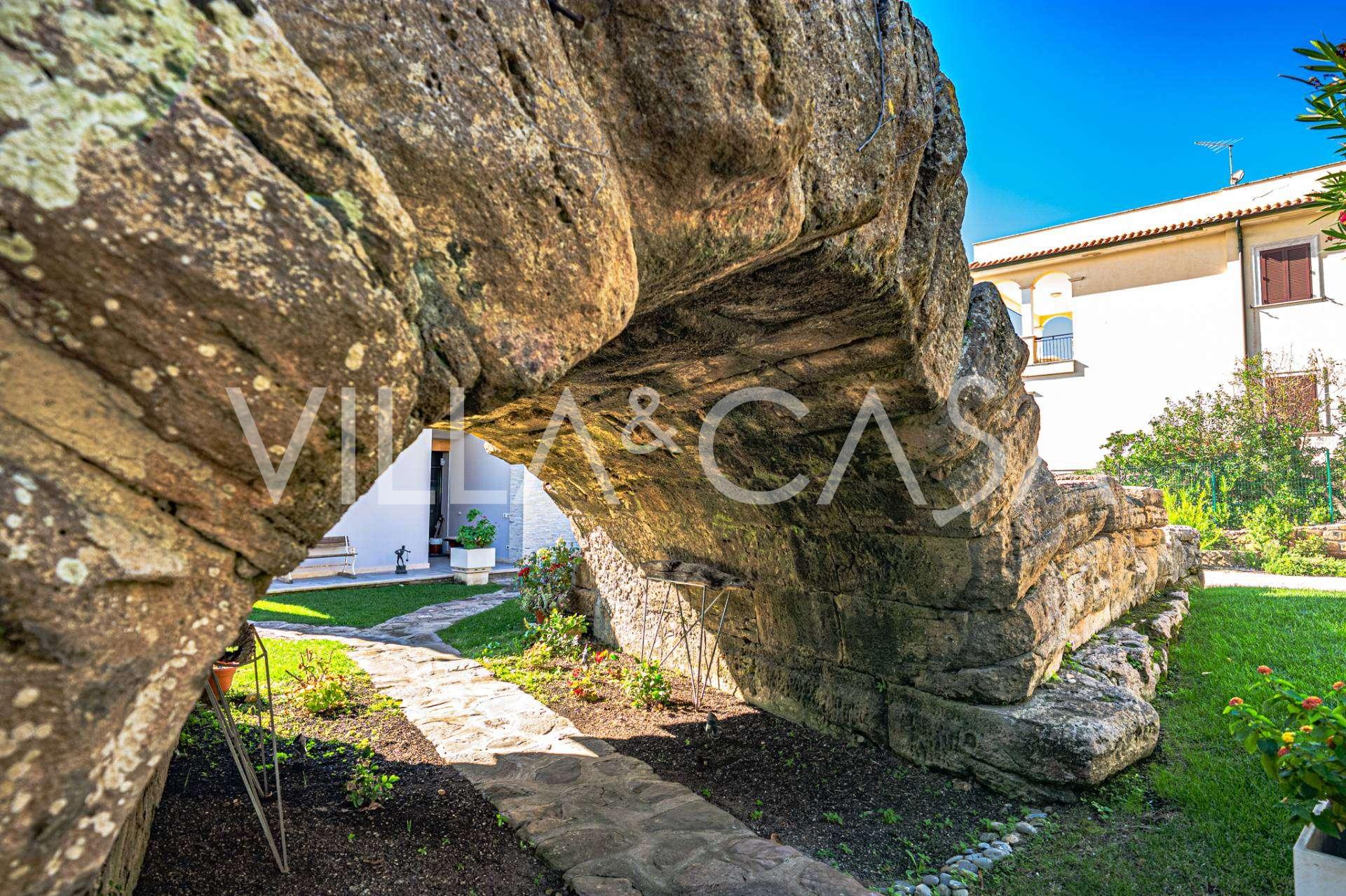 Un jardín privado de aproximadamente 700 metros cuadrados rodea la villa con una elegancia natural y conduce a una terraza a nivel del mar, un lugar apartado y pintoresco donde el límite entre la villa y el mar Tirreno se desvanece. En este espacio también hay una habitación adicional con una terraza en la parte superior, ideal como área de descanso o mirador con vistas al mar.