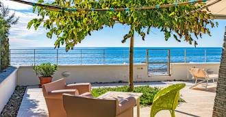 Entre 2021 y 2023, la residencia fue completamente restaurada. Está dispuesta en un solo nivel y diseñada para maximizar la proximidad al mar, proporcionando iluminación natural, integridad espacial y hermosas vistas. Los interiores elegantes y sofisticados se conectan con el entorno exterior a través de grandes ventanales que enmarcan el horizonte marino, creando una transición natural entre las áreas de estar.