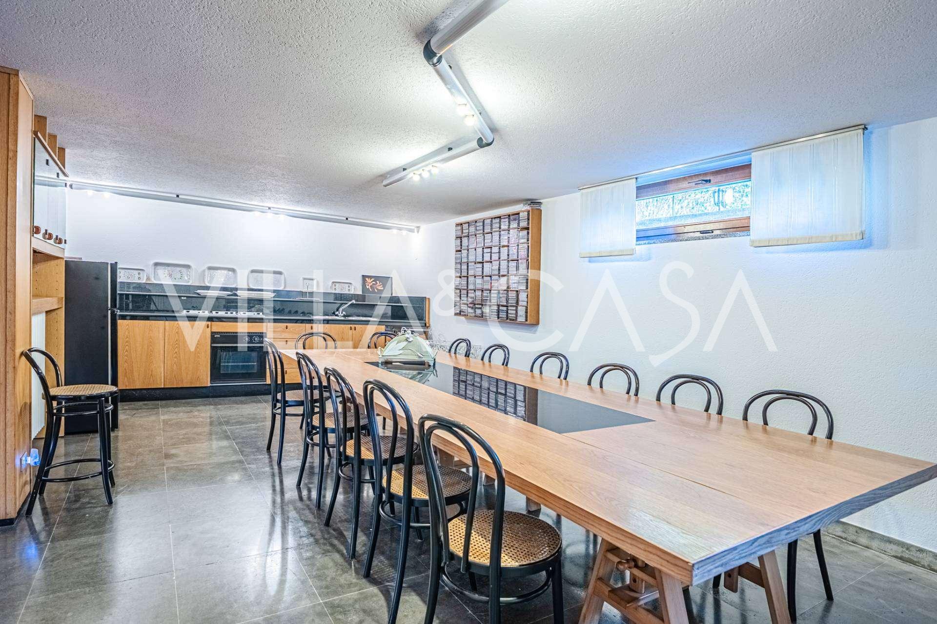 Sótano: elegante taberna con zona de descanso, cocina independiente, despensa, bodega, baño y amplio garaje de 107 m².