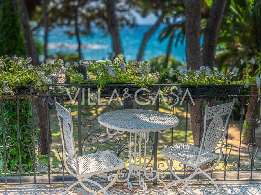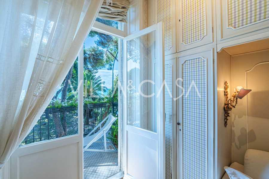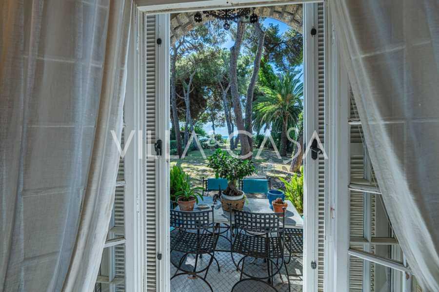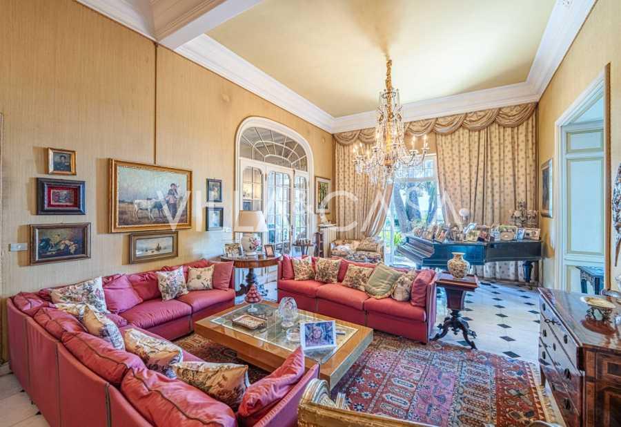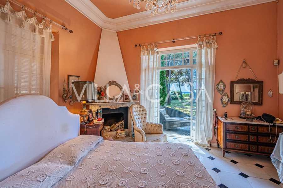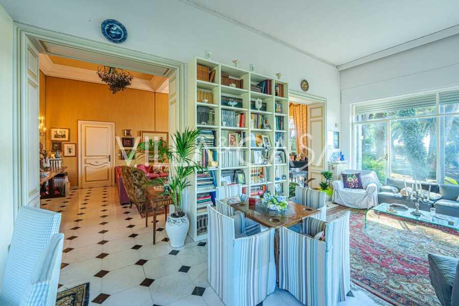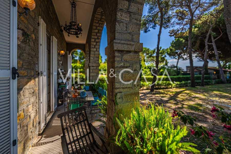 Se vende una elegante villa en primera línea de playa en Diano Marina, diseñada al estilo inglés, con una superficie de aproximadamente 628 m2, distribuida en cuatro niveles. Cuenta con acceso directo al mar y a la playa de arena. La villa está rodeada por un extenso parque de aproximadamente 5000 m2 con pinos mediterráneos centenarios.