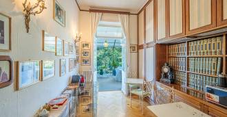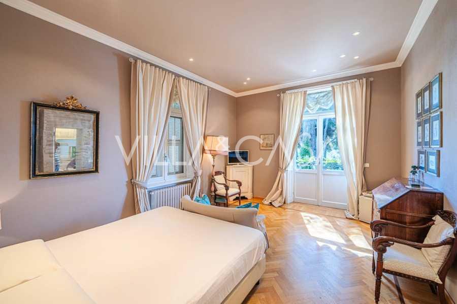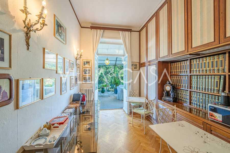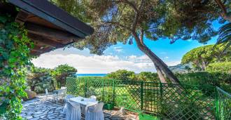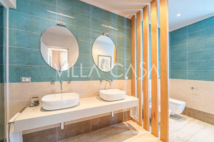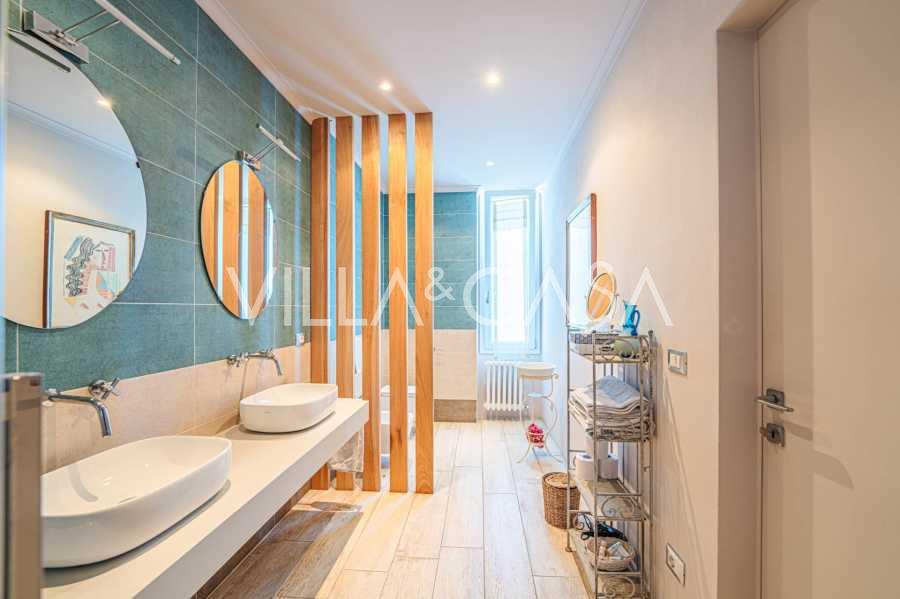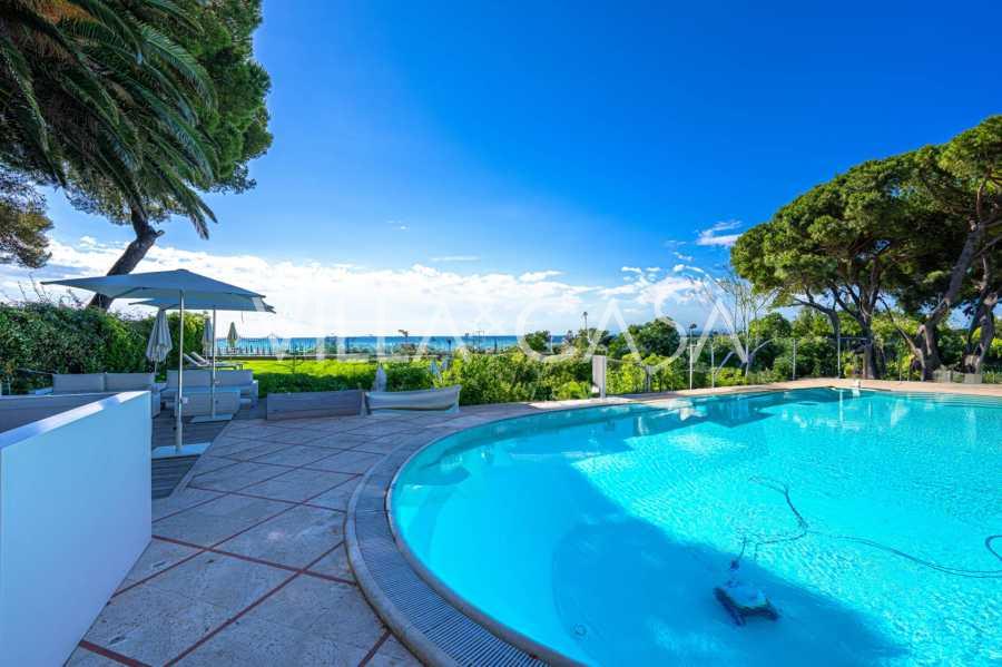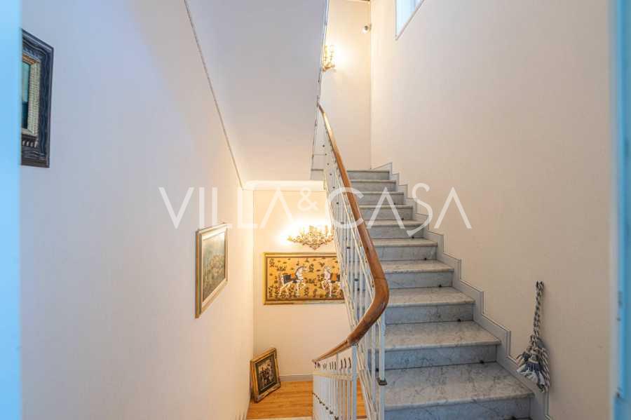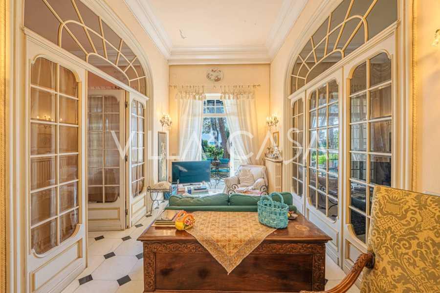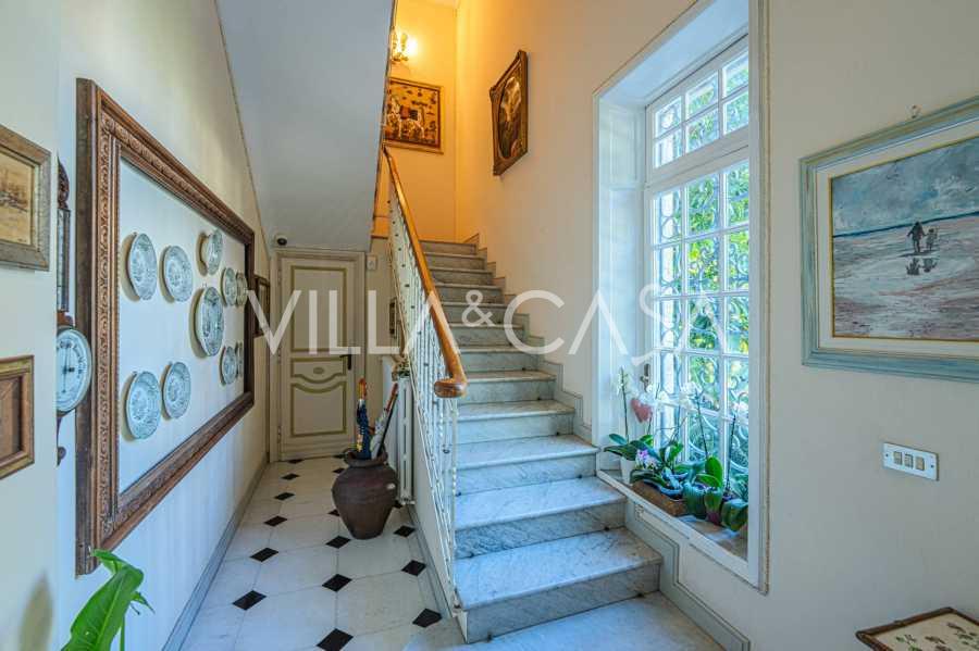 Se vende una elegante villa en primera línea de playa en Diano Marina, diseñada al estilo inglés, con una superficie de aproximadamente 628 m2, distribuida en cuatro niveles. Cuenta con acceso directo al mar y a la playa de arena. La villa está rodeada por un extenso parque de aproximadamente 5000 m2 con pinos mediterráneos centenarios.