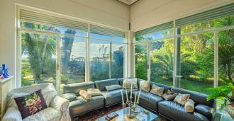 Primer nivel: entrada, amplio pasillo, ascensor, gran salón con chimenea con salida al parque y a la playa, sala de estar con ventanas panorámicas, altura de los techos de 3.5 metros, dormitorio con salida al parque y a la terraza cubierta, baño con bañera, cocina independiente.