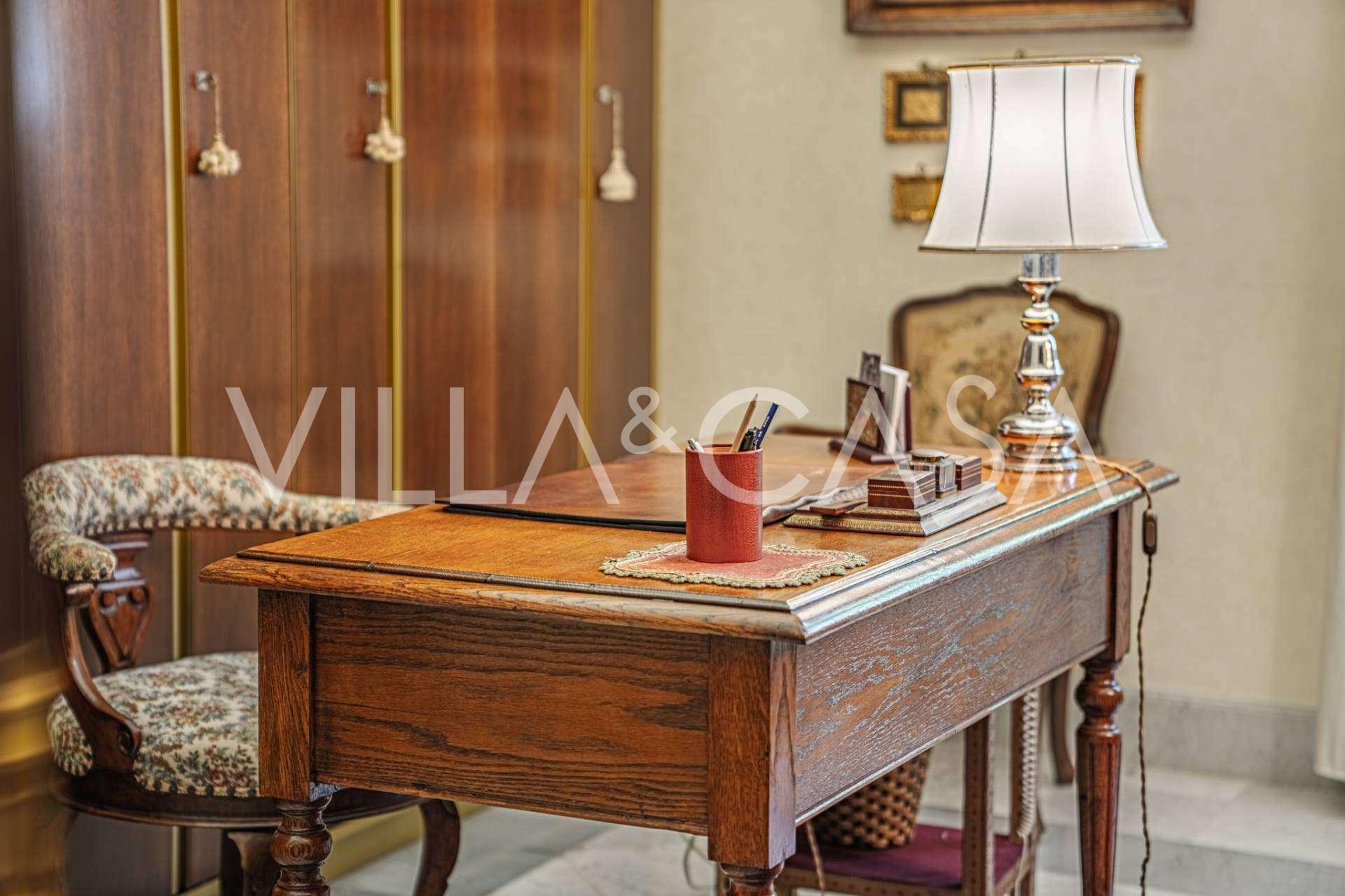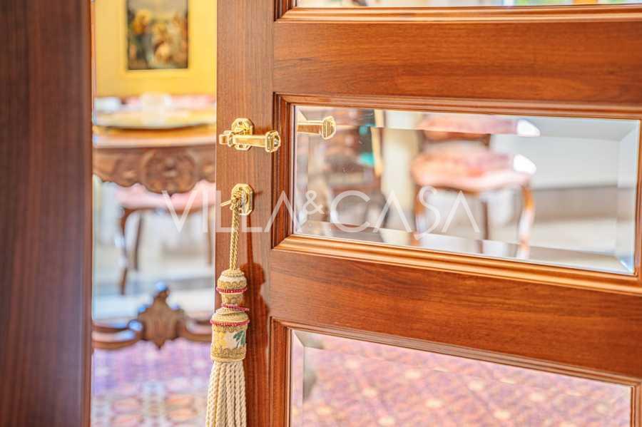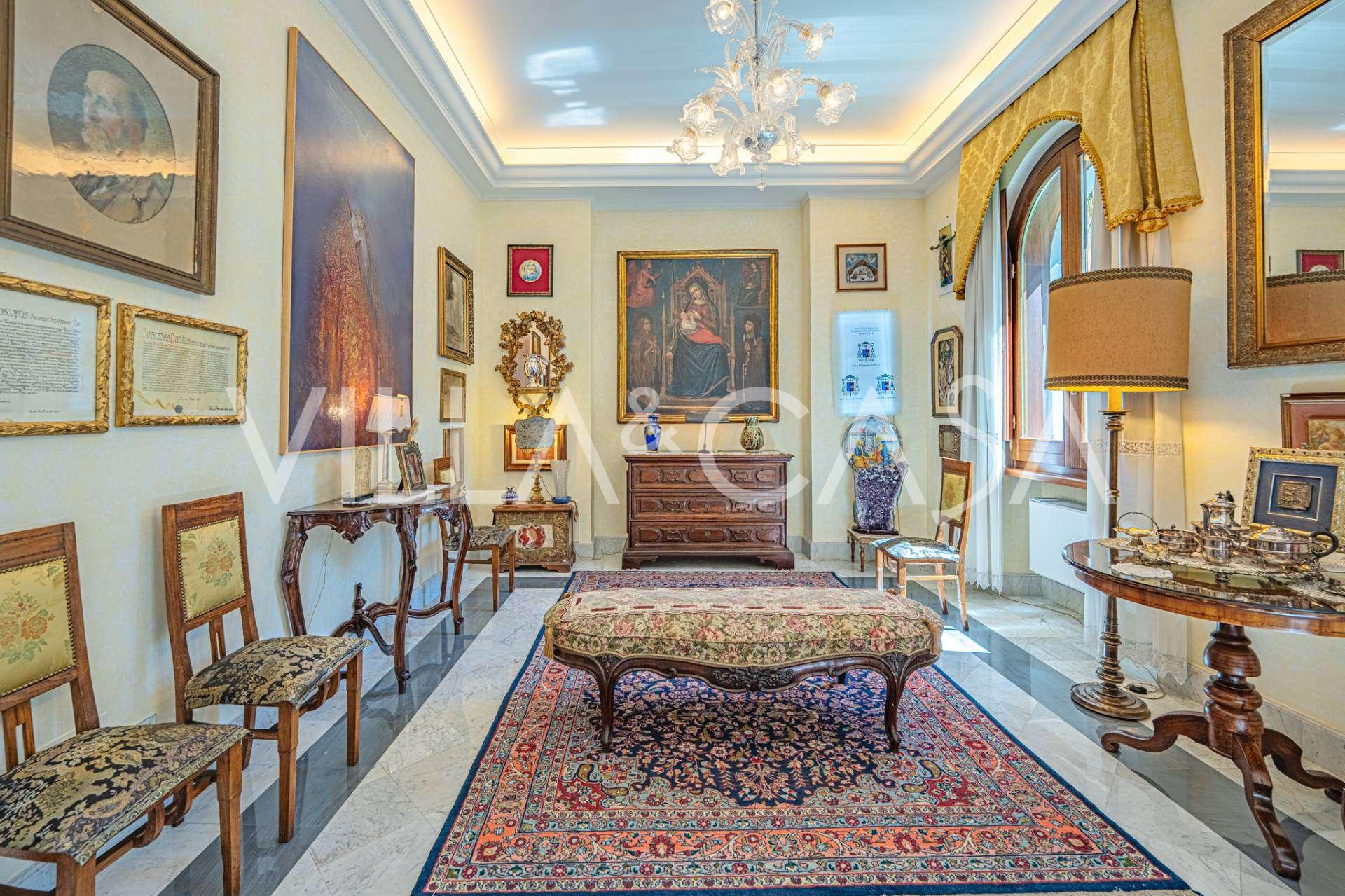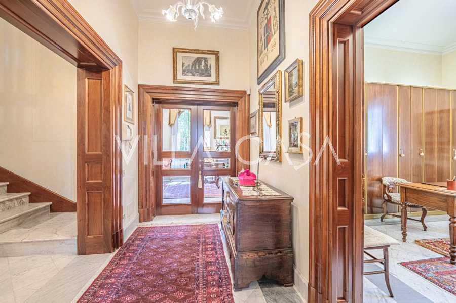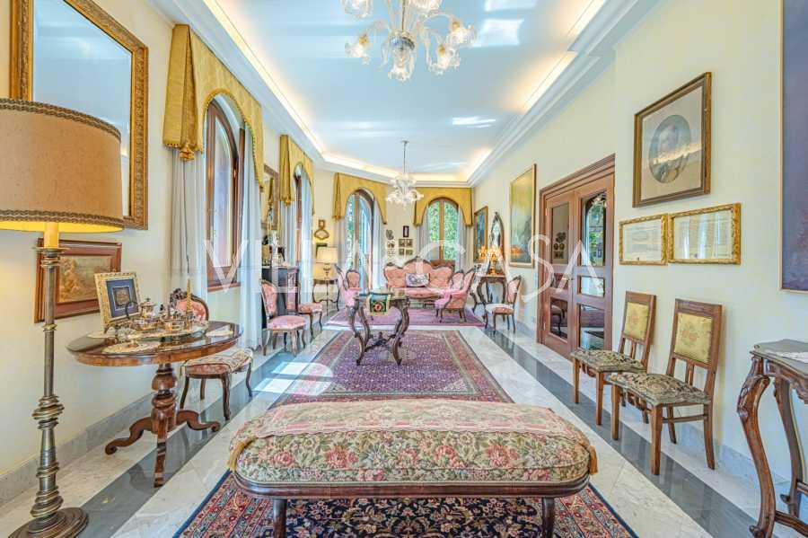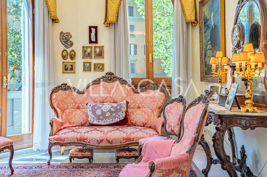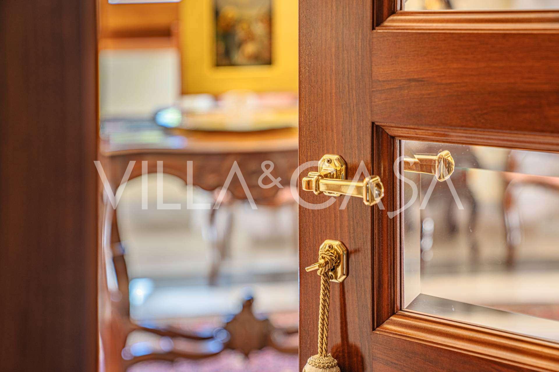 La superficie total de los espacios interiores es de 490 m² y está distribuida en cuatro niveles. Cada espacio está decorado con atención al detalle: materiales costosos, suelos de mármol de Carrara y Verona, ventanas con rejas de hierro antiguas, contraventanas y ventanas de nogal, soluciones de diseño únicas y una distribución elegante crean una atmósfera de sofisticado confort y respetabilidad.