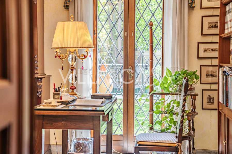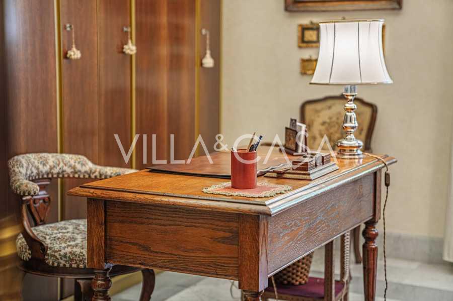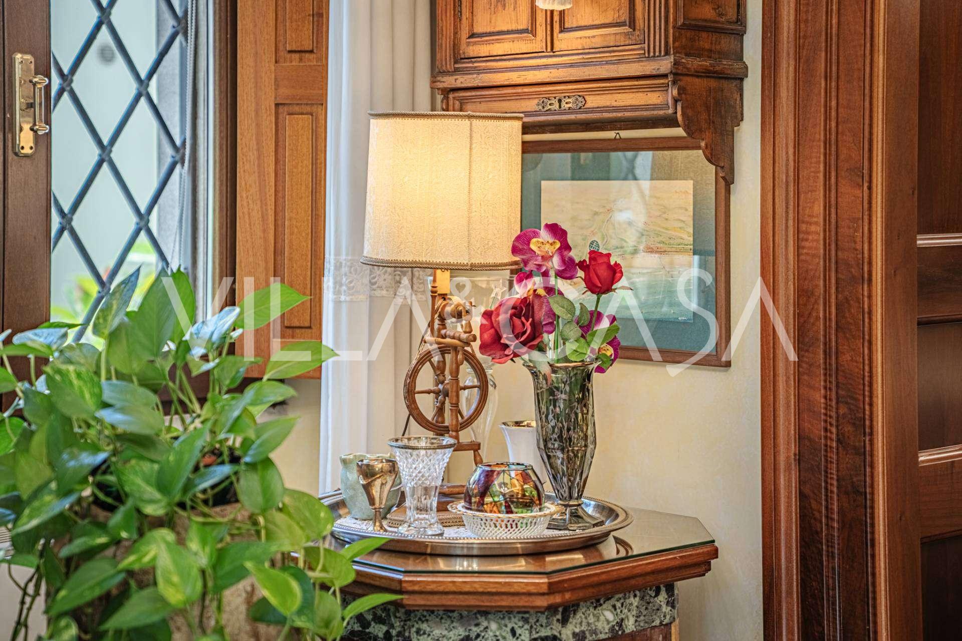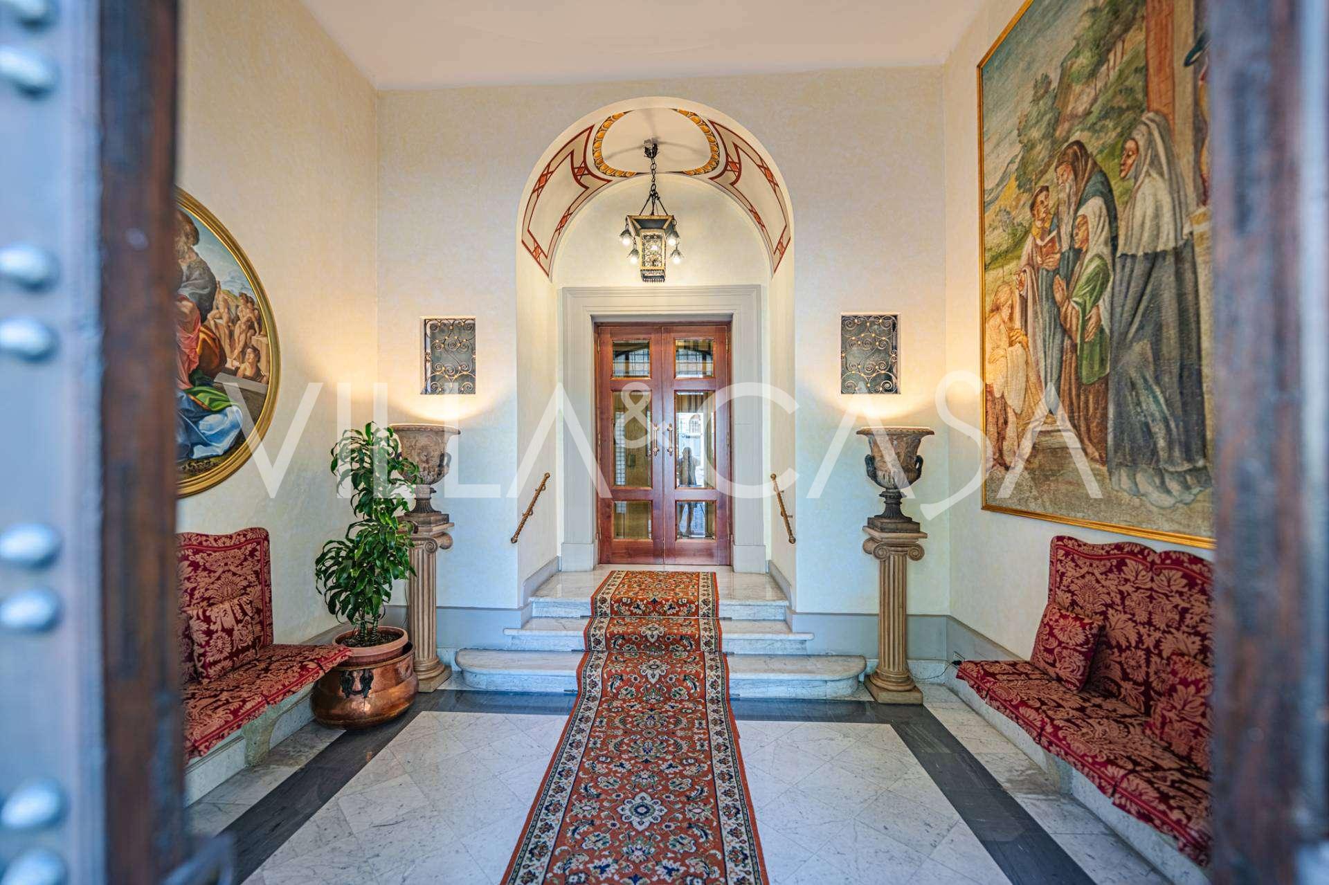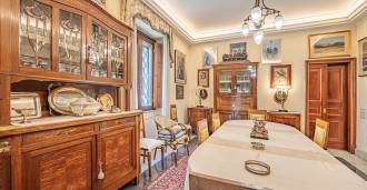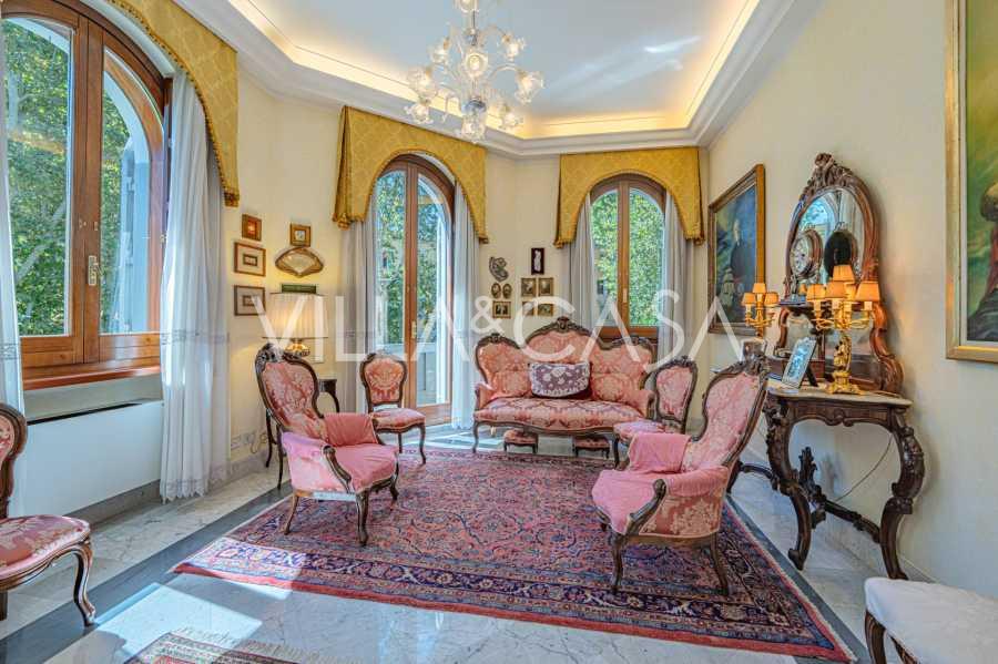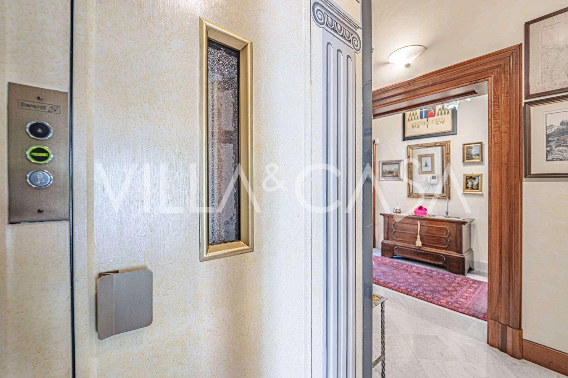 La superficie total de los espacios interiores es de 490 m² y está distribuida en cuatro niveles. Cada espacio está decorado con atención al detalle: materiales costosos, suelos de mármol de Carrara y Verona, ventanas con rejas de hierro antiguas, contraventanas y ventanas de nogal, soluciones de diseño únicas y una distribución elegante crean una atmósfera de sofisticado confort y respetabilidad.