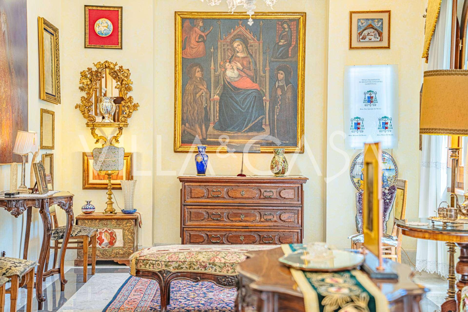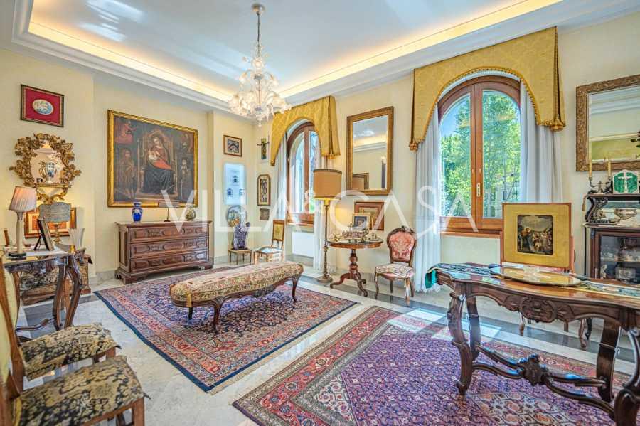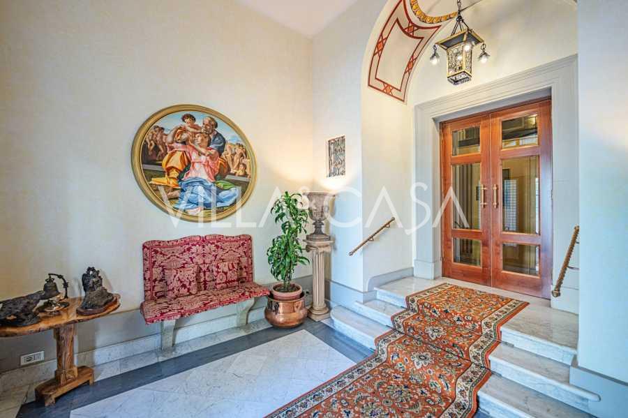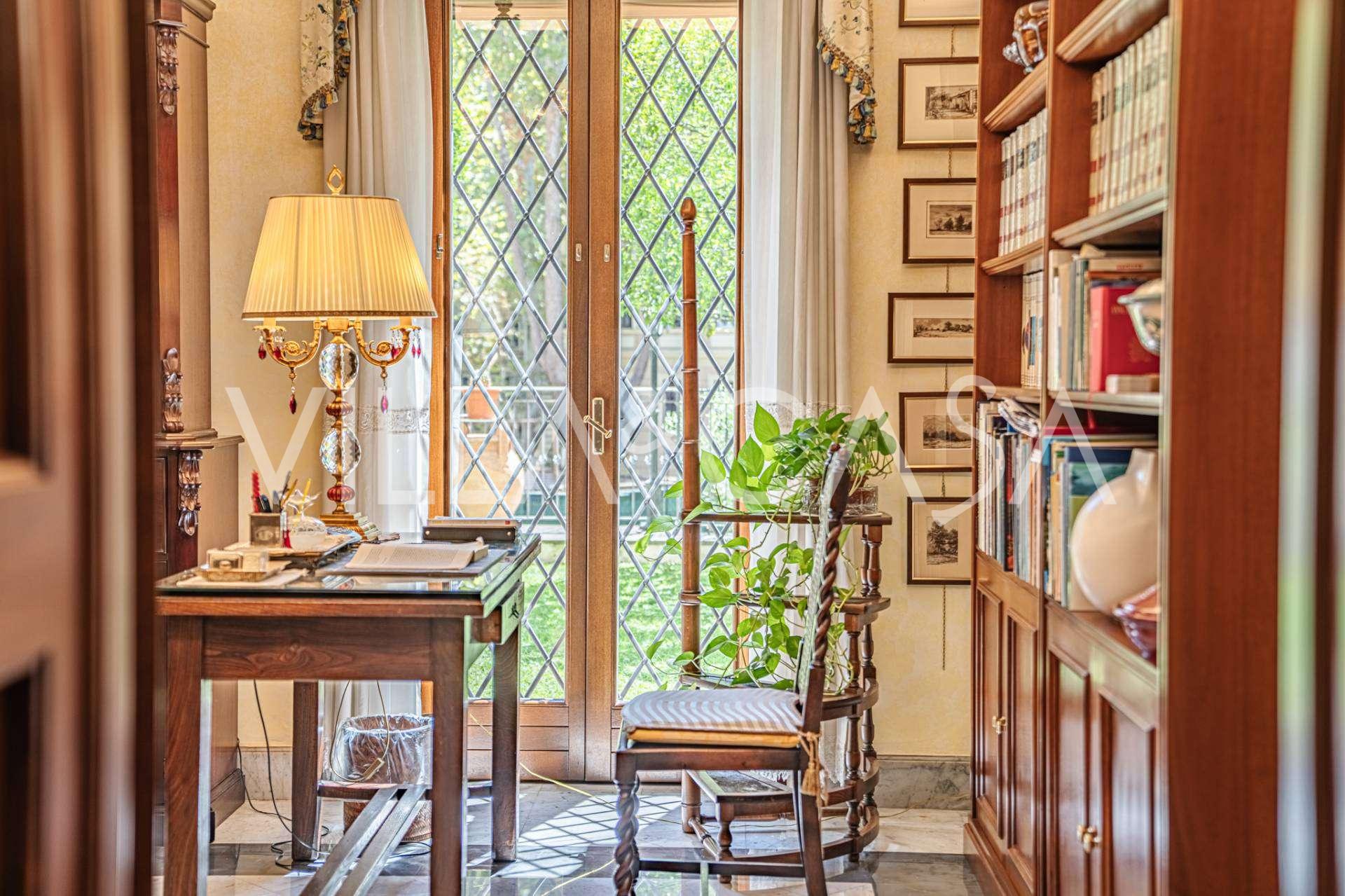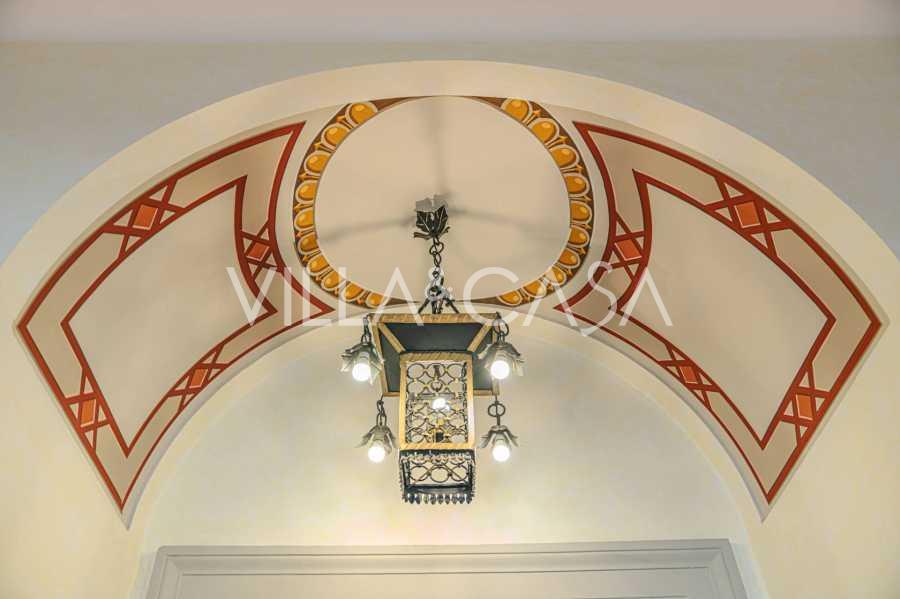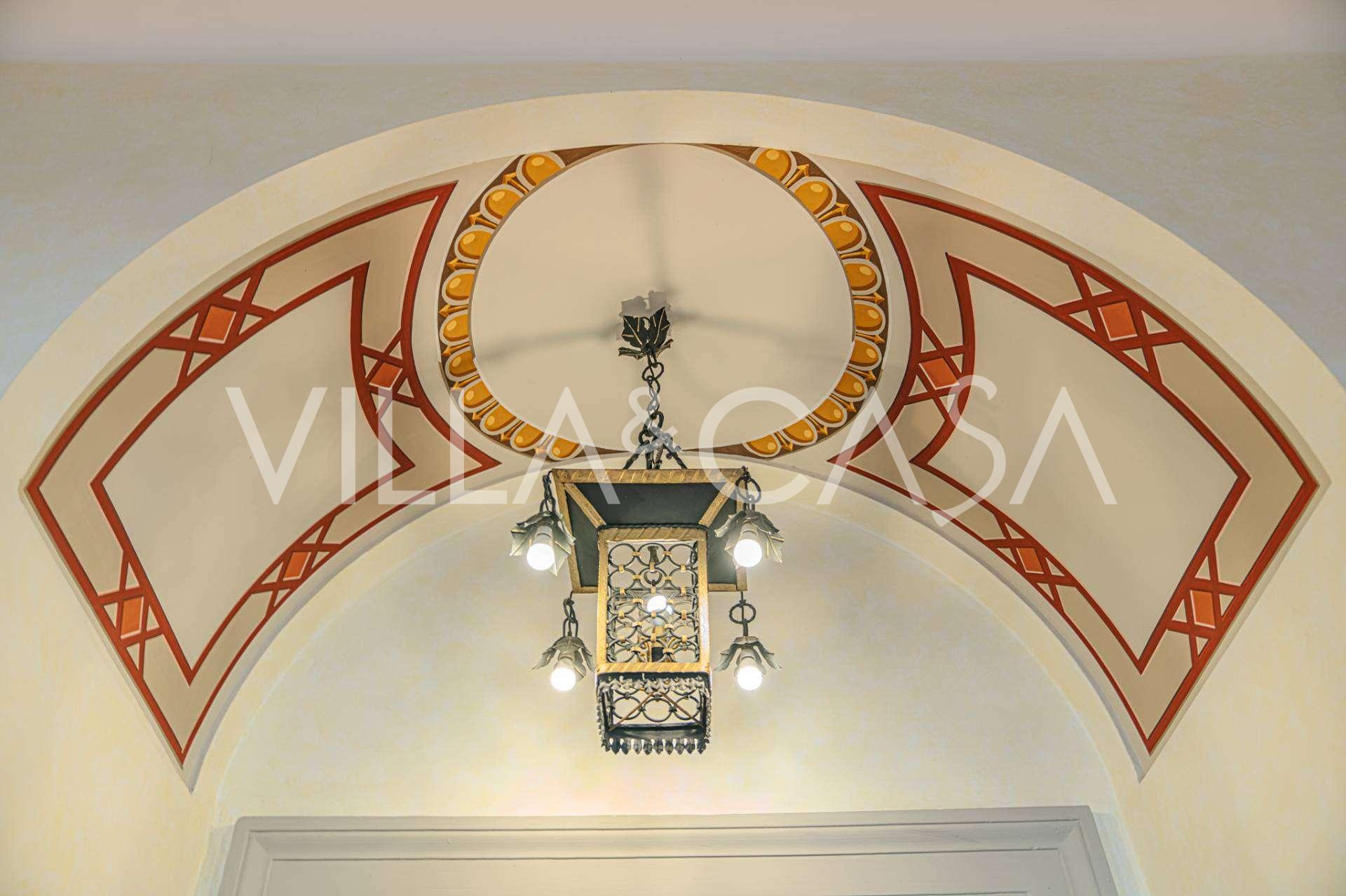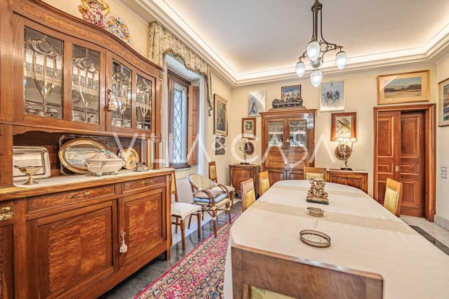 La superficie total de los espacios interiores es de 490 m² y está distribuida en cuatro niveles. Cada espacio está decorado con atención al detalle: materiales costosos, suelos de mármol de Carrara y Verona, ventanas con rejas de hierro antiguas, contraventanas y ventanas de nogal, soluciones de diseño únicas y una distribución elegante crean una atmósfera de sofisticado confort y respetabilidad.