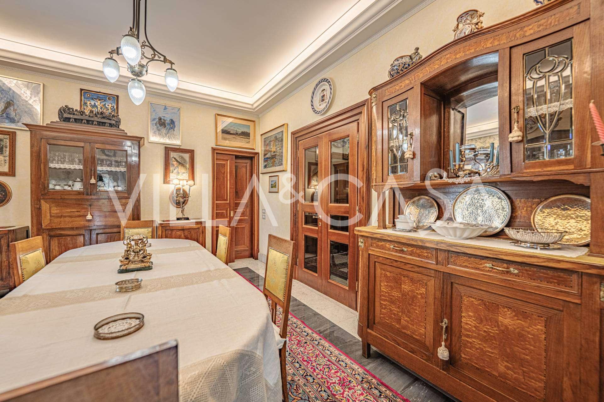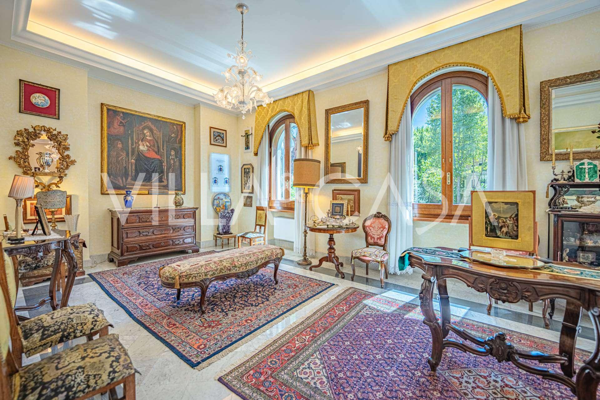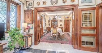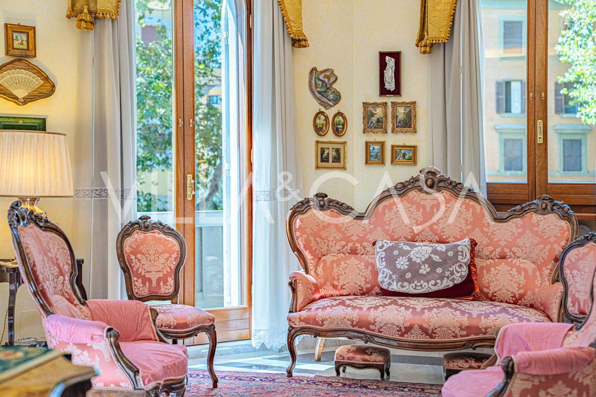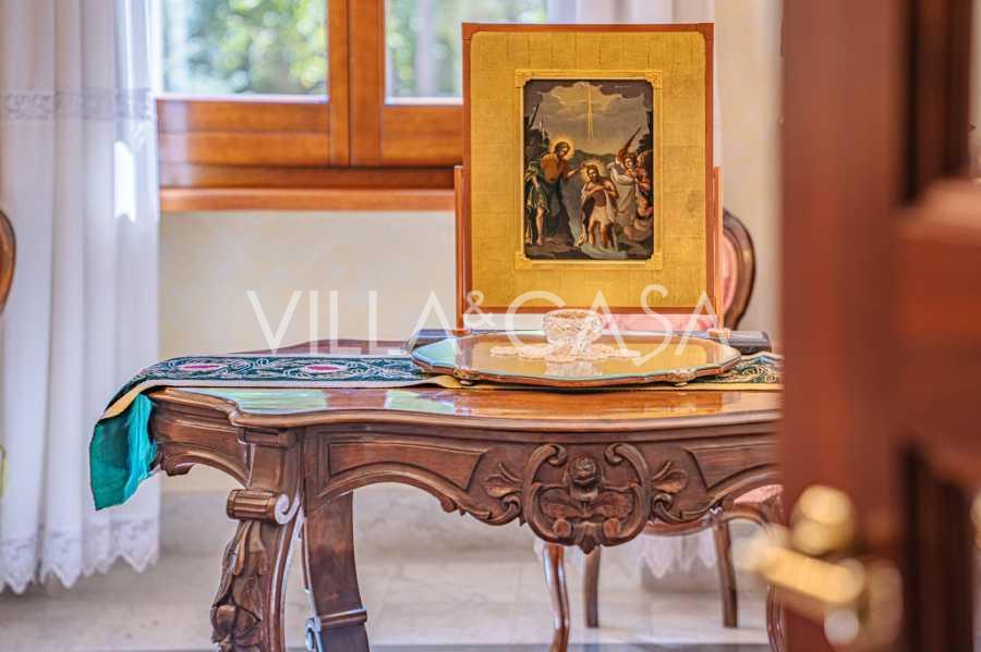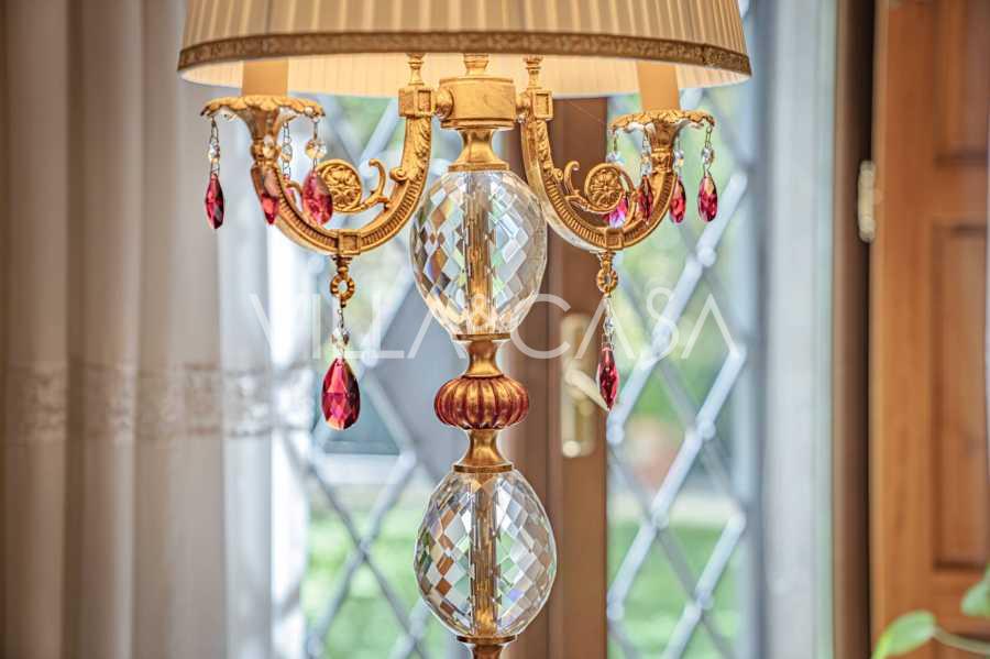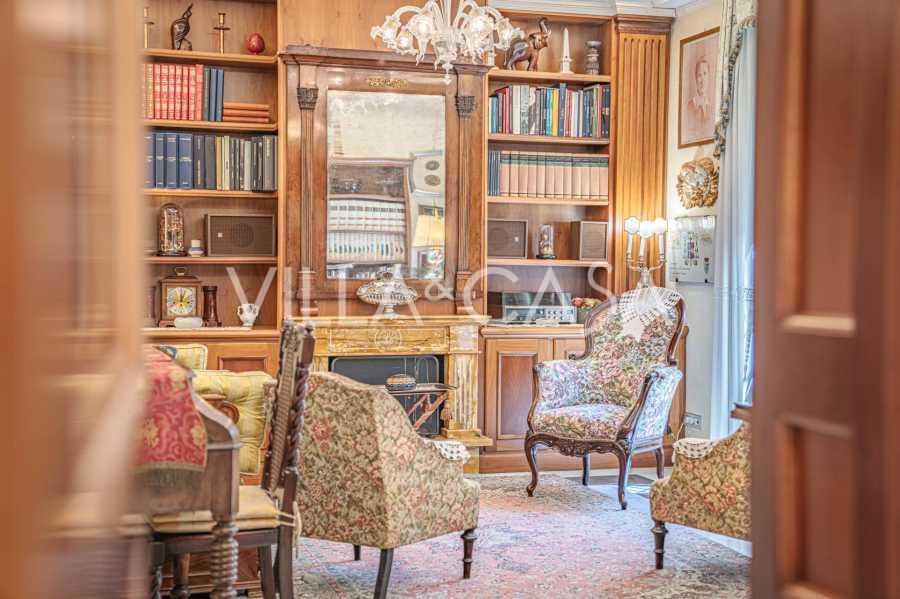 La superficie total de los espacios interiores es de 490 m² y está distribuida en cuatro niveles. Cada espacio está decorado con atención al detalle: materiales costosos, suelos de mármol de Carrara y Verona, ventanas con rejas de hierro antiguas, contraventanas y ventanas de nogal, soluciones de diseño únicas y una distribución elegante crean una atmósfera de sofisticado confort y respetabilidad.