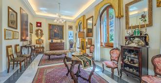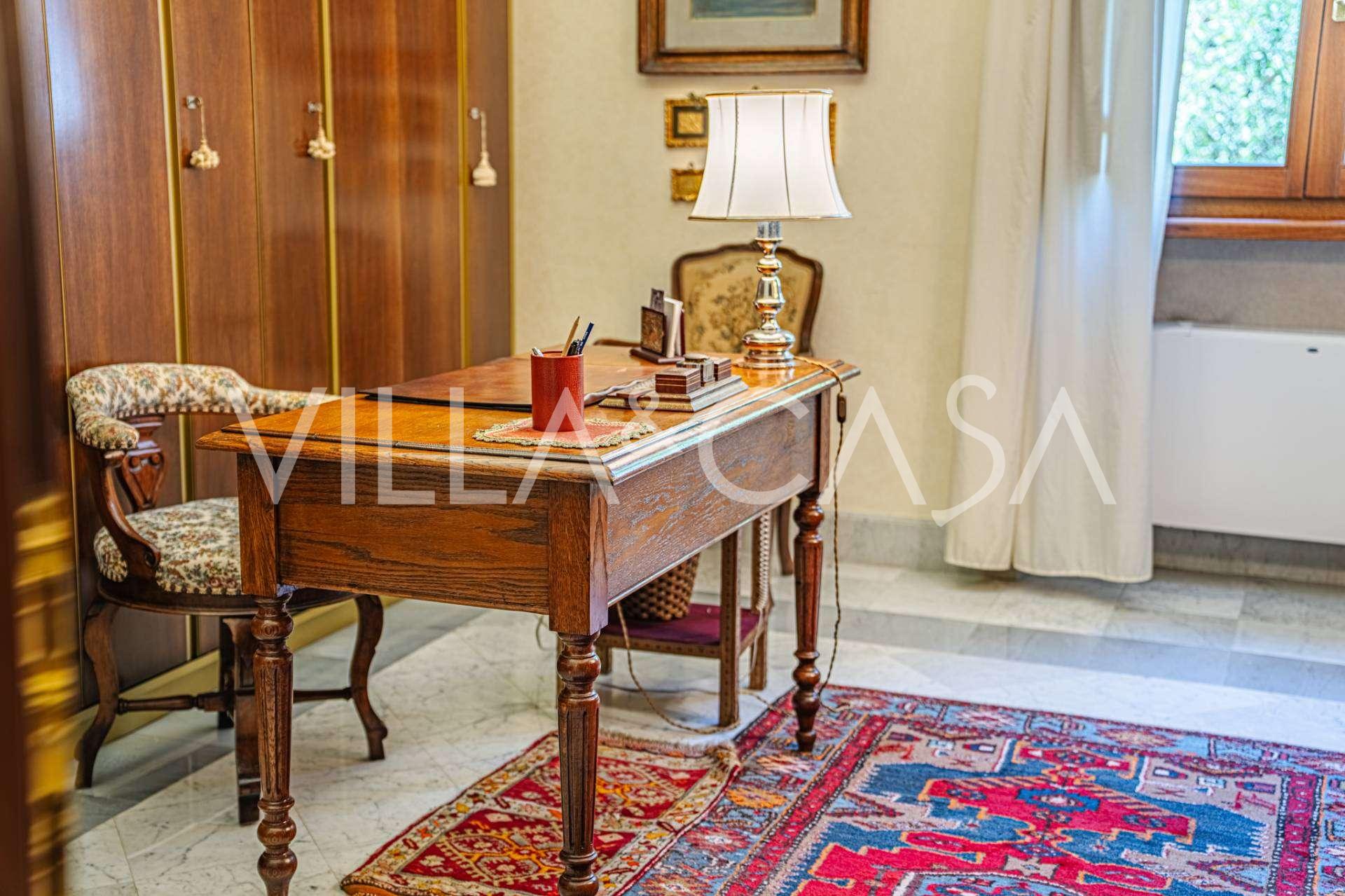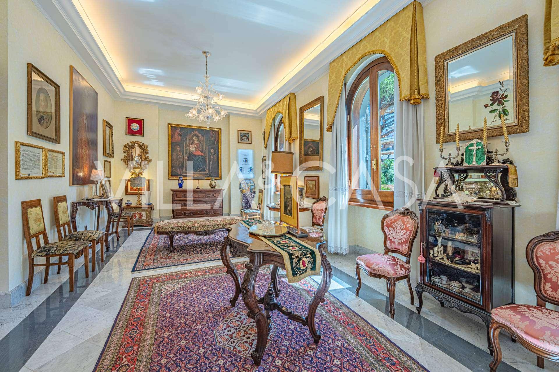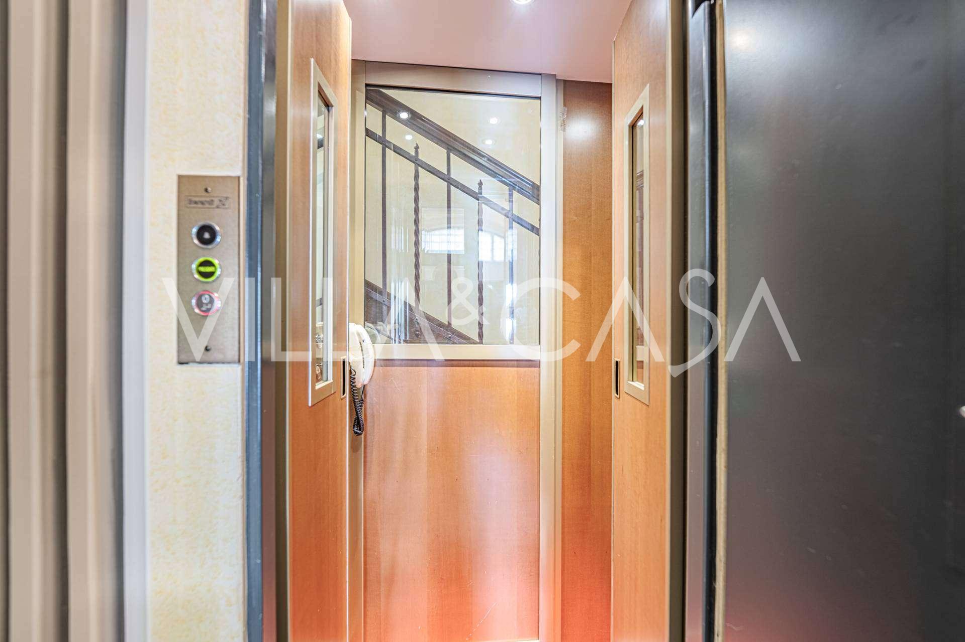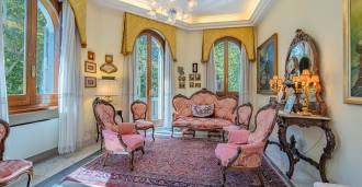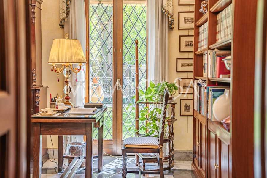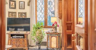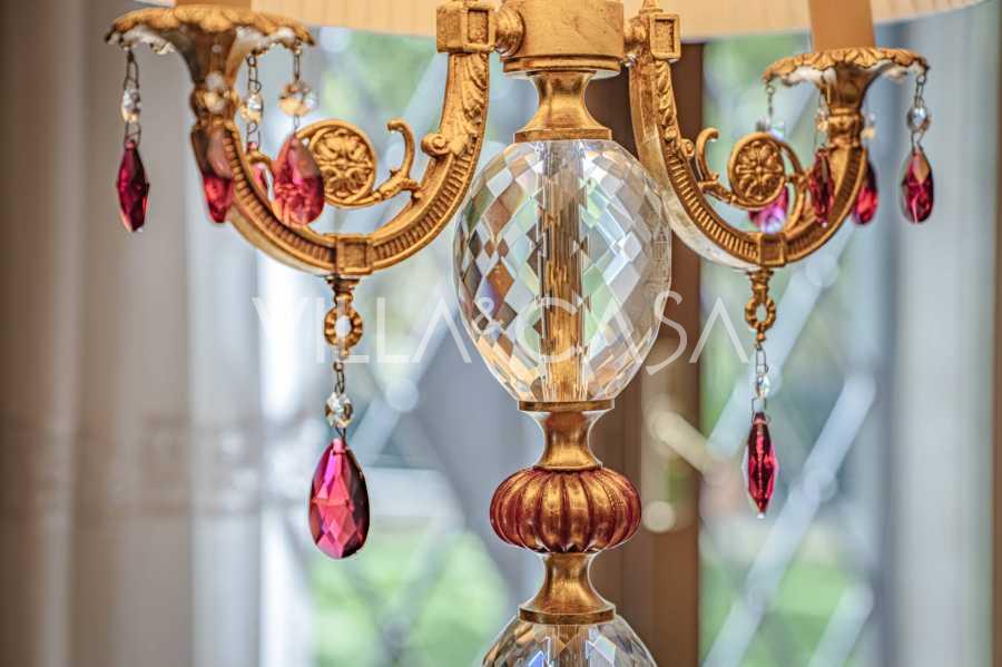 La superficie total de los espacios interiores es de 490 m² y está distribuida en cuatro niveles. Cada espacio está decorado con atención al detalle: materiales costosos, suelos de mármol de Carrara y Verona, ventanas con rejas de hierro antiguas, contraventanas y ventanas de nogal, soluciones de diseño únicas y una distribución elegante crean una atmósfera de sofisticado confort y respetabilidad.