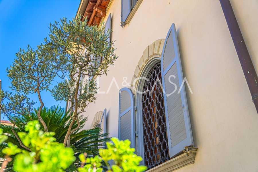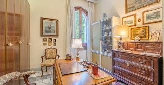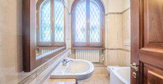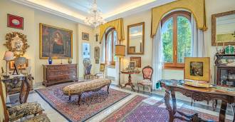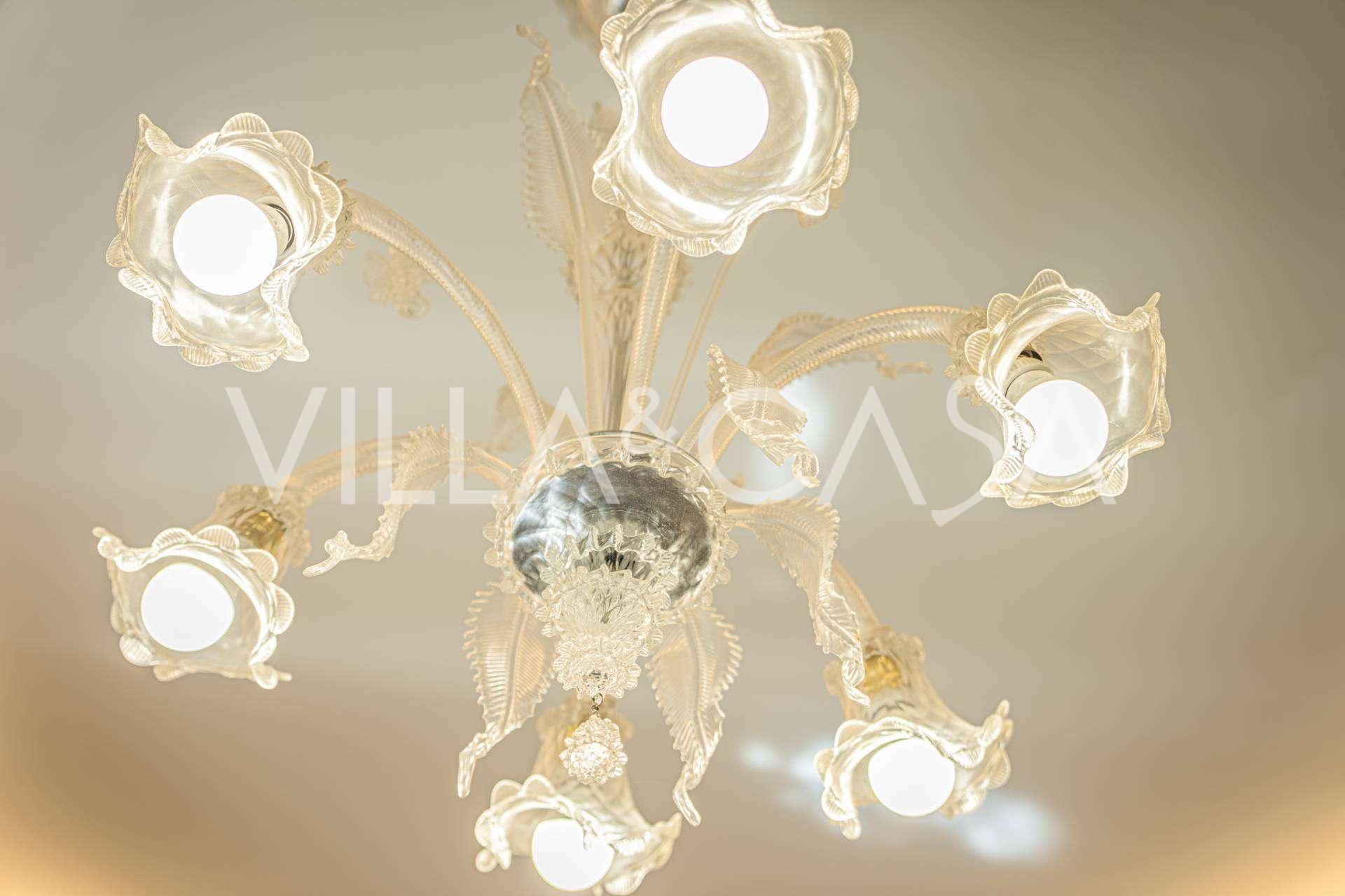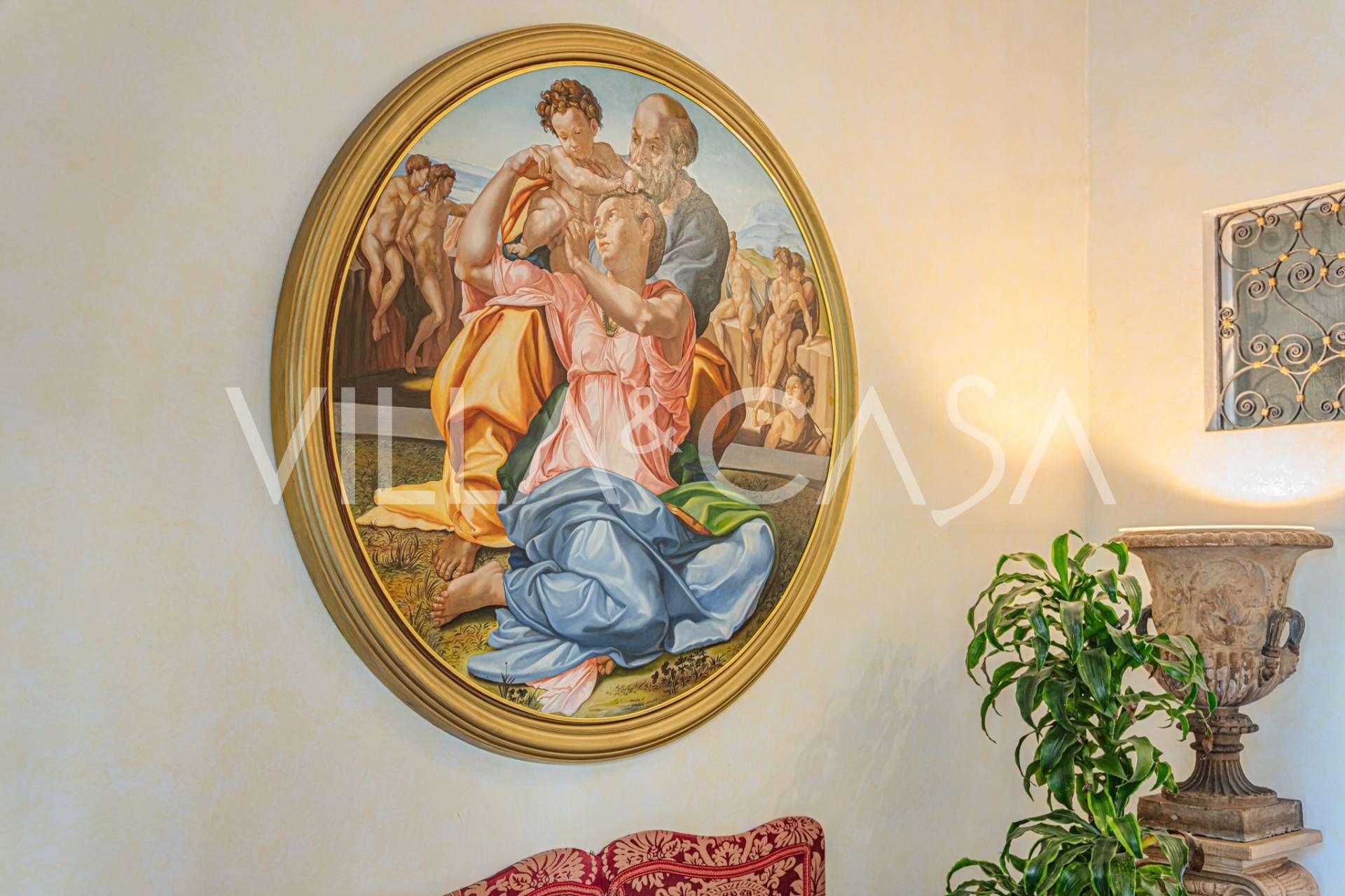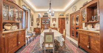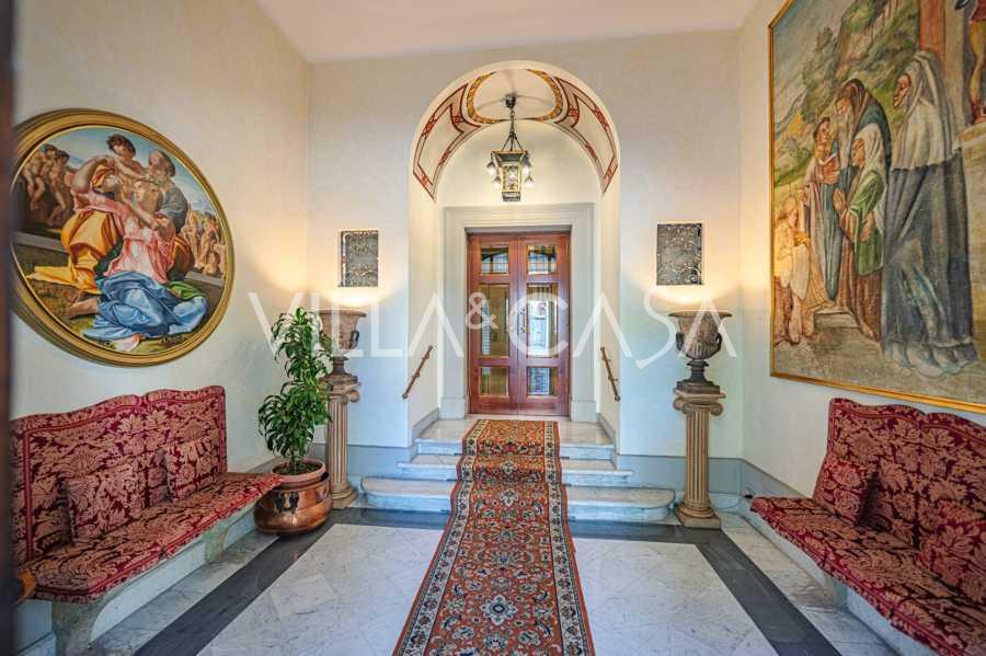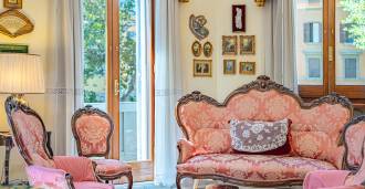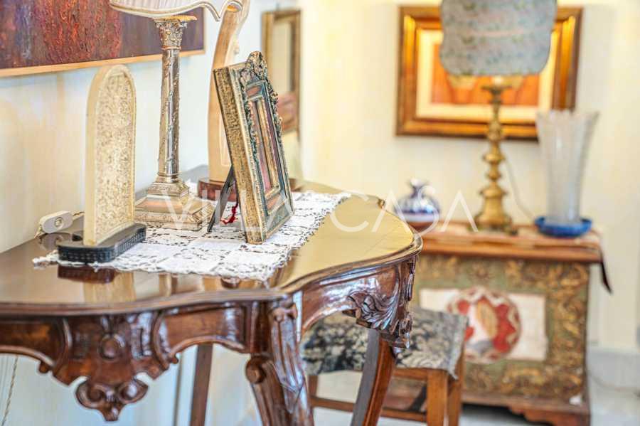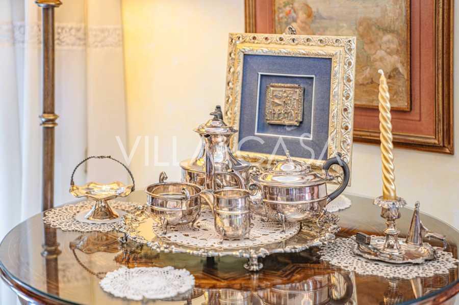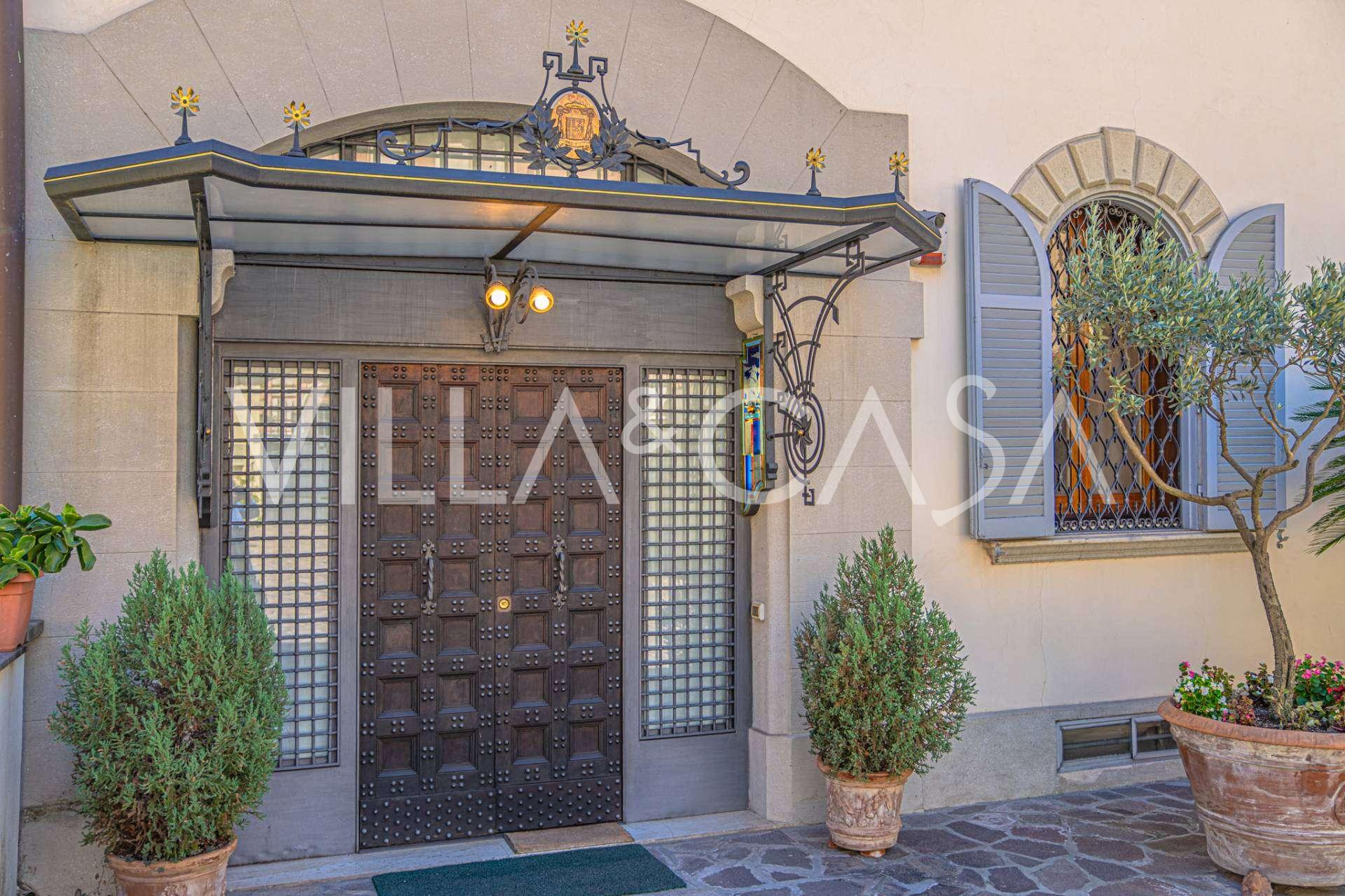 La superficie total de los espacios interiores es de 490 m² y está distribuida en cuatro niveles. Cada espacio está decorado con atención al detalle: materiales costosos, suelos de mármol de Carrara y Verona, ventanas con rejas de hierro antiguas, contraventanas y ventanas de nogal, soluciones de diseño únicas y una distribución elegante crean una atmósfera de sofisticado confort y respetabilidad.