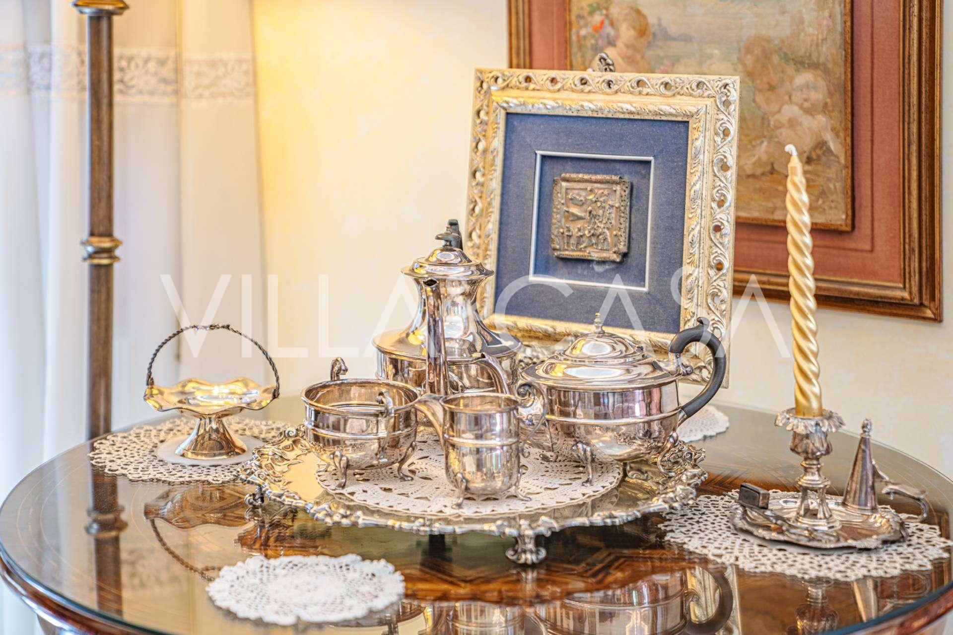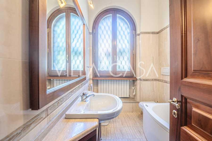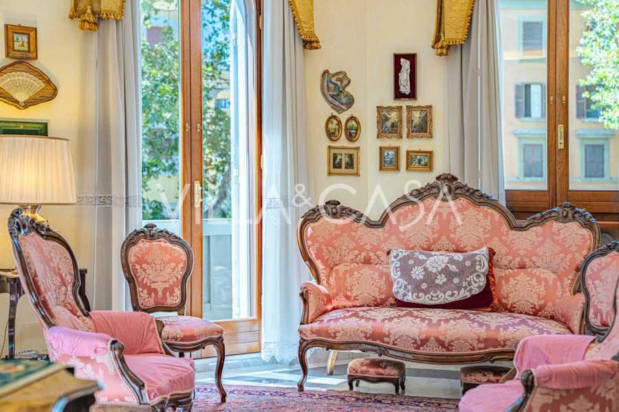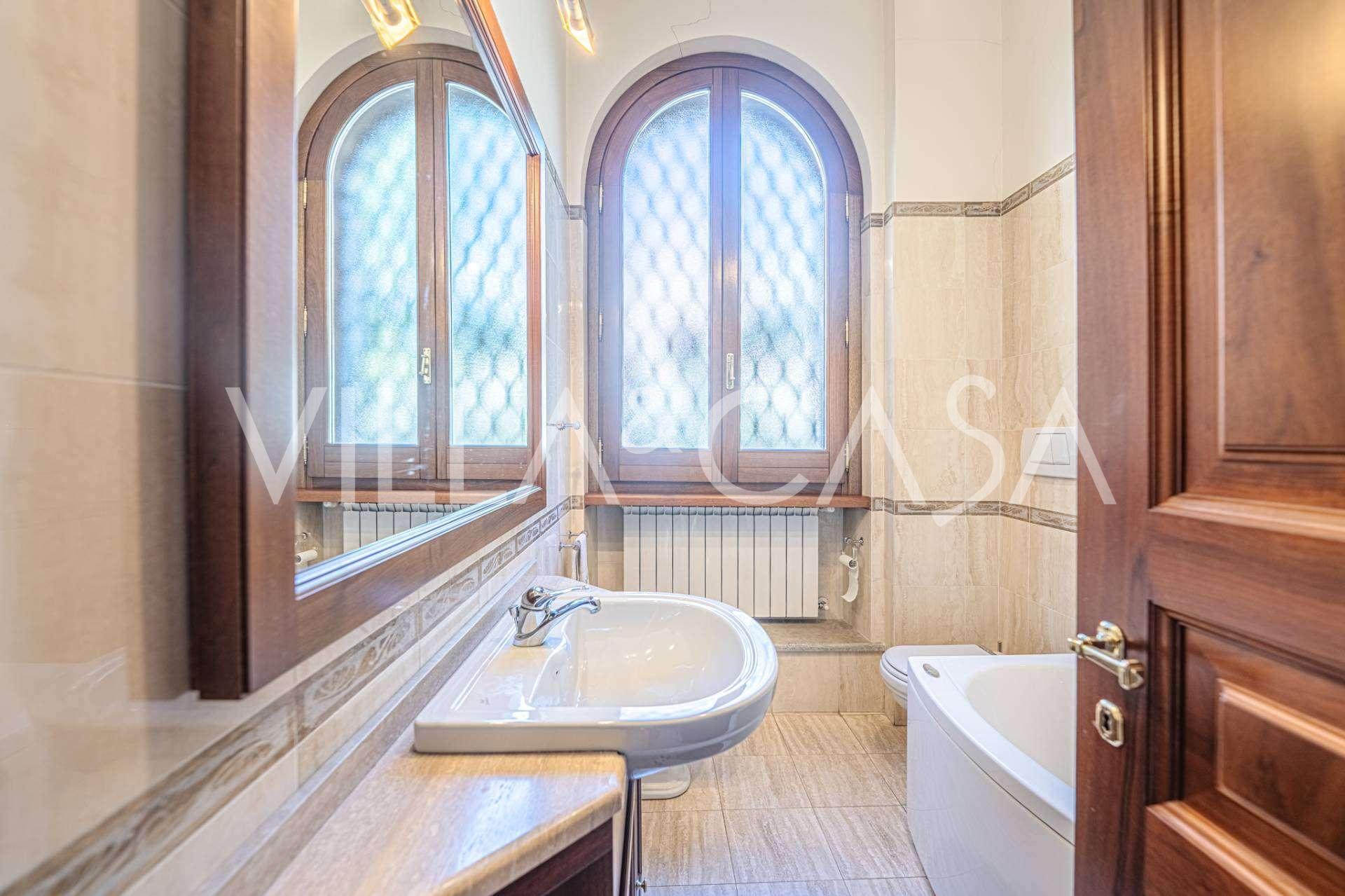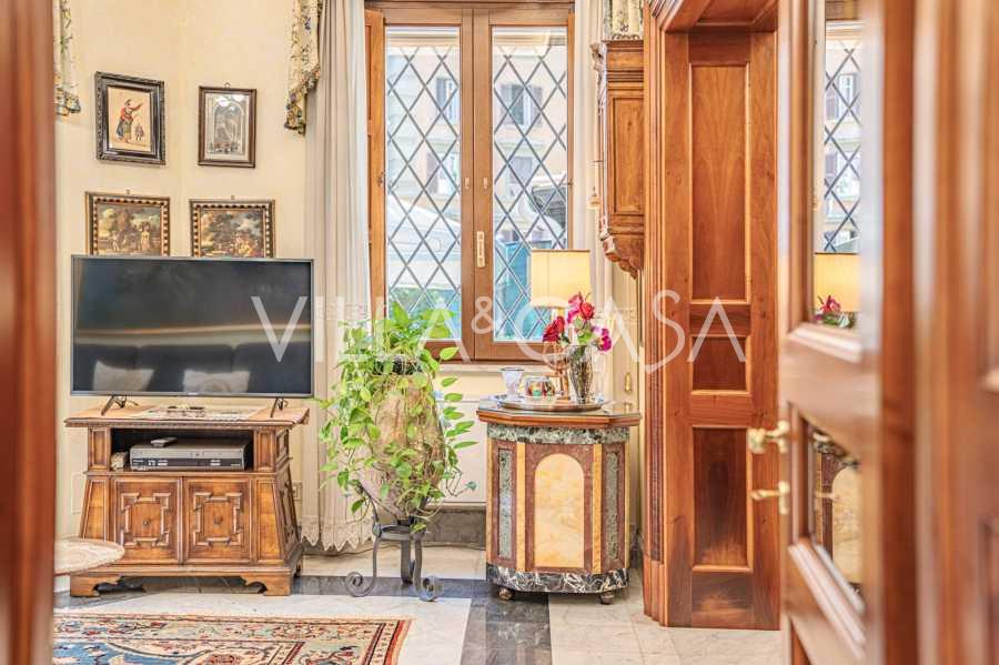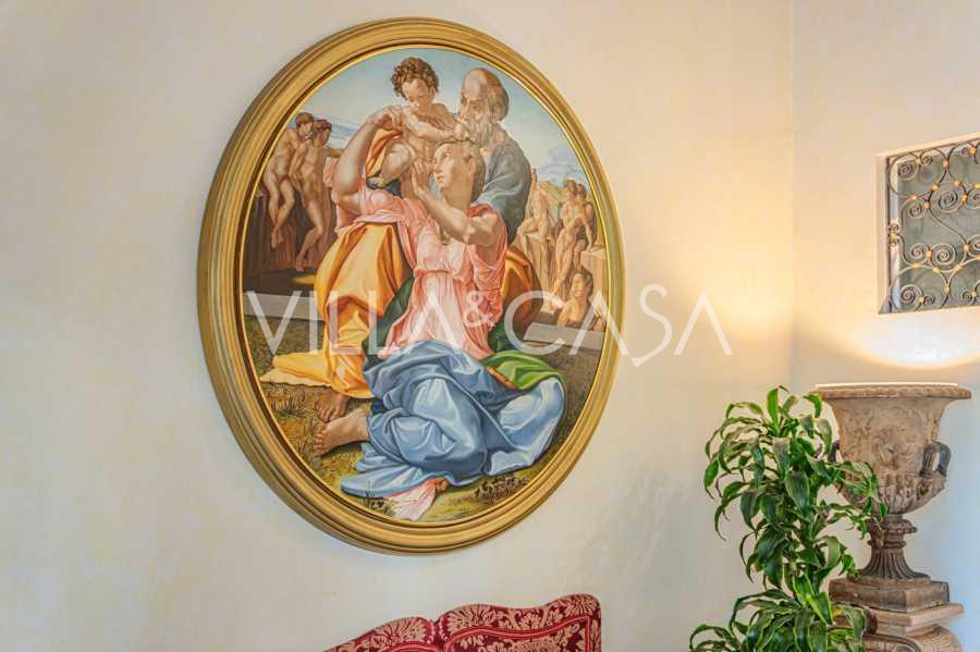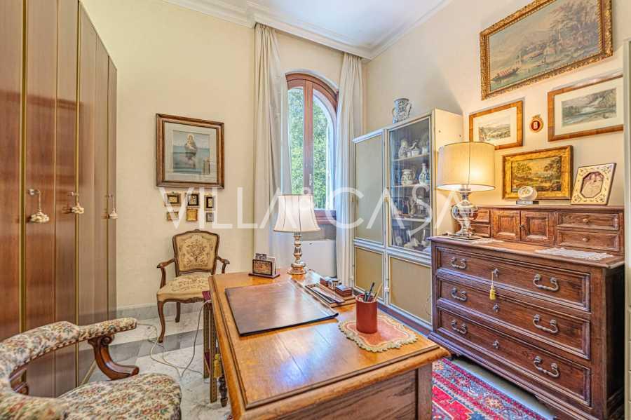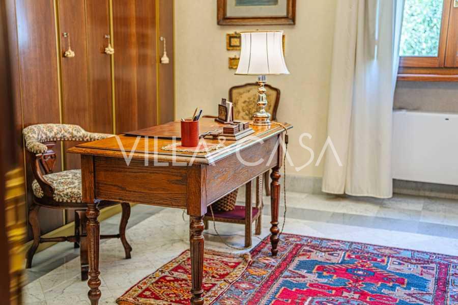 La superficie total de los espacios interiores es de 490 m² y está distribuida en cuatro niveles. Cada espacio está decorado con atención al detalle: materiales costosos, suelos de mármol de Carrara y Verona, ventanas con rejas de hierro antiguas, contraventanas y ventanas de nogal, soluciones de diseño únicas y una distribución elegante crean una atmósfera de sofisticado confort y respetabilidad.
