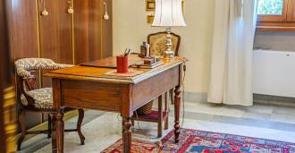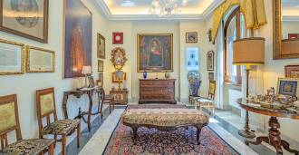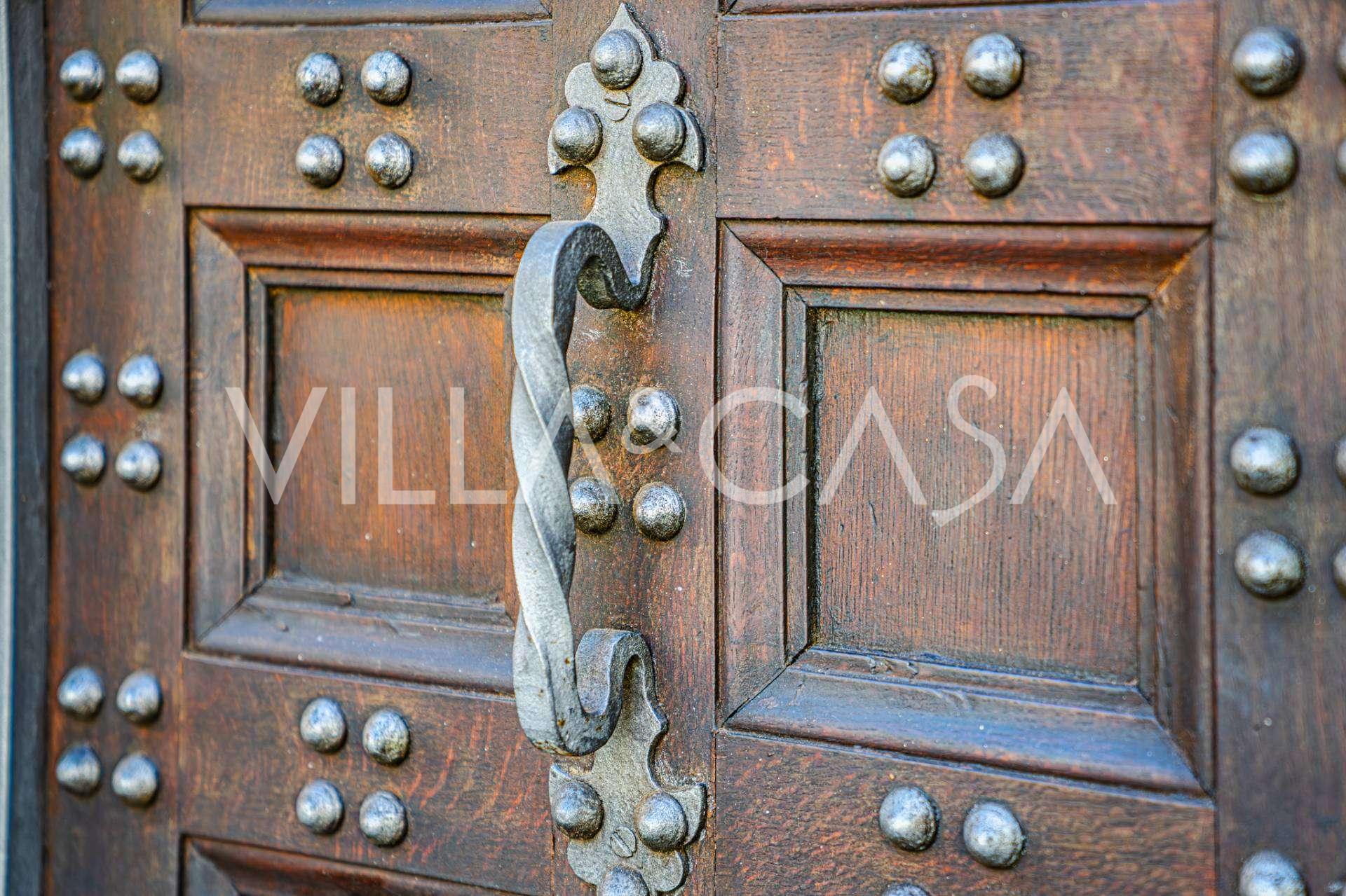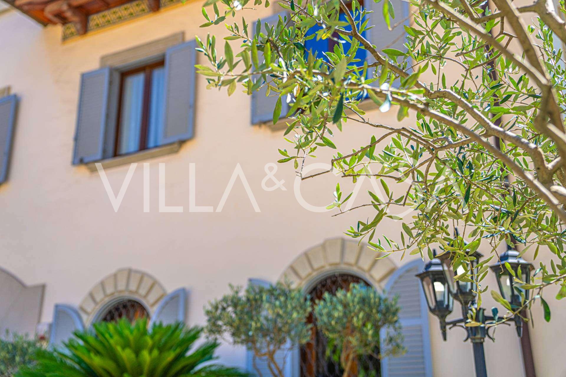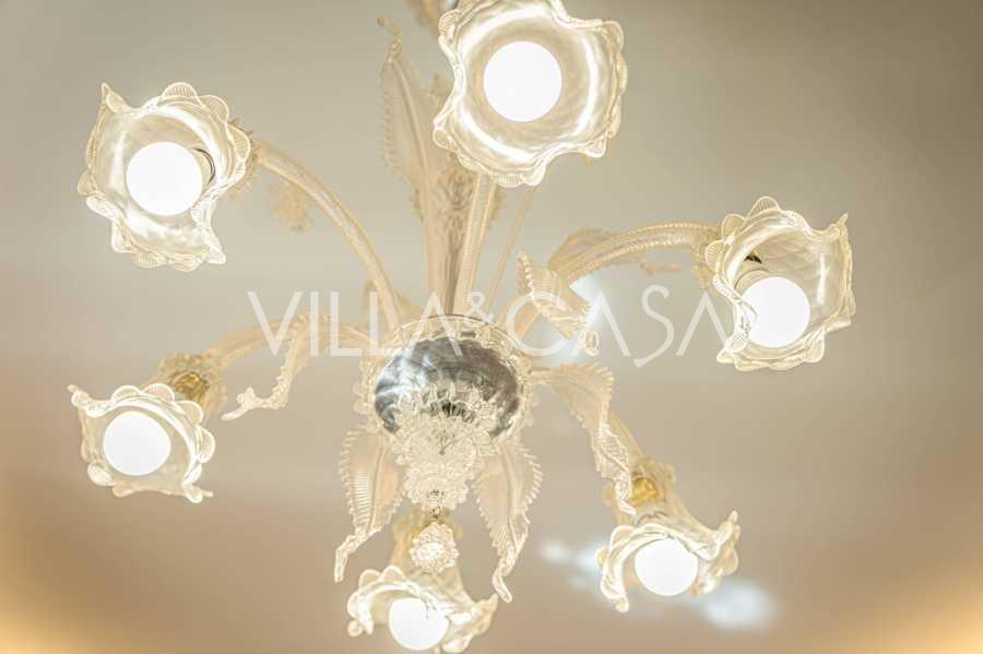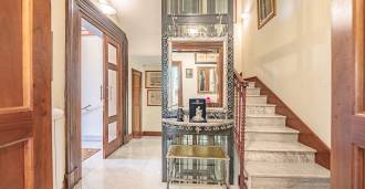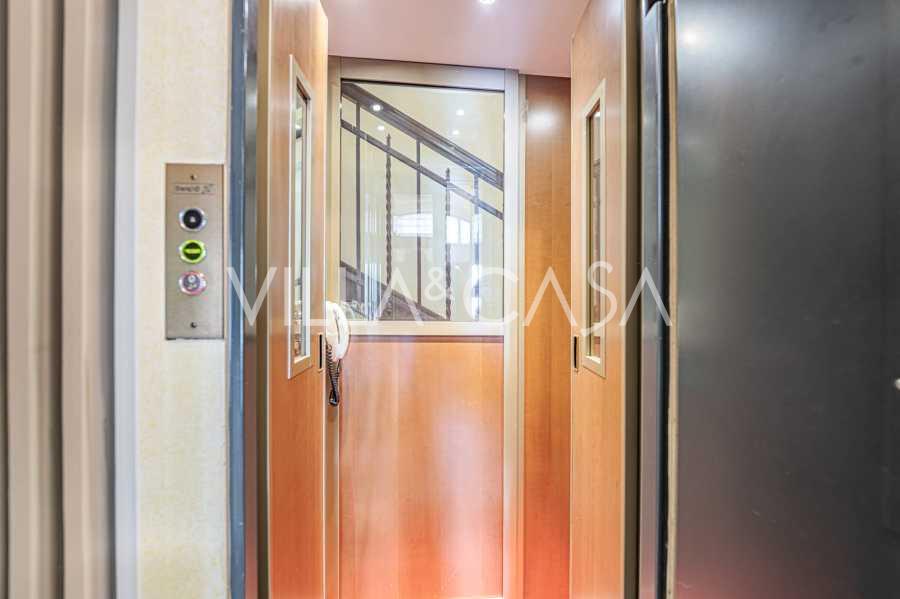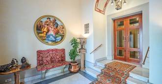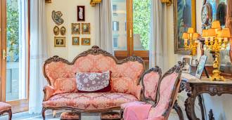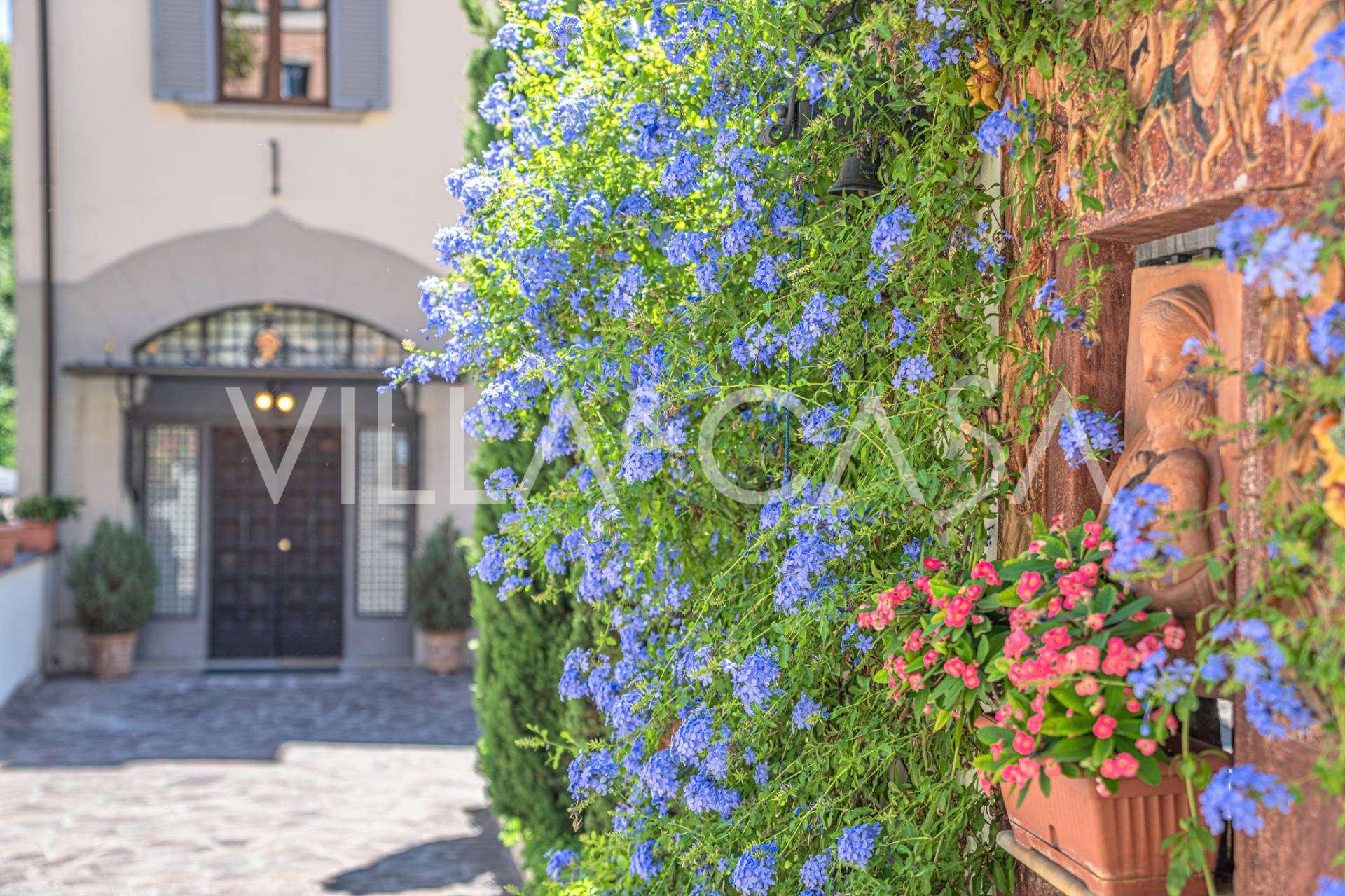 La superficie total de los espacios interiores es de 490 m² y está distribuida en cuatro niveles. Cada espacio está decorado con atención al detalle: materiales costosos, suelos de mármol de Carrara y Verona, ventanas con rejas de hierro antiguas, contraventanas y ventanas de nogal, soluciones de diseño únicas y una distribución elegante crean una atmósfera de sofisticado confort y respetabilidad.