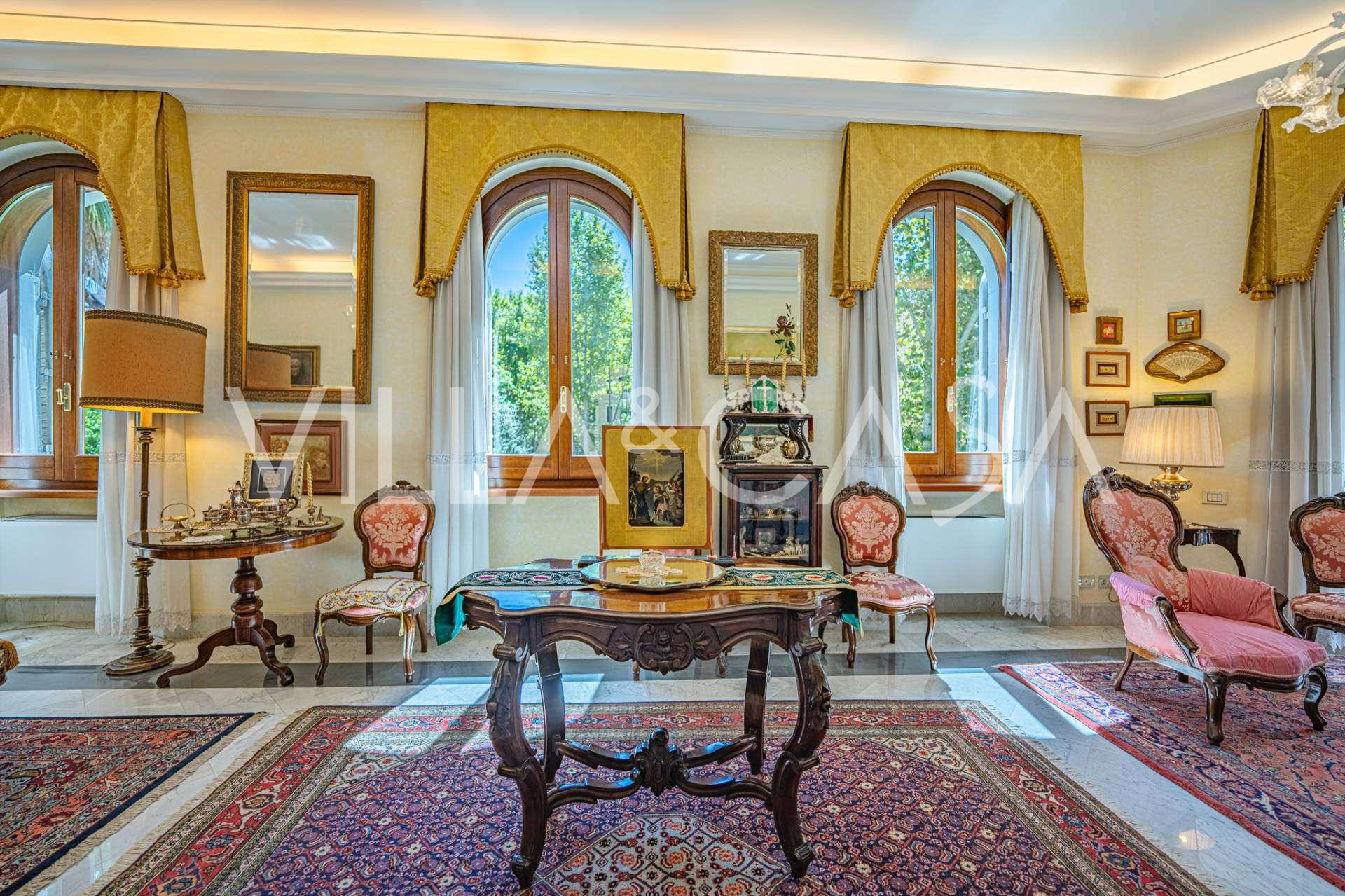 Esta prestigiosa villa, construida a principios del siglo XX y completamente renovada, combina magistralmente el patrimonio histórico con el confort moderno. Su ubicación única a pocos minutos de las principales atracciones de Roma la convierte en el lugar ideal para vivir y descansar.