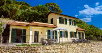 En una zona tranquila de San Remo se ofrece a la venta una villa de 140 m2 con magníficas vistas al mar y un gran terreno. La villa consta de dos pisos y se compone de: