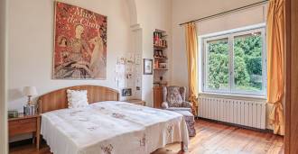 La villa principal, de aproximadamente 450 m², está actualmente dividida en dos apartamentos separados, conservando la atmósfera refinada de las casas burguesas de finales del siglo XIX.