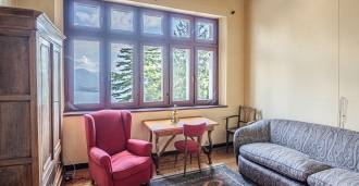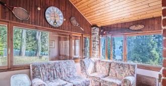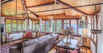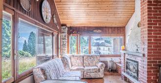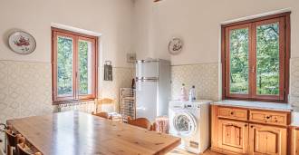 - Primer piso (aproximadamente 160 m²): amplio vestíbulo, cocina, dos despensas, sala de estar con chimenea y comedor con acceso a una gran terraza con vistas al lago, amplio pasillo, tres dormitorios (uno con veranda acristalada y vistas panorámicas), baño y terraza abierta. En el nivel del sótano hay cuatro habitaciones para bodegas.