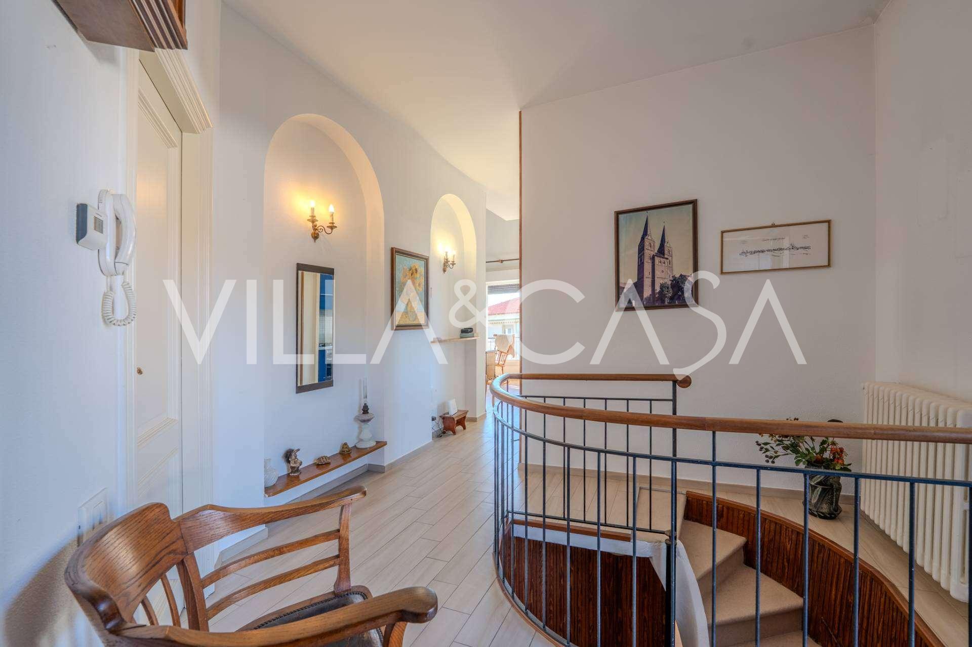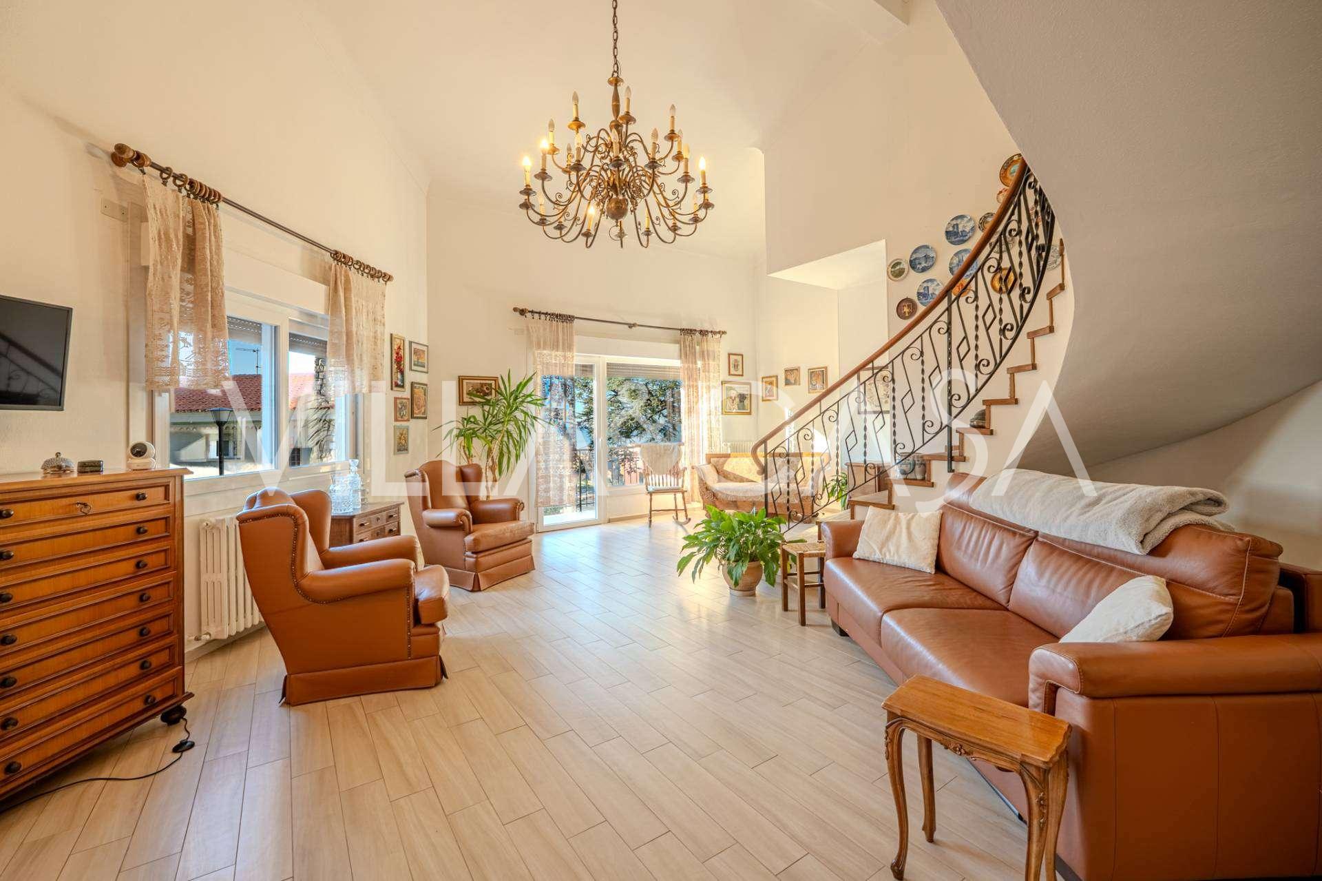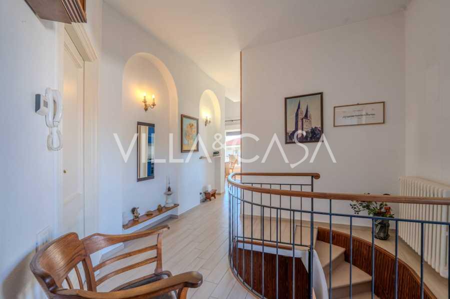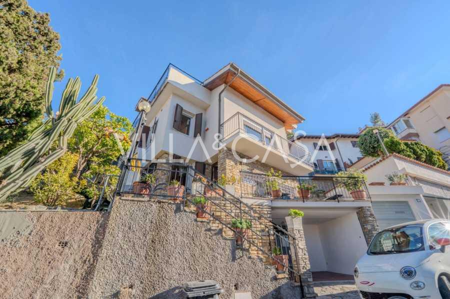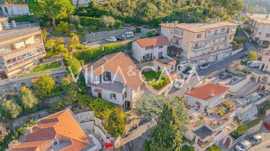 En Vallecrosia, en una zona soleada, a solo 15 minutos a pie del mar, se ofrece a la venta una espaciosa villa con una superficie total de aproximadamente 251 m2. La casa tiene tres pisos y consta de dos partes independientes, que actualmente están unidas en un solo espacio habitable.