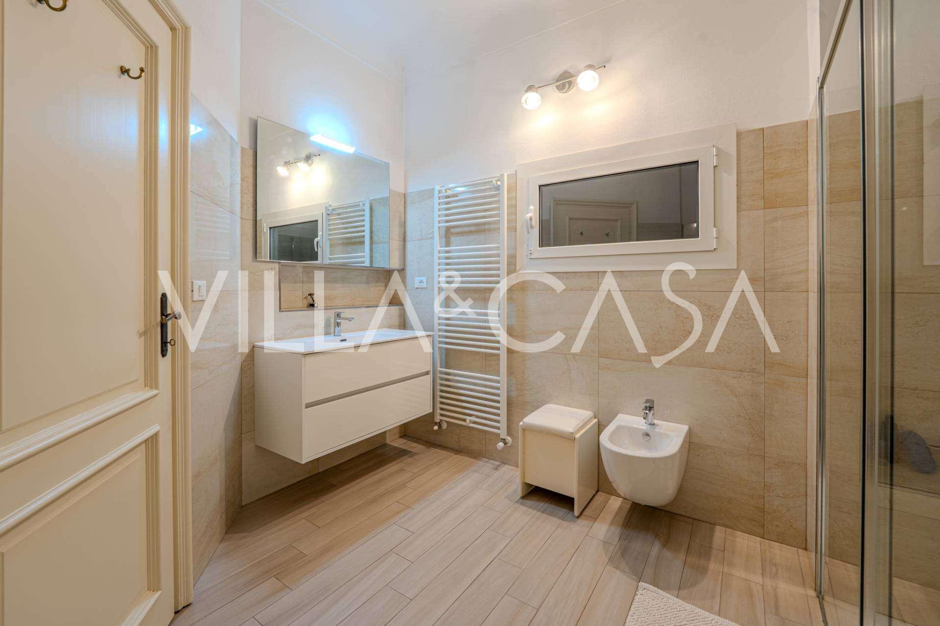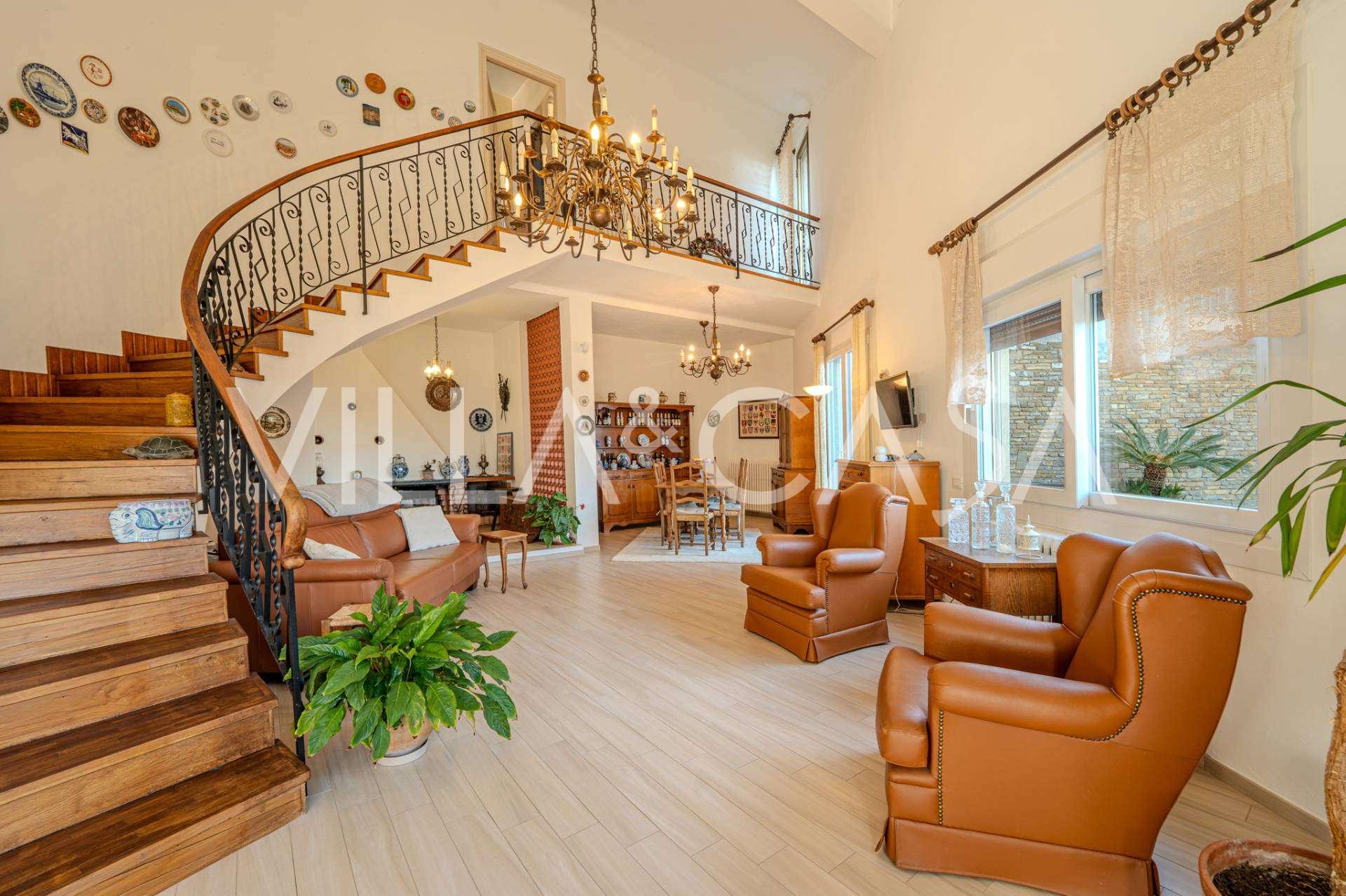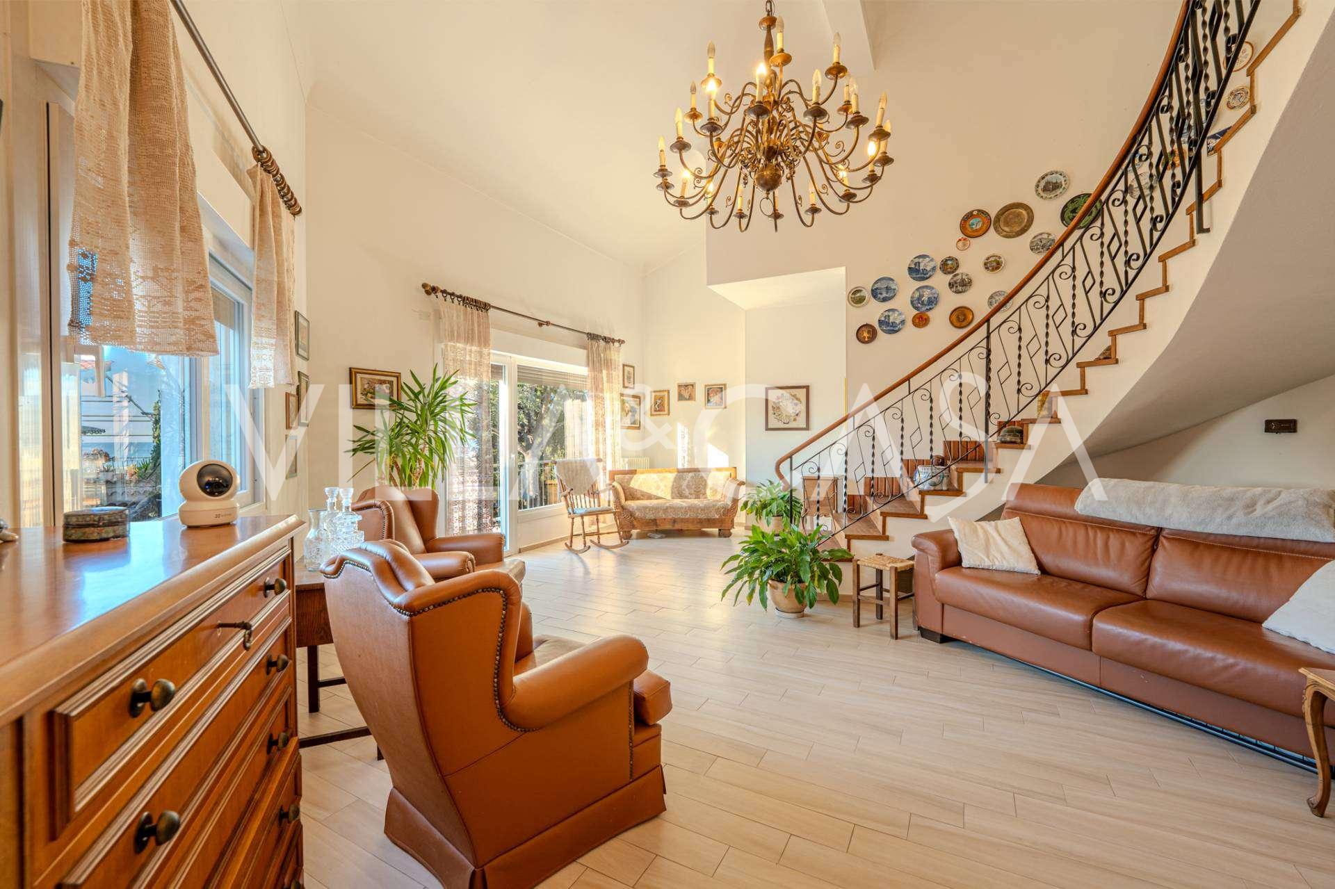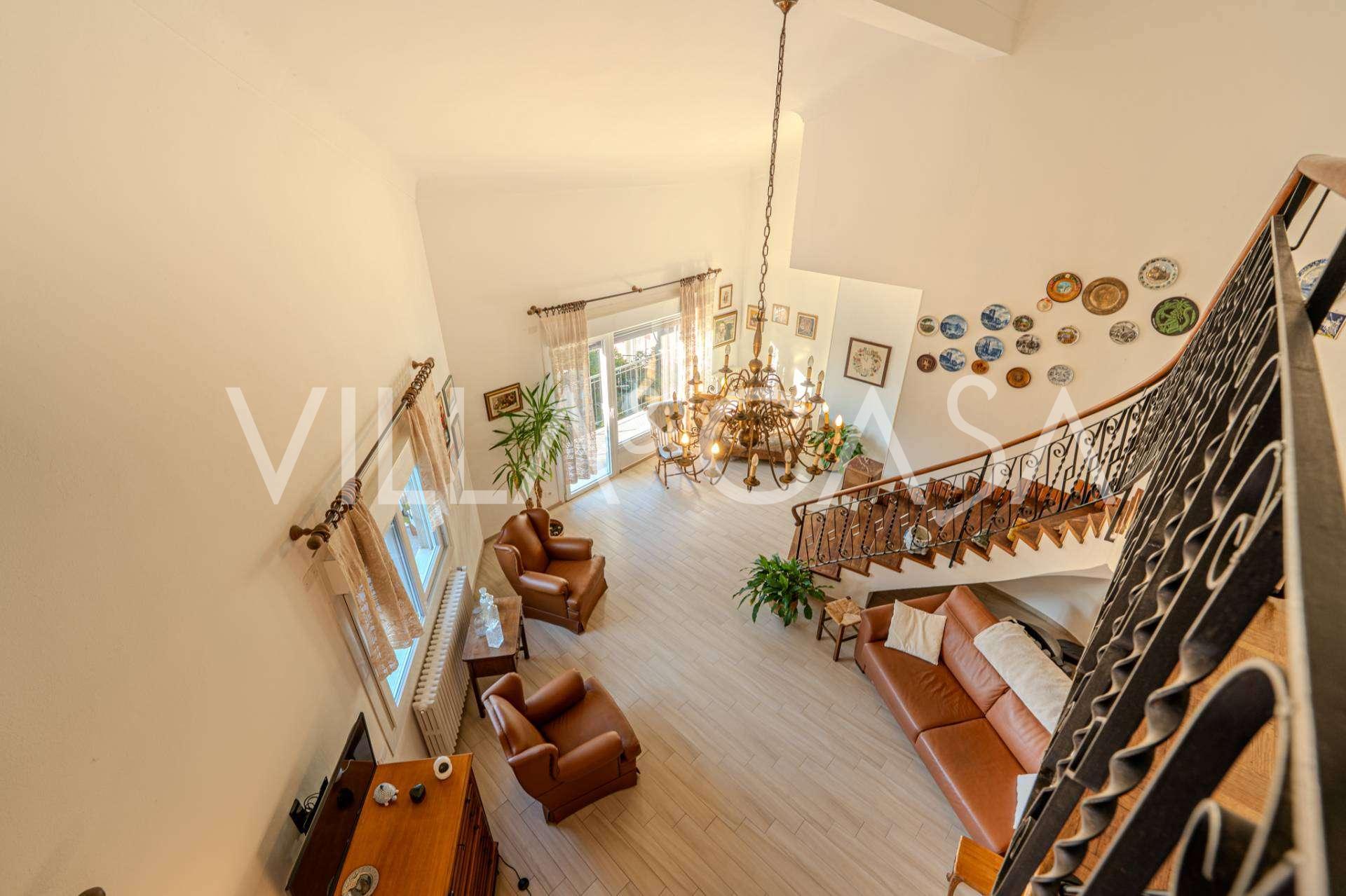 En Vallecrosia, en una zona soleada, a solo 15 minutos a pie del mar, se ofrece a la venta una espaciosa villa con una superficie total de aproximadamente 251 m2. La casa tiene tres pisos y consta de dos partes independientes, que actualmente están unidas en un solo espacio habitable.