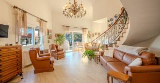 El precio incluye garaje. Jardín de aproximadamente 300 m2. Cerca de la casa hay una pequeña construcción con una superficie total de aproximadamente 30 m2, con un costo de 65,000 euros, que se puede utilizar como alojamiento para alquilar. La villa está en excelentes condiciones, con calefacción autónoma. También se puede comprar un garaje de 60 m2 por separado por 120,000 euros.